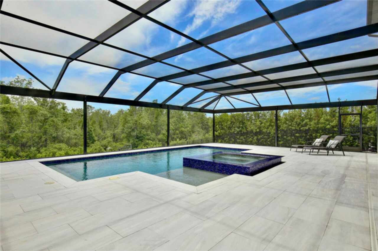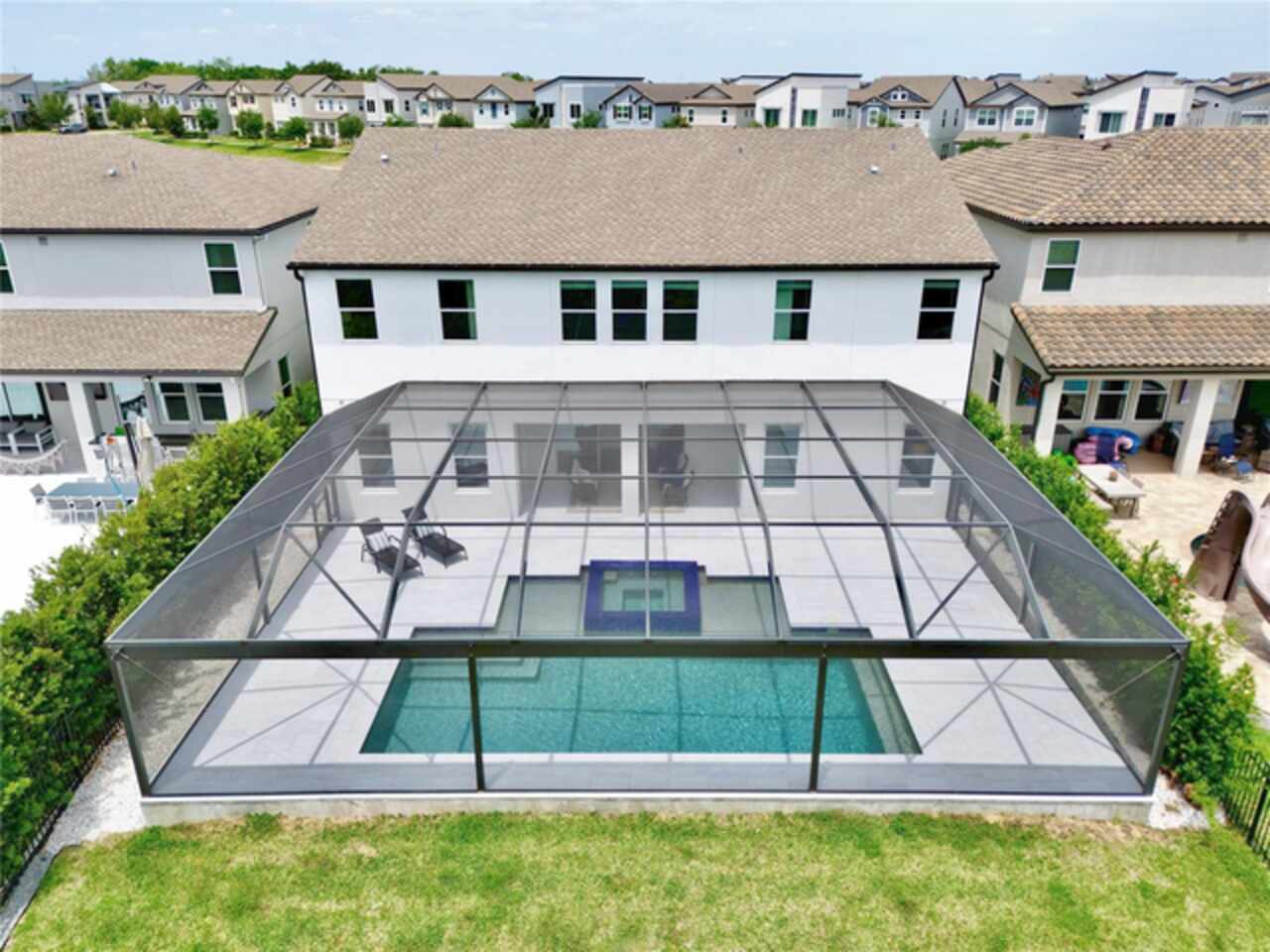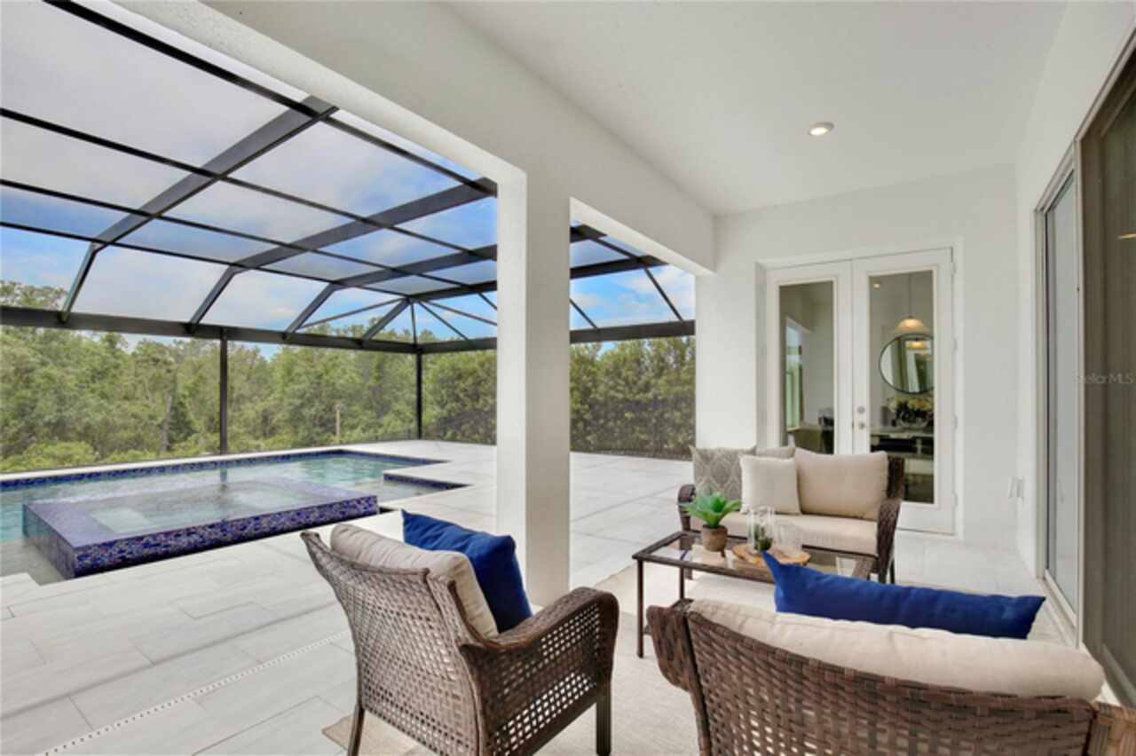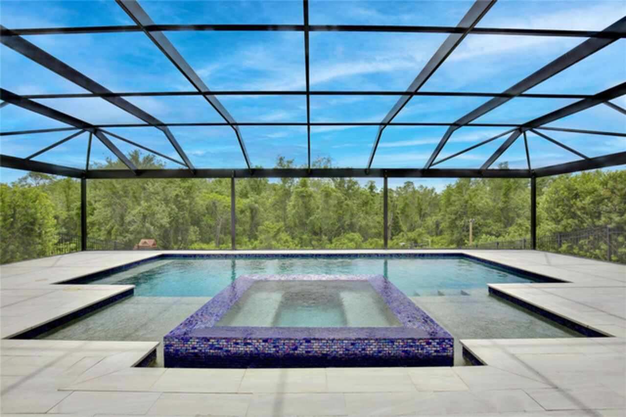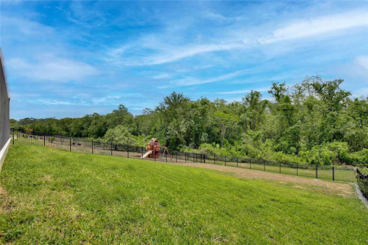 Welcome to 10139 Austrina Oak Loop! Featuring SIX BEDROOMS PLUS OFFICE and FIVE FULL BATHS, on a premium one-third acre lot overlooking the Disney preserve with a HEATED SALTWATER POOL AND SPA under a screen enclosure, this beautifully upgraded home is 4, 500 square feet of understated elegance. With no front neighbor, step back to take in the impressive façade, paver drive and custom landscaping. Across the foyer from the formal dining room, French doors lead to the private office / seventh bedroom with an adjoining full bath. The gourmet kitchen and butler’s pantry feature quartz countertops, stainless appliances including double ovens, 42-inch cabinets with bonus overhead cabinets, an oversized island, and a walk-in pantry, all under the glow of custom light fixtures. A triple-pane sliding door with motorized blinds overlooks the pool and illuminates the family room, with ten-foot ceilings and luxury vinyl plank floor. Around the corner is the first floor Owner’s Suite, with tray ceiling and separate pool access, plus a large Owner’s Bath with two quartz vanities, soaking tub with separate shower and a huge walk-in closet. Upstairs, a wet bar with granite counter opens into a spacious loft with separate bonus room, adjacent to an en suite bedroom with full bath and walk-in closet. A tour of the large secondary bedrooms reveals plentiful natural light, walk-in closets, and views of the pool and wooded area beyond. Outside, a paver deck surrounds the heated saltwater pool and spa – all enclosed in an oversized screen enclosure offering uninterrupted views of nature by day and Disney fireworks by night. This immaculately maintained is completely move-in ready with custom window treatments, fully fenced lot, rain gutters and much more. This home is walking distance to top rated schools, retail, and dining at The Mark, and offers easy access to area attractions and the FL-429 corridor. Contact us now to schedule a private showing of this beautiful home!