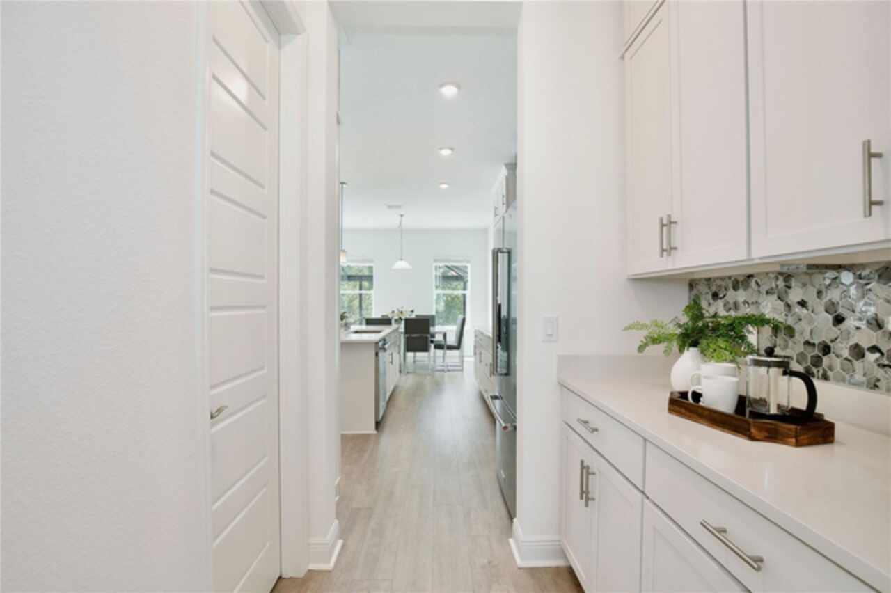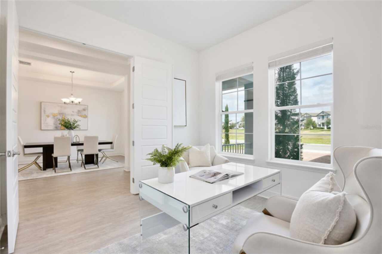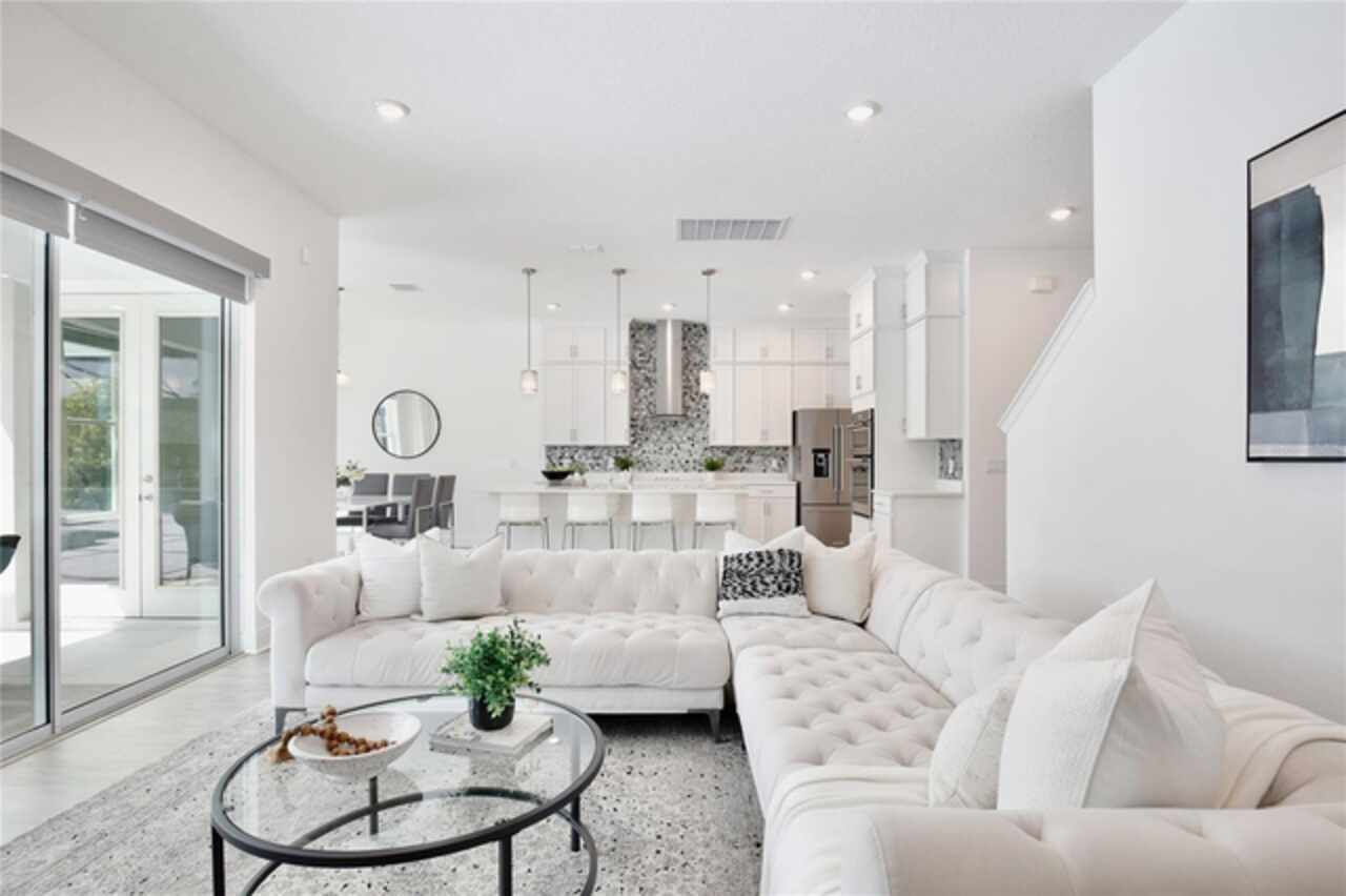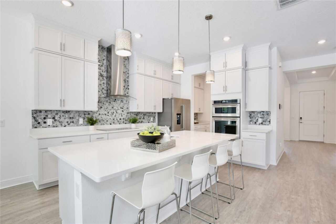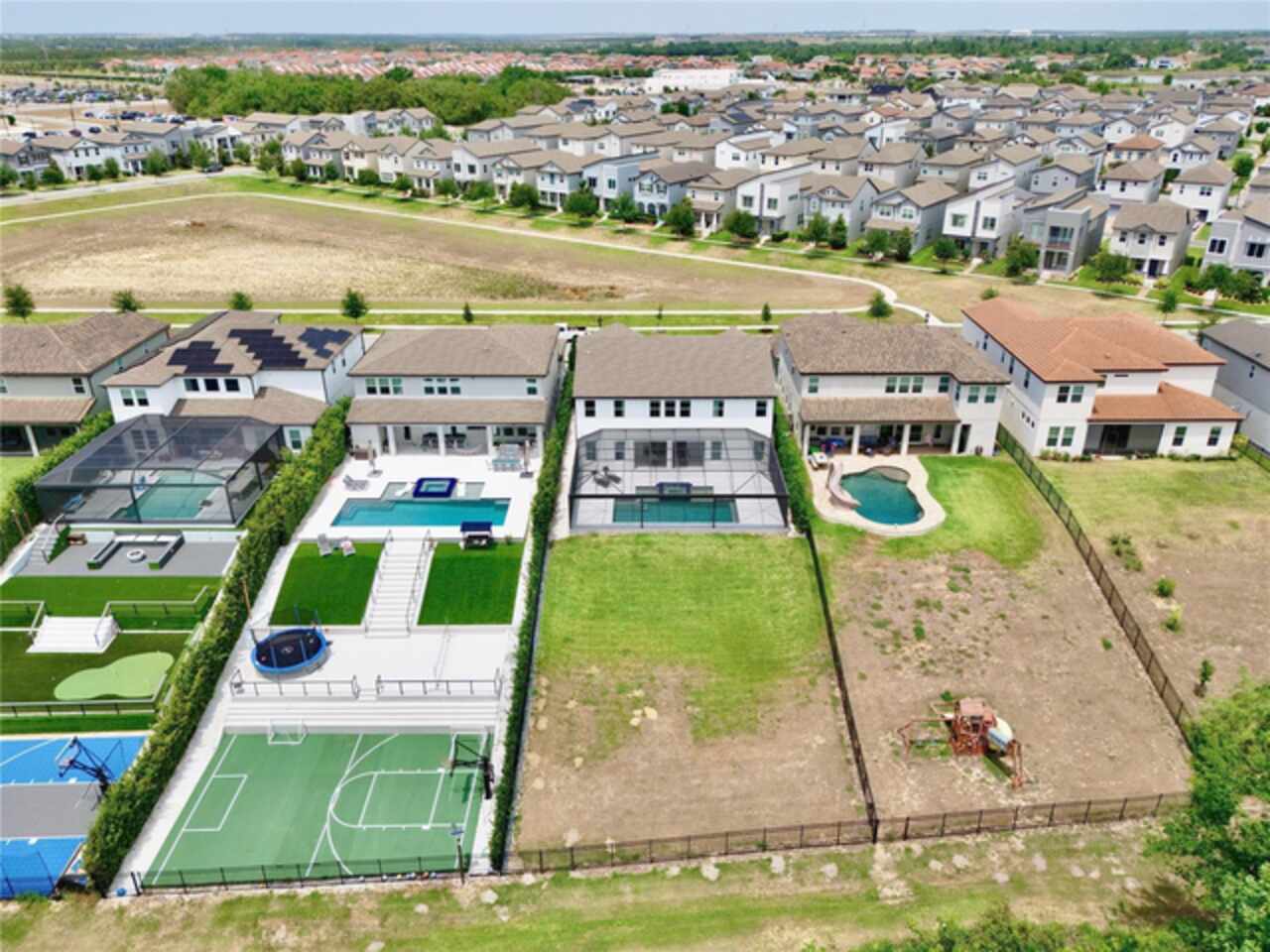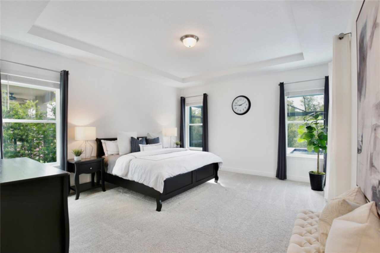 Welcome to 10139 Austrina Oak Loop! Featuring SIX BEDROOMS PLUS OFFICE and FIVE FULL BATHS, on a premium one-third acre lot overlooking the Disney preserve with a HEATED SALTWATER POOL AND SPA under a screen enclosure, this beautifully upgraded home is 4, 500 square feet of understated elegance. With no front neighbor, step back to take in the impressive façade, paver drive and custom landscaping. Across the foyer from the formal dining room, French doors lead to the private office / seventh bedroom with an adjoining full bath. The gourmet kitchen and butler’s pantry feature quartz countertops, stainless appliances including double ovens, 42-inch cabinets with bonus overhead cabinets, an oversized island, and a walk-in pantry, all under the glow of custom light fixtures. A triple-pane sliding door with motorized blinds overlooks the pool and illuminates the family room, with ten-foot ceilings and luxury vinyl plank floor. Around the corner is the first floor Owner’s Suite, with tray ceiling and separate pool access, plus a large Owner’s Bath with two quartz vanities, soaking tub with separate shower and a huge walk-in closet. Upstairs, a wet bar with granite counter opens into a spacious loft with separate bonus room, adjacent to an en suite bedroom with full bath and walk-in closet. A tour of the large secondary bedrooms reveals plentiful natural light, walk-in closets, and views of the pool and wooded area beyond. Outside, a paver deck surrounds the heated saltwater pool and spa – all enclosed in an oversized screen enclosure offering uninterrupted views of nature by day and Disney fireworks by night. This immaculately maintained is completely move-in ready with custom window treatments, fully fenced lot, rain gutters and much more. This home is walking distance to top rated schools, retail, and dining at The Mark, and offers easy access to area attractions and the FL-429 corridor. Contact us now to schedule a private showing of this beautiful home!