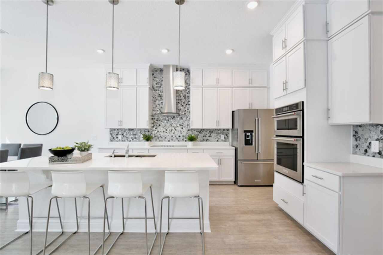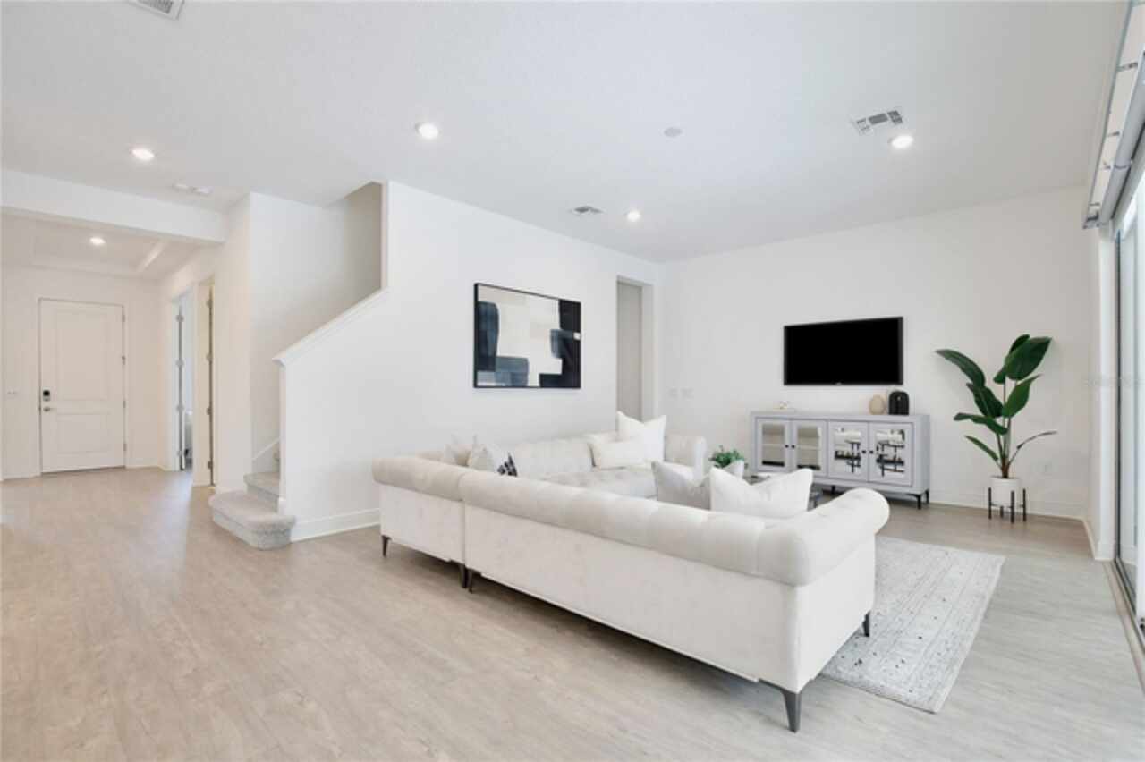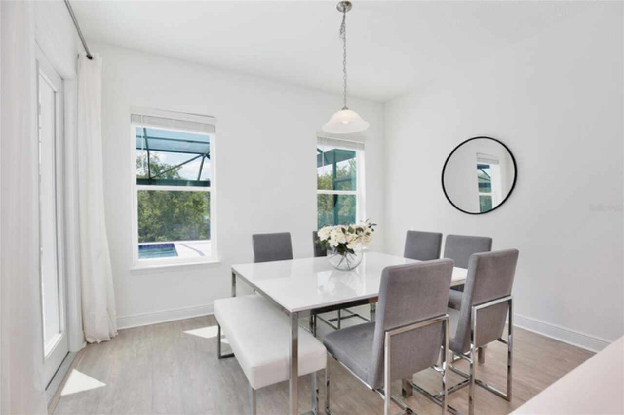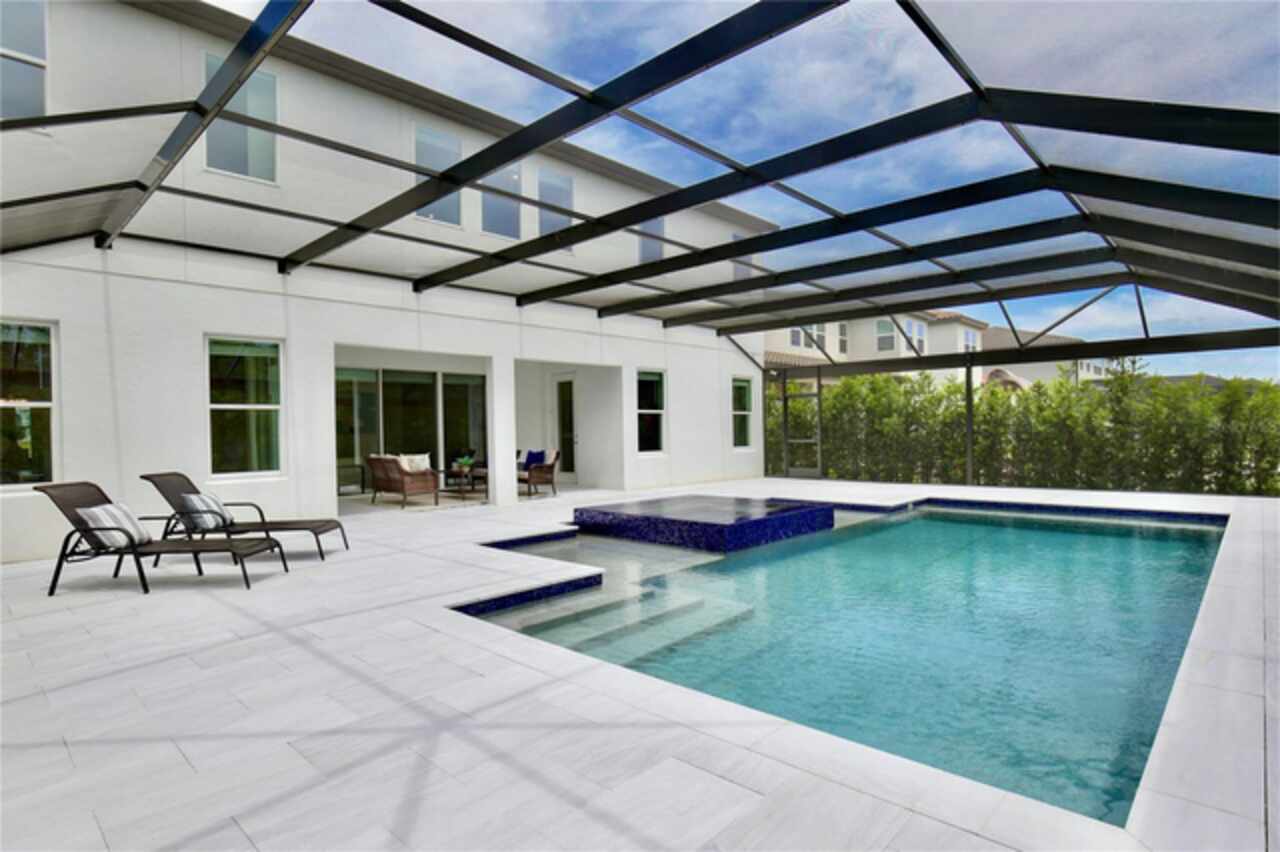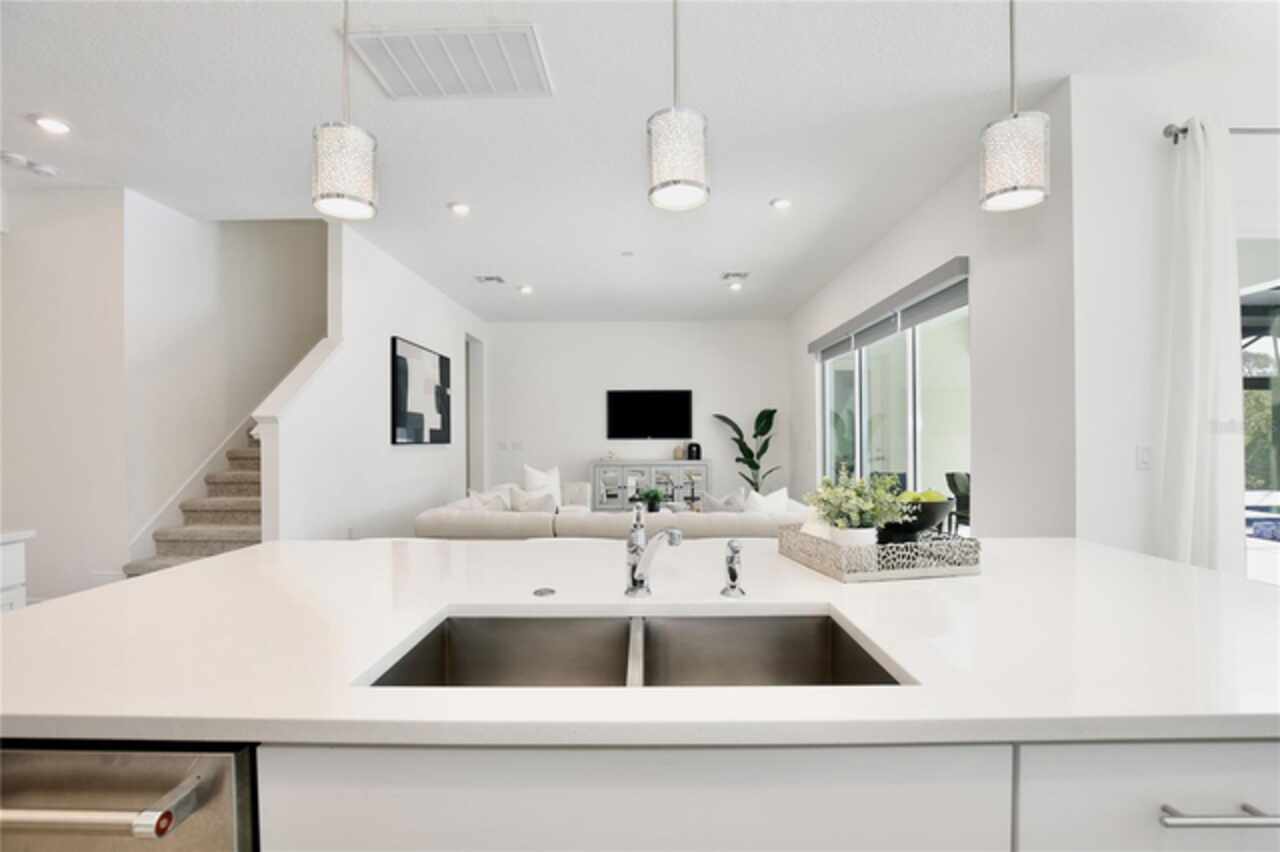 Welcome to 10139 Austrina Oak Loop! Featuring SIX BEDROOMS PLUS OFFICE and FIVE FULL BATHS, on a premium one-third acre lot overlooking the Disney preserve with a HEATED SALTWATER POOL AND SPA under a screen enclosure, this beautifully upgraded home is 4, 500 square feet of understated elegance. With no front neighbor, step back to take in the impressive façade, paver drive and custom landscaping. Across the foyer from the formal dining room, French doors lead to the private office / seventh bedroom with an adjoining full bath. The gourmet kitchen and butler’s pantry feature quartz countertops, stainless appliances including double ovens, 42-inch cabinets with bonus overhead cabinets, an oversized island, and a walk-in pantry, all under the glow of custom light fixtures. A triple-pane sliding door with motorized blinds overlooks the pool and illuminates the family room, with ten-foot ceilings and luxury vinyl plank floor. Around the corner is the first floor Owner’s Suite, with tray ceiling and separate pool access, plus a large Owner’s Bath with two quartz vanities, soaking tub with separate shower and a huge walk-in closet. Upstairs, a wet bar with granite counter opens into a spacious loft with separate bonus room, adjacent to an en suite bedroom with full bath and walk-in closet. A tour of the large secondary bedrooms reveals plentiful natural light, walk-in closets, and views of the pool and wooded area beyond. Outside, a paver deck surrounds the heated saltwater pool and spa – all enclosed in an oversized screen enclosure offering uninterrupted views of nature by day and Disney fireworks by night. This immaculately maintained is completely move-in ready with custom window treatments, fully fenced lot, rain gutters and much more. This home is walking distance to top rated schools, retail, and dining at The Mark, and offers easy access to area attractions and the FL-429 corridor. Contact us now to schedule a private showing of this beautiful home!