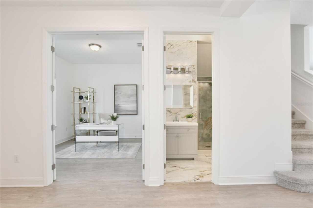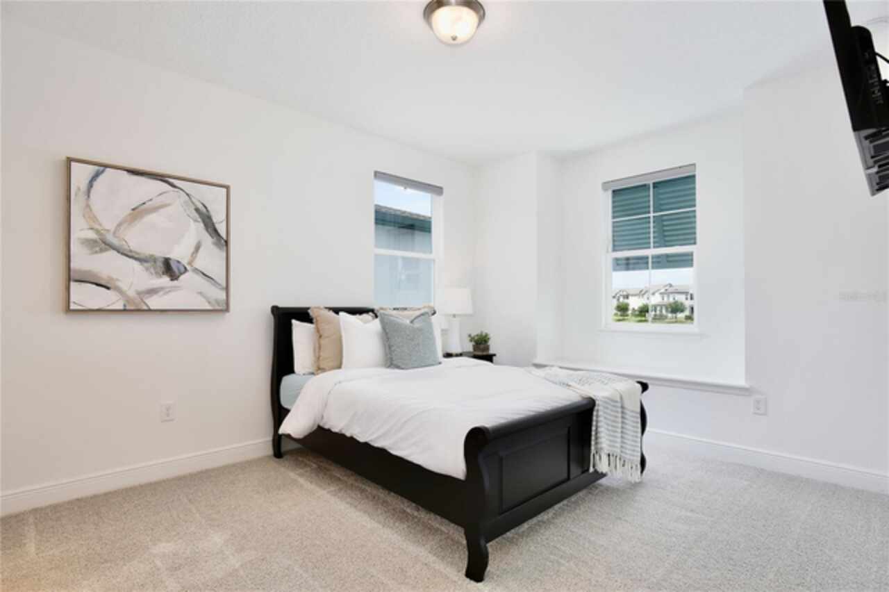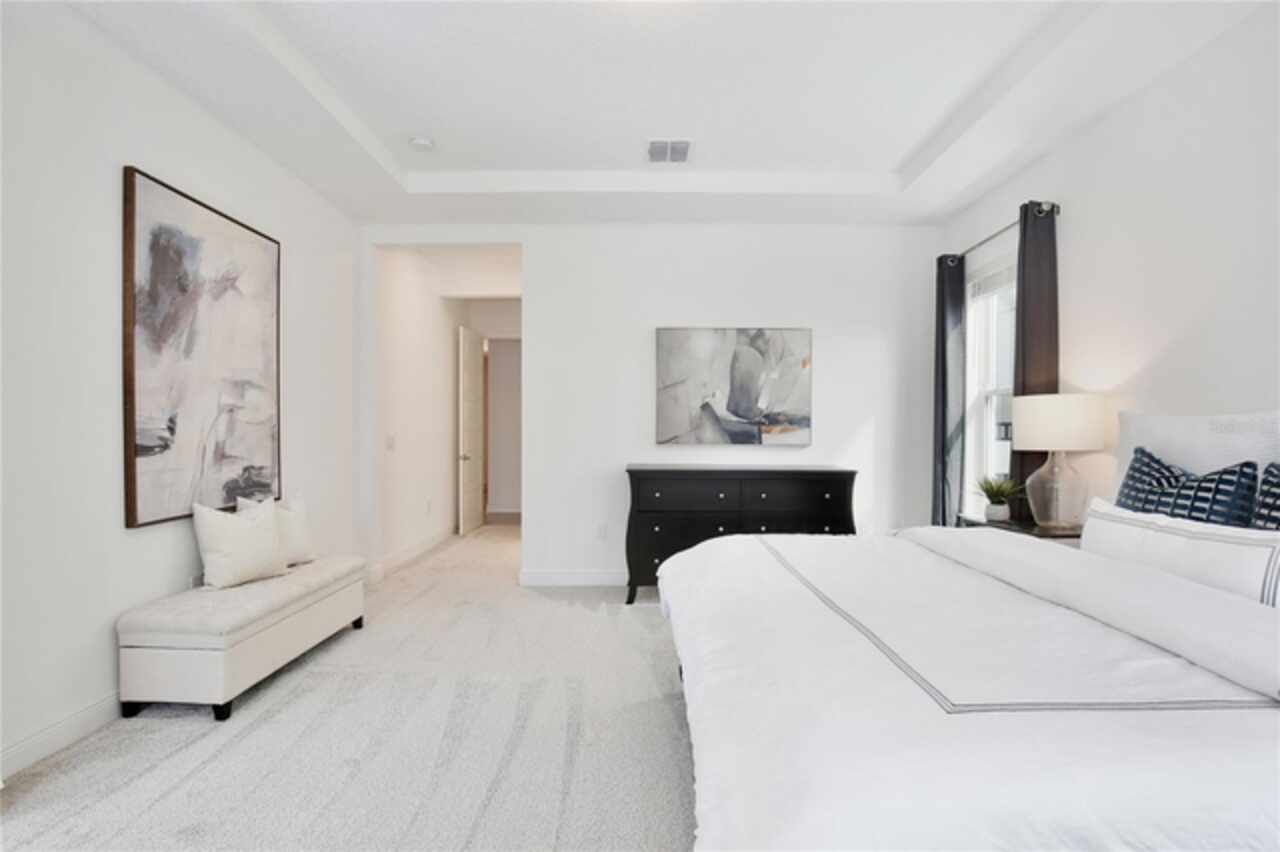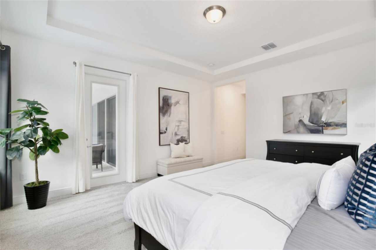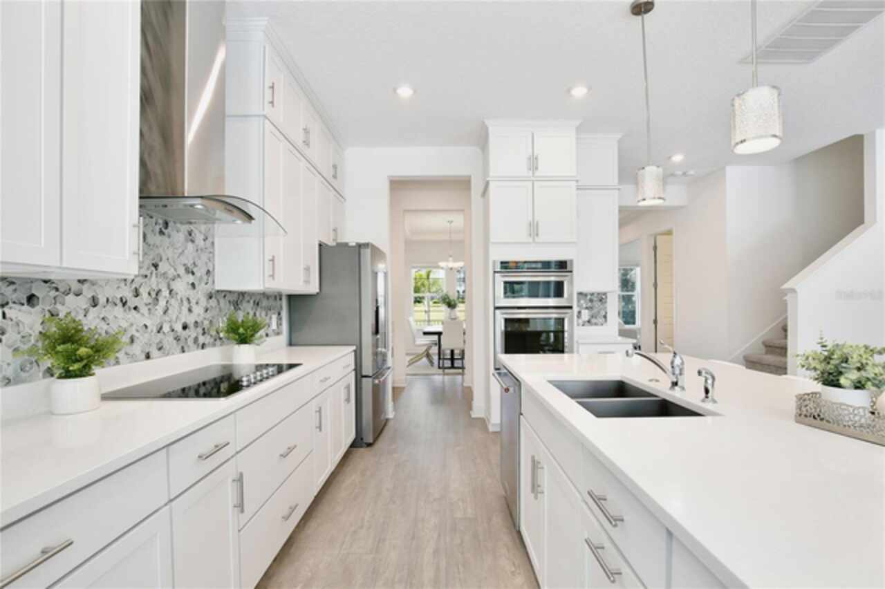 Welcome to 10139 Austrina Oak Loop! Featuring SIX BEDROOMS PLUS OFFICE and FIVE FULL BATHS, on a premium one-third acre lot overlooking the Disney preserve with a HEATED SALTWATER POOL AND SPA under a screen enclosure, this beautifully upgraded home is 4, 500 square feet of understated elegance. With no front neighbor, step back to take in the impressive façade, paver drive and custom landscaping. Across the foyer from the formal dining room, French doors lead to the private office / seventh bedroom with an adjoining full bath. The gourmet kitchen and butler’s pantry feature quartz countertops, stainless appliances including double ovens, 42-inch cabinets with bonus overhead cabinets, an oversized island, and a walk-in pantry, all under the glow of custom light fixtures. A triple-pane sliding door with motorized blinds overlooks the pool and illuminates the family room, with ten-foot ceilings and luxury vinyl plank floor. Around the corner is the first floor Owner’s Suite, with tray ceiling and separate pool access, plus a large Owner’s Bath with two quartz vanities, soaking tub with separate shower and a huge walk-in closet. Upstairs, a wet bar with granite counter opens into a spacious loft with separate bonus room, adjacent to an en suite bedroom with full bath and walk-in closet. A tour of the large secondary bedrooms reveals plentiful natural light, walk-in closets, and views of the pool and wooded area beyond. Outside, a paver deck surrounds the heated saltwater pool and spa – all enclosed in an oversized screen enclosure offering uninterrupted views of nature by day and Disney fireworks by night. This immaculately maintained is completely move-in ready with custom window treatments, fully fenced lot, rain gutters and much more. This home is walking distance to top rated schools, retail, and dining at The Mark, and offers easy access to area attractions and the FL-429 corridor. Contact us now to schedule a private showing of this beautiful home!
