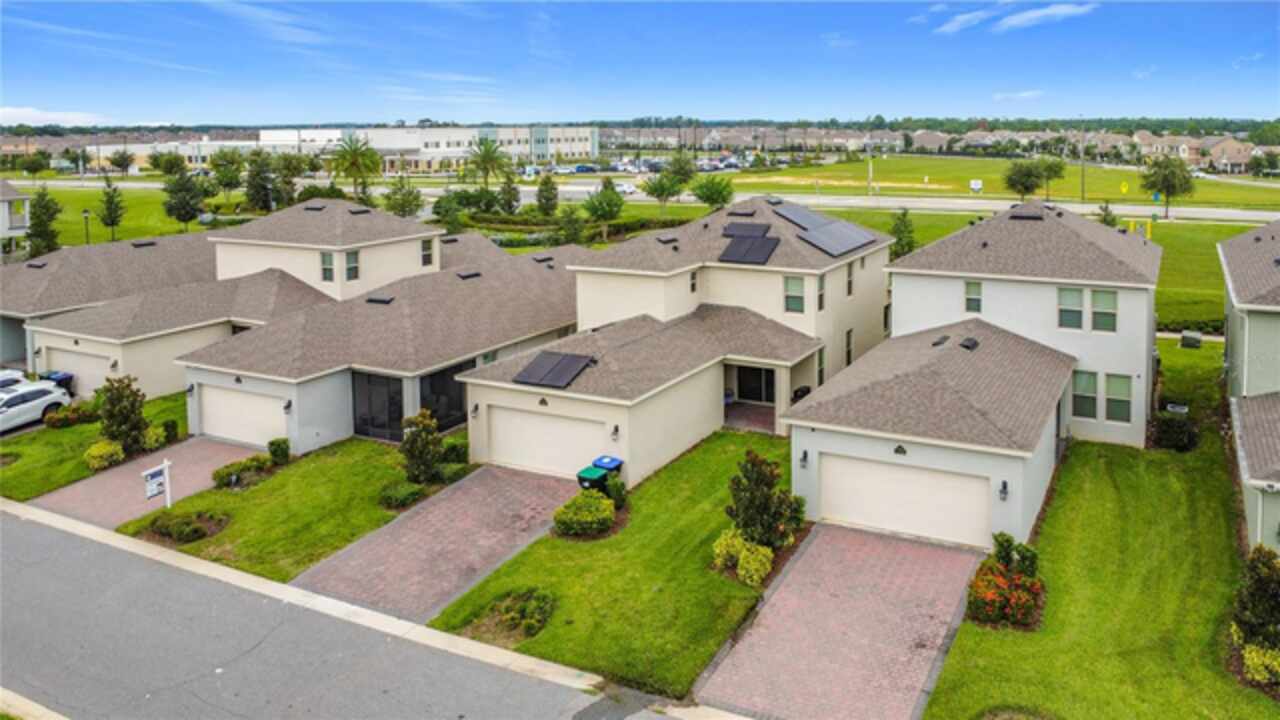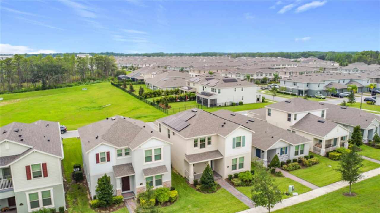 LOCATION, LOCATION, LOCATION!!!PRICE IS INCLUDING TRANSFERRABLE SOLAR PANELS PAID BY THE SELLER! This amazing single family home located in most desirable prime location in winter garden has it all, from privacy with no back up neighborhood to the front porch facing beautiful landscaping view just few steps from the Elementary school and all the resort amenities The home has solar panel for extra energy saving and the seller will take care of remaining balance. All concrete block construction on both first and second floor single-family home features 4 bedrooms and 3.5 bathrooms optimizing living space with an open concept feel. A beautiful porch welcomes you to this home, as you enter the foyer, you’ll find the first bedroom complete with ensuite bathroom and a powder room across the hall. The well-appointed kitchen overlooking the great room, dining room, and oversized outdoor lanai. The kitchen features granite countertops, stainless steel appliances, spacious walk-in pantry and an island with bar seating. As we head up to the second floor, we are greeted with a loft area and additional three bedrooms. Bedroom one is located just off the loft space and includes a spacious walk-in closet as well as ensuite bathroom with double vanity sinks and separate toilet area. Two additional bedrooms share a second upstairs bathroom and linen closet for extra storage. Your laundry room is located on the second floor for convenience. This home features a two car garage located at the rear of the home with drop zone as you enter the first floor. Waterleigh community is well know for prime location with a lot of lifestyles amenities such Playgrounds & Sports Fields, Indoor Fitness Centers, Scenic Lakes and Ponds, Community Garden Mini-Golf, Walking & Nature Trails, Beach Volleyball & Hammock Beach This beautiful 4 bedrooms 3 bathrooms and 1 half bathroom is built with All Concrete Block Construction, Smart Home Technology, Quartz Counters, Professional Lawn Maintenance Included, Publix Grocery in Community, Local Shops, Restaurants & Cinema Nearby Located just minutes from downtown Winter Garden. This prime location with this particular meticulous home is great spot that leads you to enjoy easy access to a vibrant array of shops, restaurants, and entertainment options. The historic downtown area offers charming boutiques and family-owned eateries, while the nearby Winter Garden Village provides a more modern shopping experience with over 100 retailers.