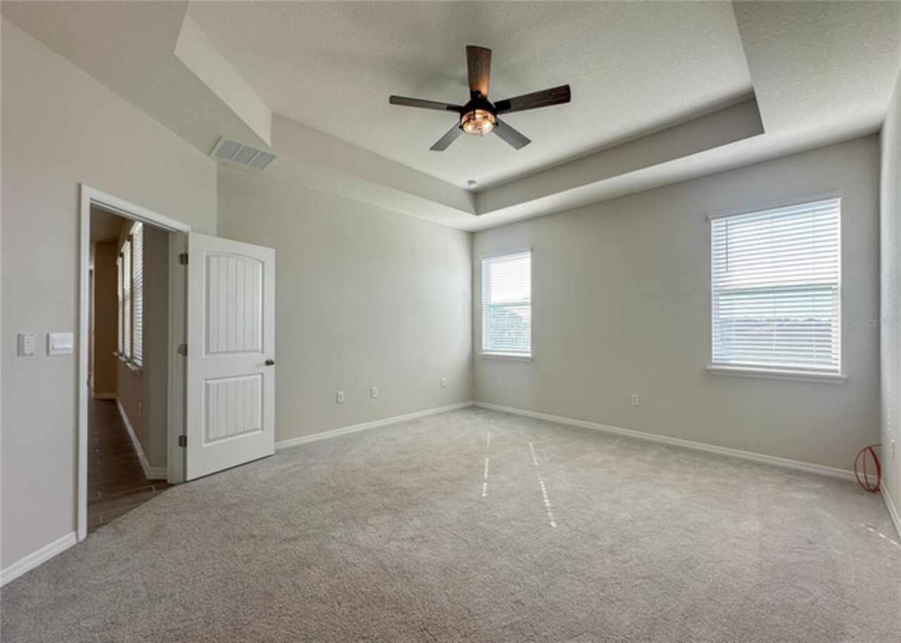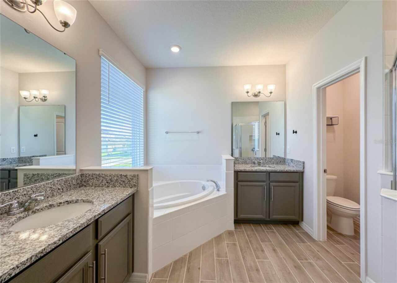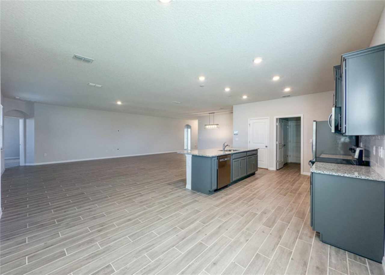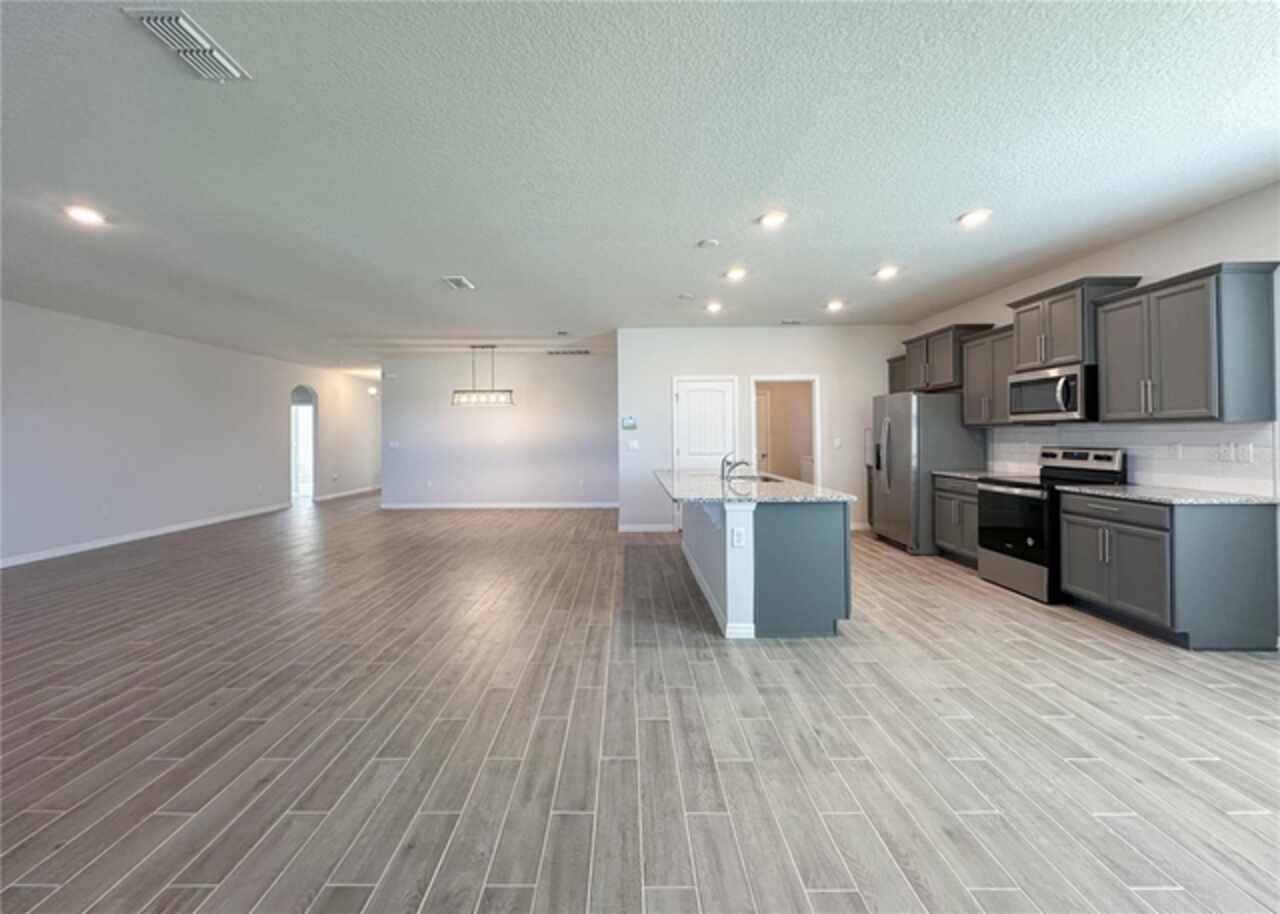PRICE REDUCED FOR QUICK SALE. Welcome to 14413 Bayuk Way, a modern four-bedroom, three-bath home located in the new Lake Apopka Sound community. Built by D.R. Horton in 2023 to the Destin model, this 2, 376 sq ft property offers spacious living and adaptable accommodation. As you enter the home, you are greeted by abundant natural light, beautiful wood-style tile flooring, and sleek fixtures. To the right, you will find two sizable bedrooms separated by a family bathroom with a shower over the bath. Then, you are welcomed into the open-plan living, kitchen, and dining area, which flows seamlessly and provides excellent entertainment space along with a modern, fully fitted kitchen with a breakfast bar and additional space for a dining table. Off the kitchen, there is a pantry and a laundry room with a washer and dryer included, along with access to the garage. If you prefer a more formal dining area, the living room opens into a spacious dining space with contemporary light fixtures. The primary bedroom, located opposite the main living area, features a beautiful tray ceiling and an arched entrance into an impressive ensuite bathroom, which includes a walk-in closet, a second closet, two vanities, a walk-in shower, a corner bathtub, and a private toilet. There is a fourth bedroom overlooking the rear of the property, accompanied by a family bathroom and a back door leading to the covered lanai. Outside, enjoy a wrap-around yard with views of the community and Lake Apopka to the north, along with a three-car garage and driveway parking. This home is situated in Winter Garden, just past Oakland, with easy access to Florida's Turnpike and State Road 50. It is conveniently close to Historic Downtown Winter Garden, shops, grocery stores, restaurants, and a variety of other excellent amenities.