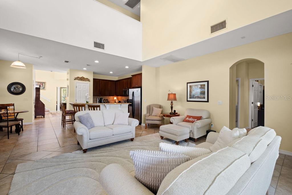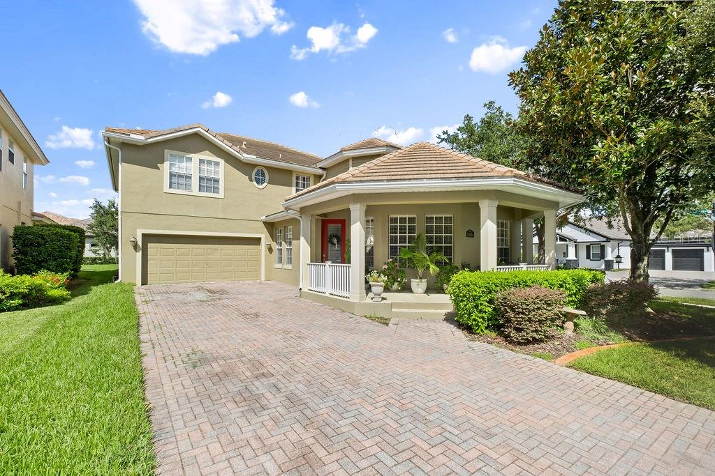 Discover this spacious, light-filled residence in the sought-after Independence neighborhood of Winter Garden. Located just minutes from Disney World, sleek shopping, dining venues, and excellent schools, it offers the ideal balance of comfort and convenience. Key Features: Generous layout: 4 bedrooms (including a guest suite on the main level), 3.5 baths, separate formal dining, elegant foyer, inside laundry, and soaring vaulted ceilings. Inviting curb appeal: Charming covered front porch—perfect for morning coffee. Upgrades throughout: Durable tile on the main floor, hardwood-laminate upstairs, and an exterior fresh coat of paint. Well-appointed kitchen: Ample counter space, cabinetry, and modern appliances (dishwasher, range/oven, and refrigerator included). Comfortable living areas: Spacious family and living rooms ideal for gatherings. Peaceful backyard living: Enjoy serene views and relaxed evenings outdoors. Functional amenities: Two-car attached garage, central HVAC, and forced-air heating. Community Amenities: cable and internet, 2 community pools, play areas, a lg community park, 2 dog parks, tennis & basketball courts, main clubhouse w arcade, fitness & 2nd clubhouse both w fitness rm & billiards, 10' walking/biking path thru-out Independence, 2 private boat ramps & community events thru-out the year