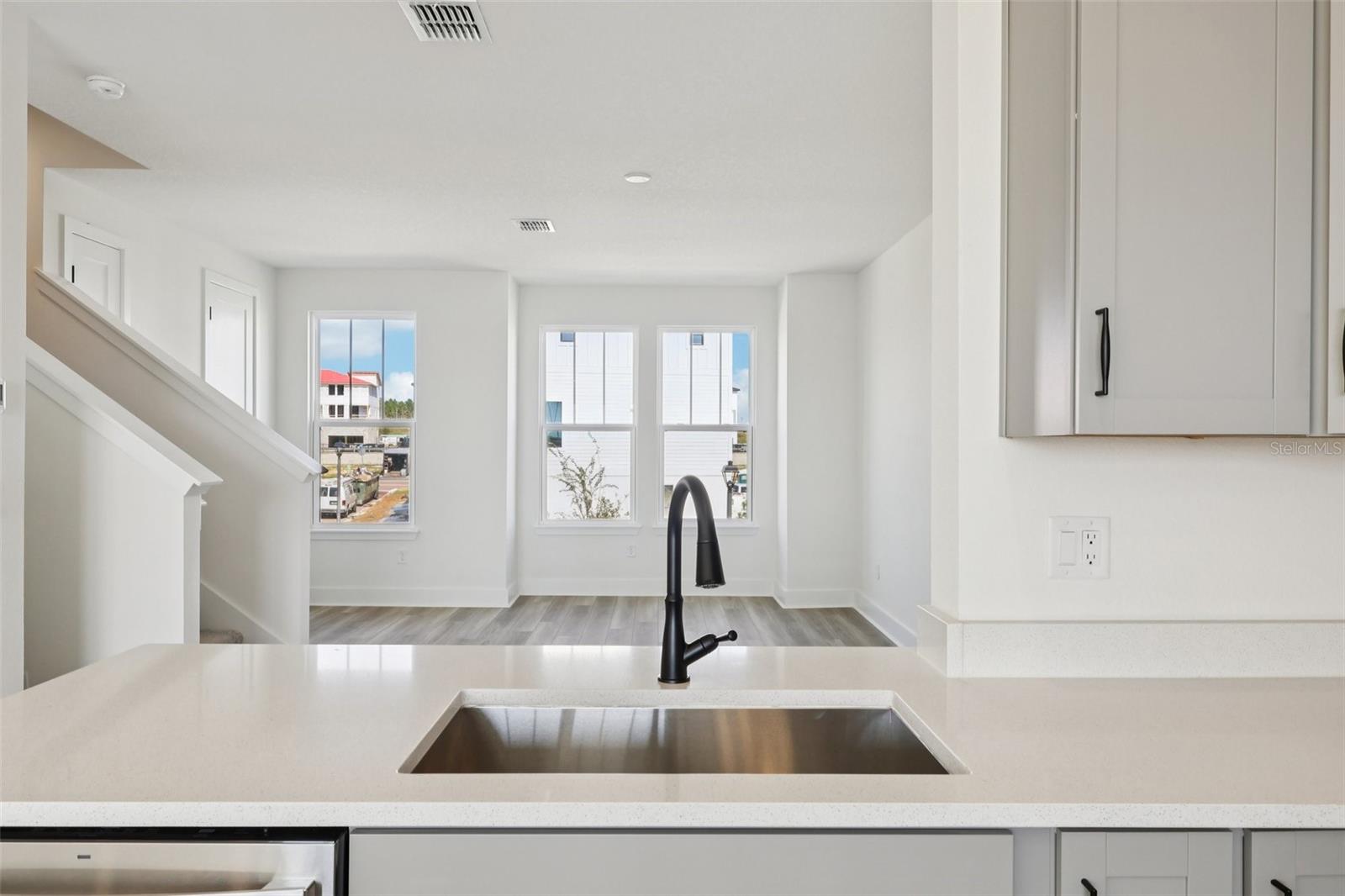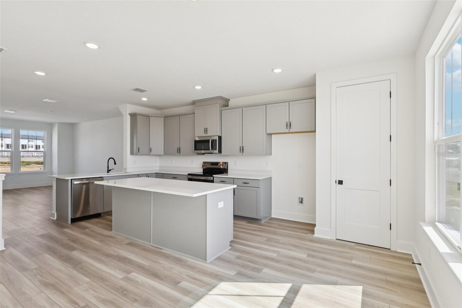 Under Construction. Ready October! This home's estimated completion is September. This new construction, three-story townhome (The Lantana) is a showstopper with its popular farmhouse exterior. This townhome features 4 bedrooms, 3 full bathrooms, a powder room, spanning 1, 881 sq. ft. As you enter this home through the 8' entry-door, you are welcomed with an open spacious foyer with immediate access to your 4th bedroom. As you continue up, you will find luxury vinyl plank flooring that that leads you to the open concept living room, dining room and stunning kitchen. Your inner gourmet will be delighted by the large eat-in island, 42" cabinets with crown molding, quartz counters and soft-close drawers. Your eyes will be drawn to the bank of windows flooding your dining room and kitchen with light. Moving to the third level, you have quick access to the generously sized primary suite that accesses your ensuite bathroom with glass-enclosed shower, dual vanities, and the roomy, well-lit walk-in closet. Adjacent to the primary suite is your laundry room with adjacent, secondary bedrooms and guest bath.