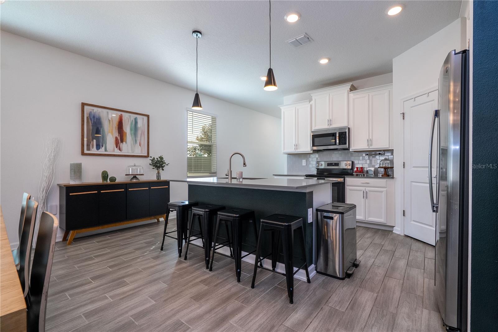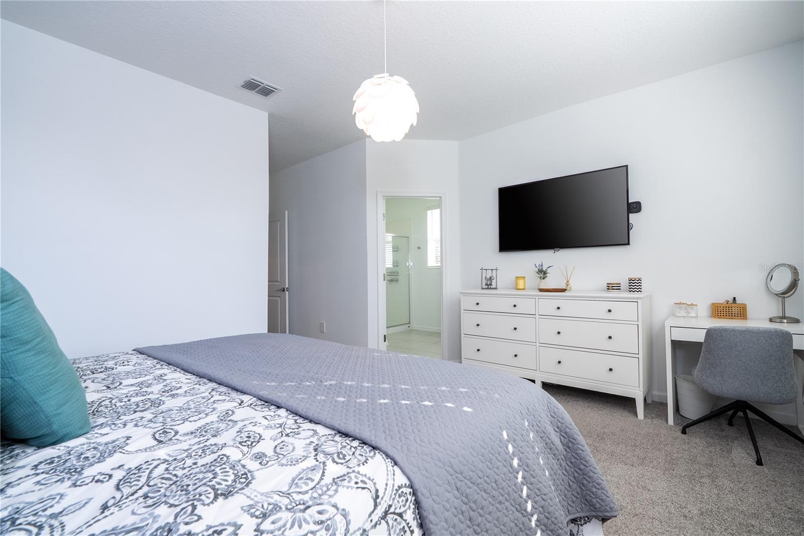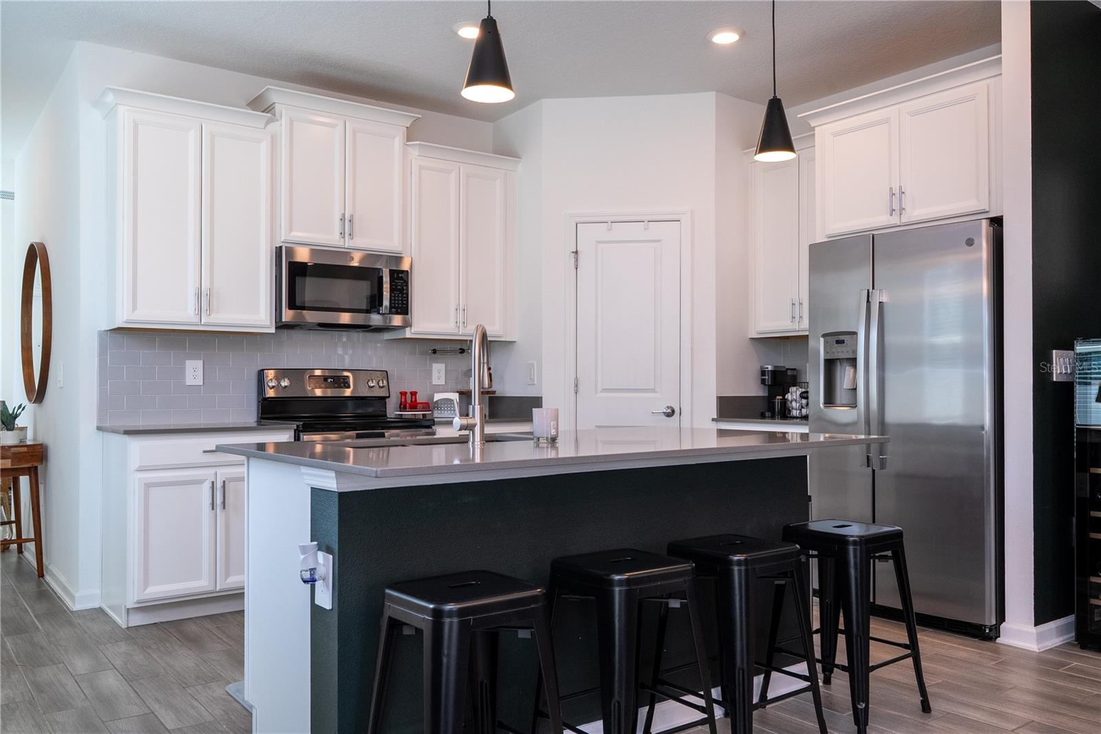 Set on an oversized corner lot with a fully fenced backyard, this stunning 4-bedroom, 3.5-bath home offers one of the most private and unique settings in Waterside at John’s Lake. With no front neighbors and a peaceful dry pond directly across the street, plus no neighbors on the opposite corner where the home meets a beautiful green park, the location creates an exceptional blend of space, privacy, and unobstructed views rarely found in the community. Inside, the property continues to impress with a bright and open floor plan enhanced by modern finishes throughout. The kitchen features 42" cabinets, quartz countertops, stainless-steel appliances, a pantry, and a spacious island ideal for meal prep, gathering, and entertaining. The dining and living areas flow effortlessly together, creating an inviting space for everyday living. The first-floor primary suite offers comfort and convenience with a generous walk-in closet, dual vanities, quartz counters, and a walk-in shower. Upstairs, a versatile loft provides the perfect flex space for an office, media area, or playroom. The second level also includes a second primary suite with its own bathroom, along with two additional bedrooms, great storage, and a full hall bath. Outside, the fenced yard includes a paved patio perfect for outdoor dining or weekend grilling, with direct access to the detached two-car garage. With no rear neighbors and only a short walk to John’s Lake, the community dock, and playground, this lot delivers unmatched privacy and convenience. Waterside at John’s Lake offers resort-style amenities including a beautiful pool, modern fitness center, clubhouse, and scenic lakeside trails. Ideally located just minutes from Downtown Winter Garden, top-rated schools, dining, entertainment, and the Disney parks, this home combines an incredible location with exceptional lifestyle value. Immaculate, move-in ready, and situated on one of the best lots in the neighborhood—this property truly stands out.