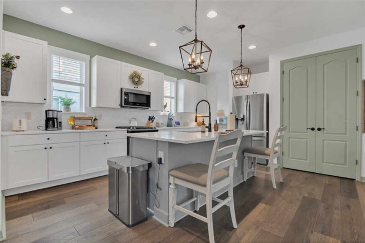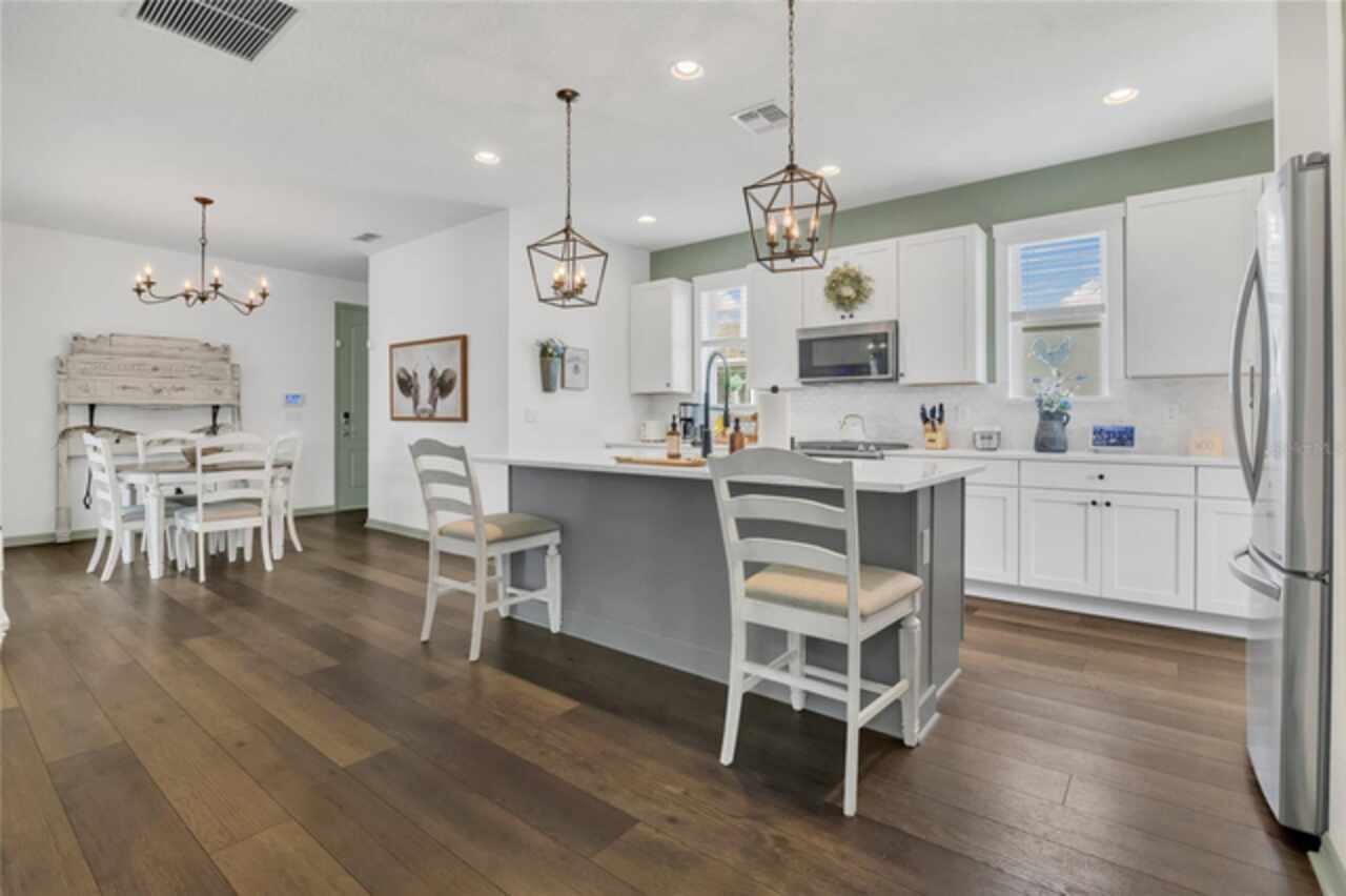 Beautiful 4BR, 3.5 BA two story home in the heart of Hamlin in Horizon West. The open floor plan features laminate flooring on the entire first floor, high ceiling and lots of natural light. The kitchen offers 42" cabinets, stainless steel appliances, quartz countertops, gas range, and a huge island. The 4 bedrooms are upstairs with the primary featuring and en suite bathroom and large walk-in closet. Two additional bathrooms, the laundry room and a bonus area complete the upstairs. Fenced backyard and screened in covered patio. Walk to great new shops and dining, close to the Orlando Health Horizon West Hospital. Top rated schools. Easy access to 429, which can take you anywhere quickly in Central Florida.