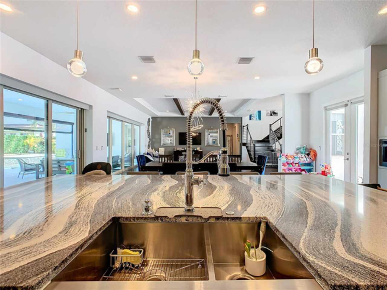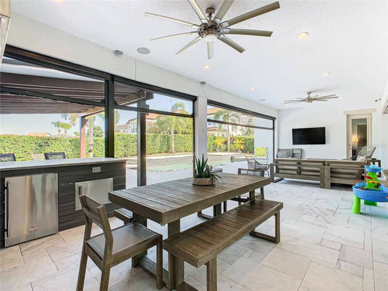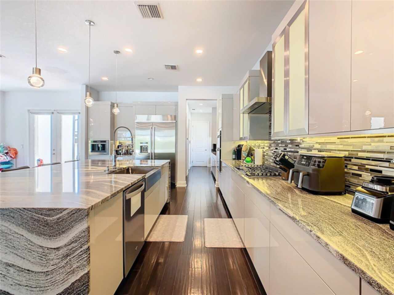 Prepare to be awed by this stunning estate from the Toll Brothers executive collection in the renowned community of Lakeshore Preserve. This home presents an ultra modern layout bringing you an environment that caters to both entertaining and every day life. The first floor is open and has 2 sets of triple pane sliding glass doors that fully open to your personal oasis. Beyond the covered lanai is a beautiful pool, spa and cabana area, perfect for a mid day swim or watching Disney fireworks at night. The kitchens, indoor and outdoor, and sure to impress even the most fastidious of chefs with the natural gas cooktop, multiple mounted range hoods, quartz countertops and more. This property is not only a "smart home" but also environmentally conscientious with newly installed solar panels and an electric car charger. All furniture is included with the sale of this home, the only thing you need is the keys to begin living your best central Florida life. Virtual Tour Available.