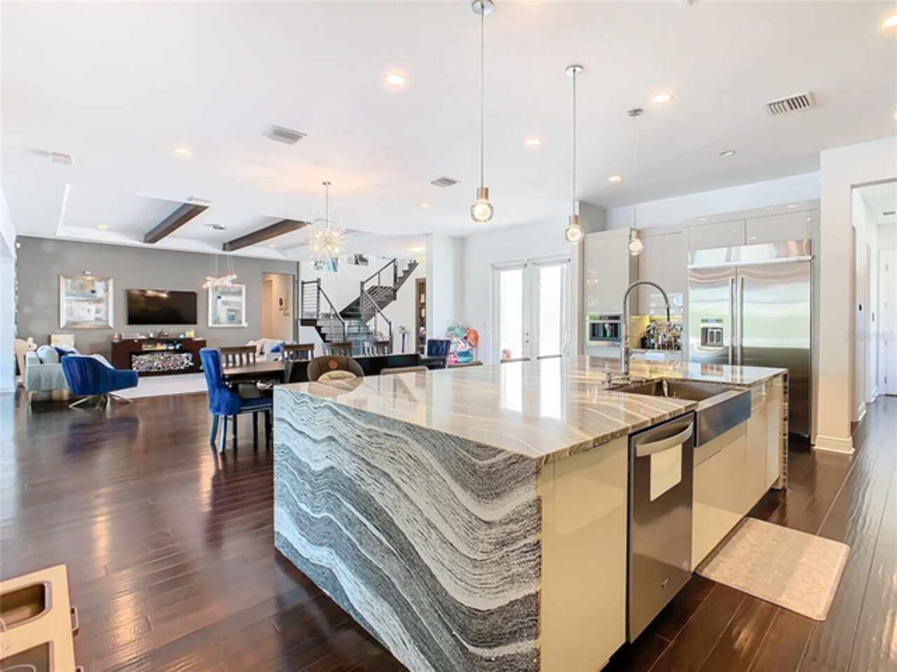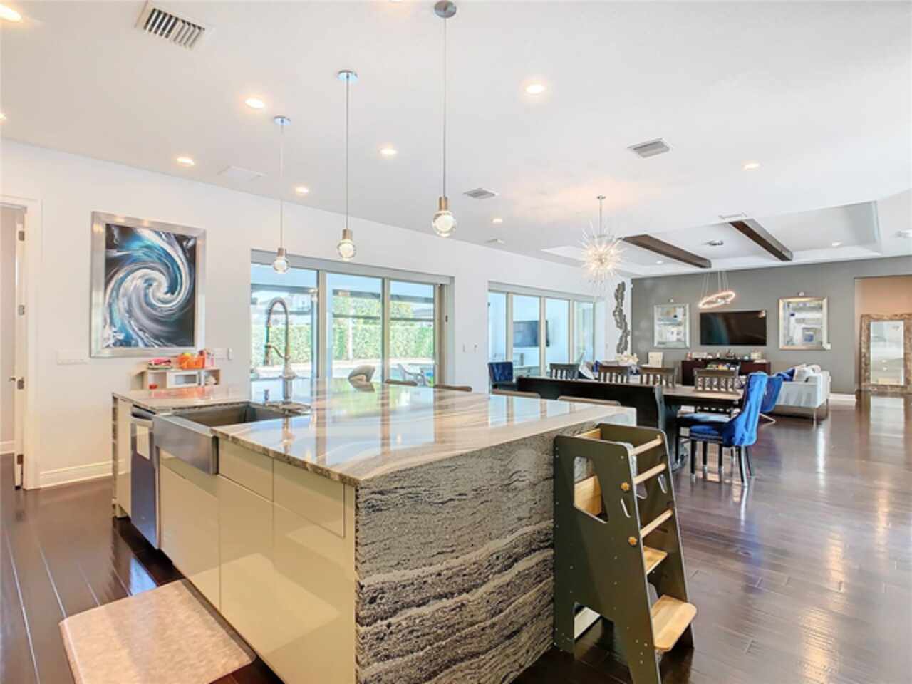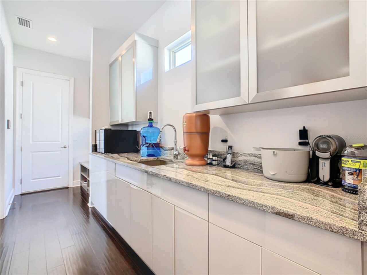 Prepare to be awed by this stunning estate from the Toll Brothers executive collection in the renowned community of Lakeshore Preserve. This home presents an ultra modern layout bringing you an environment that caters to both entertaining and every day life. The first floor is open and has 2 sets of triple pane sliding glass doors that fully open to your personal oasis. Beyond the covered lanai is a beautiful pool, spa and cabana area, perfect for a mid day swim or watching Disney fireworks at night. The kitchens, indoor and outdoor, and sure to impress even the most fastidious of chefs with the natural gas cooktop, multiple mounted range hoods, quartz countertops and more. This property is not only a "smart home" but also environmentally conscientious with newly installed solar panels and an electric car charger. All furniture is included with the sale of this home, the only thing you need is the keys to begin living your best central Florida life. Virtual Tour Available.