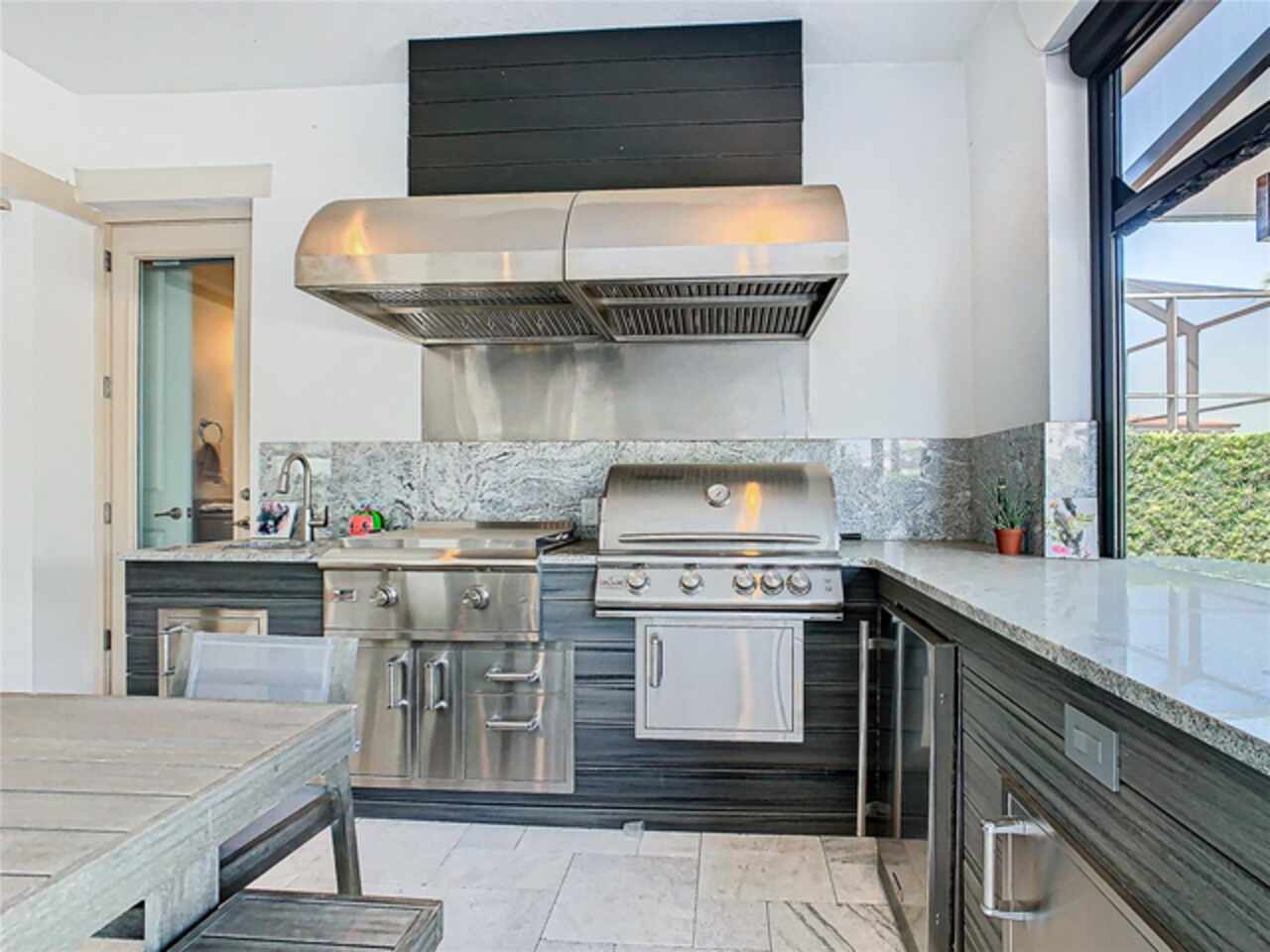 Balcony, Lighting, Outdoor Grill, Outdoor Kitchen, Rain Gutters, Sidewalk, Sliding Doors