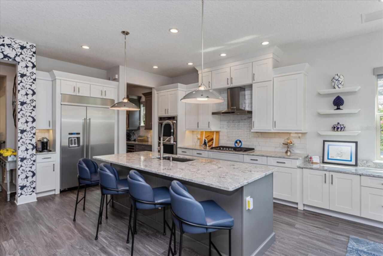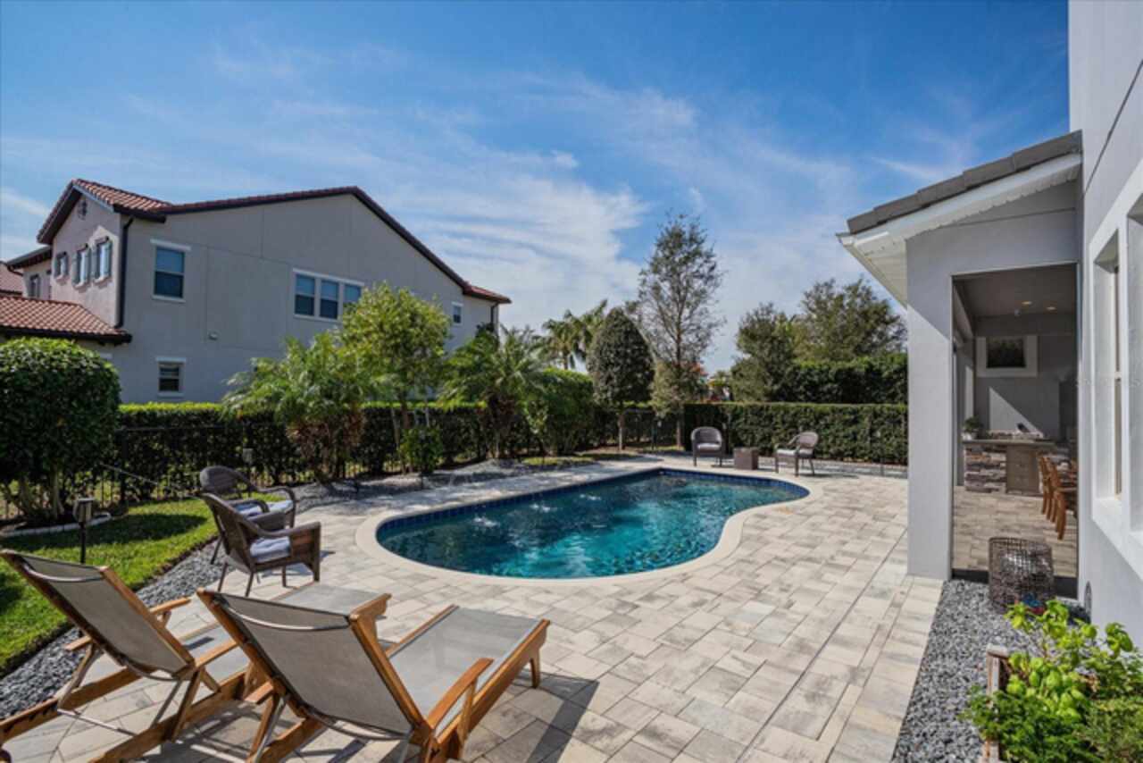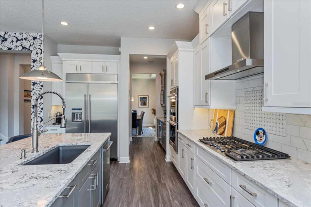 Under contract-accepting backup offers. YOUR FLORIDA DREAM HOME IS HERE WITH A NEW LOWER PRICE! LUXURY POOL HOME WITH ALL THE UPGRADES AND MORE! LIKE-NEW CONDITION! This fabulous Madeira model by Toll Brothers has all the builder upgrades and many, many more added by the seller. Situated on a larger, corner lot and beautifully landscaped, the curb appeal alone is worth a visit. With just under 3900 sf, the home provides 5 bedrooms (2 with ensuite baths), 4.5 bathrooms, 3-car garage, very spacious living areas, and a gorgeous, heated pool with expanded patio and summer kitchen for outdoor entertaining. From the moment you enter, this home exudes luxury at every turn with luxury vinyl plank flooring, electronic shades, high-end appliances, fans and fixtures, custom closets and so much more. Abundant, energy efficient windows flood the home with natural light. The floorplan features a downstairs bedroom with en-suite bathroom, formal dining room and open kitchen/breakfast nook/living area combination perfect for entertaining. A stone wall with an electric fireplace and 3 oversized sliding doors are focal points in the living room. The kitchen is a chef's dream with beautiful quartz countertops and 12' island, gas cooktop, double convection oven, extra-large refrigerator, and walk-in pantry with custom shelving. The upgraded cabinetry is extended into the breakfast nook creating a perfect workspace. A convenient butler's pantry between the kitchen and dining room has a built-in microwave, wine refrigerator and more cabinetry. Attractive wood stairs lead to a large 18'x17' bonus room with the owner's suite off to one side and three secondary bedrooms on the other. The primary suite is impressive with its 21'x17' bedroom with coffered ceiling, 17'x7' walk-in closet with custom built-ins, and spa-like bathroom with 2 large vanities, stand-alone tub and large shower with frameless glass, multiple shower heads and bench. The Lakeshore community fees include lawn care, internet, cable and resort-style amenities: lakefront clubhouse, fitness center, pool, playgrounds, sand volleyball, dog park and more. Located less than 10 miles from the Disney parks, enjoy the nightly fireworks. Horizon West is a great place to live with all the new restaurants, shopping, hospitals, schools, and entertainment.
