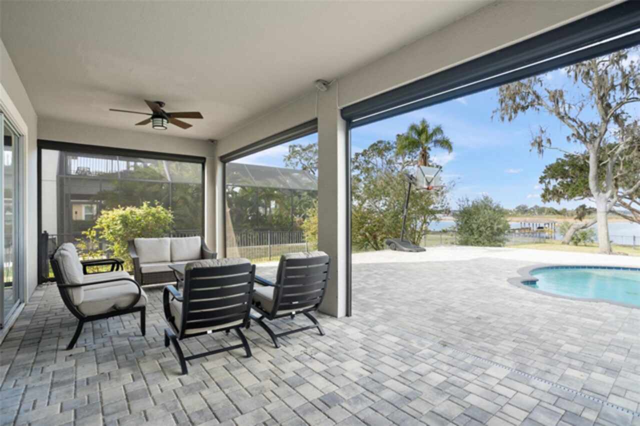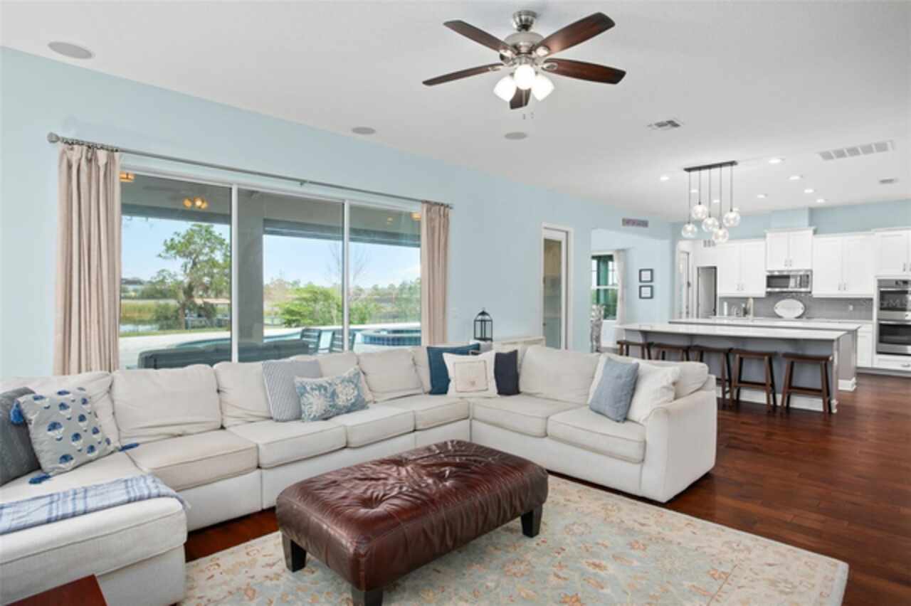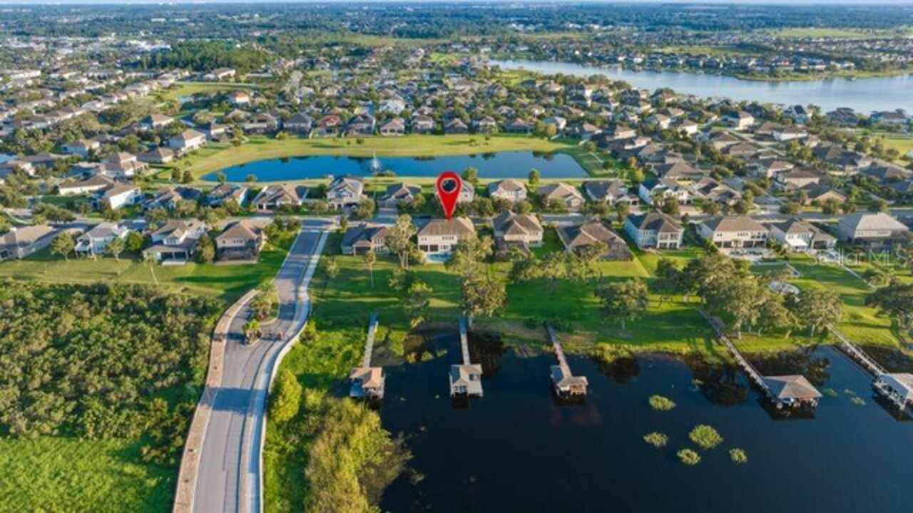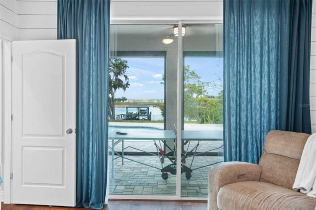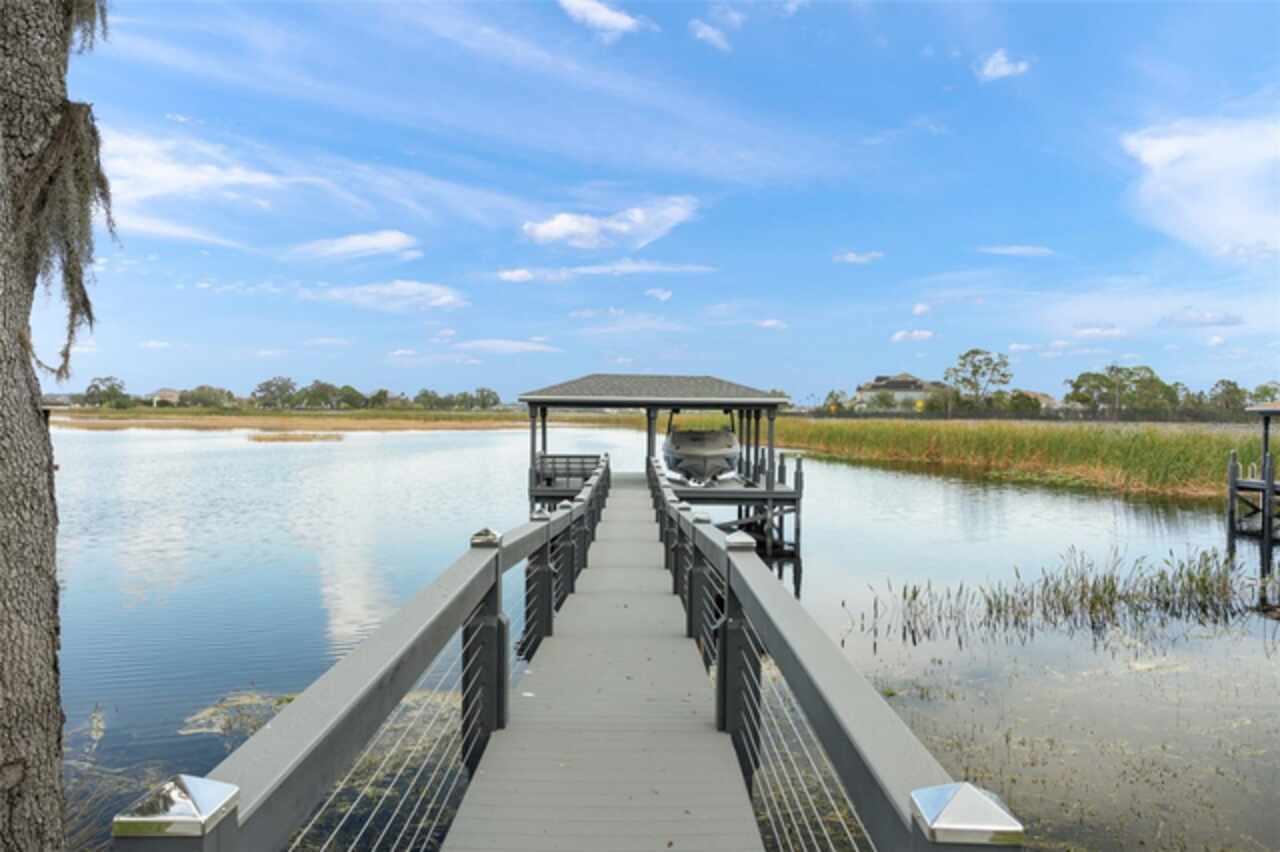 Experience breathtaking lakefront living in this exceptional estate home with a private dock in one of Winter Garden’s most sought-after gated communities: Hickory Hammock at Johns Lake. Perfectly positioned on the shores of Johns Lake, this spacious 5-bedroom, 4 full-bath, 2 half-bath residence offers the ideal combination of elegance, comfort, and outdoor adventure. Whether unwinding on the dock at sunset, setting out for a day of boating and fishing, or simply enjoying the serenity of the water from the private backyard, this home provides a rare opportunity to embrace the Florida lifestyle. Designed for both entertaining and everyday living, the thoughtfully crafted interior features an expansive open floor plan with abundant natural light. The chef-inspired kitchen boasts double islands, premium cabinetry, Silestone countertops, a stylish glass tile backsplash, and a reverse osmosis system, with an adjacent walk-in pantry for added convenience. The family room is designed for comfort, complete with built-in surround sound and seamless indoor-outdoor connectivity through triple sliding doors leading to a covered lanai with retractable screens. A first-floor guest suite includes a private bath and custom Murphy bed, offering flexible space for visitors or a home office, with its own lanai access. Upstairs, the game room with office nook provides additional living space, while the primary suite is a true retreat, featuring French doors opening to a screened balcony with stunning lake views. The luxurious primary bath includes dual vanities, upgraded cabinetry, a walk-in shower, and a garden tub, creating a spa-like atmosphere. Three additional bedrooms, including one with an en-suite bath and two sharing a Jack-and-Jill bathroom, complete the second level, along with a fully equipped laundry room. Outside, the 40’ x 20’ saltwater pool and expansive deck create the perfect setting for entertaining or quiet relaxation. The fully fenced backyard offers both privacy and space to enjoy the beautiful lakefront setting. As part of the prestigious Hickory Hammock community, residents have access to resort-style amenities, including a clubhouse, fitness center, tennis and volleyball courts, a fishing pier, playground, dog park, picnic areas, and scenic walking trails—plus, golf carts are welcome. Conveniently located near Winter Garden Village, historic downtown Winter Garden, top-rated hospitals, and major highways, this home also offers easy access to Disney, Universal, fine dining, luxury shopping, and entertainment.