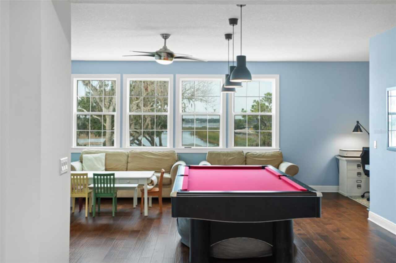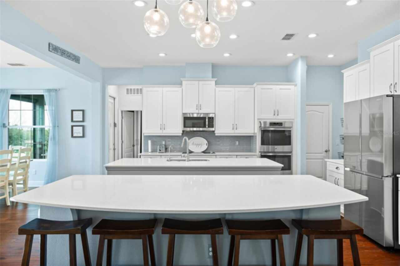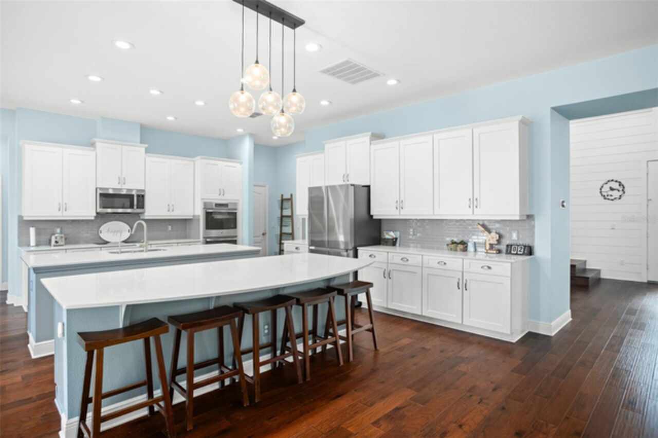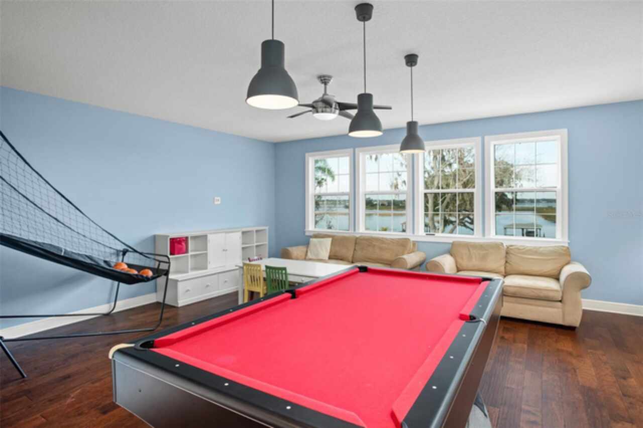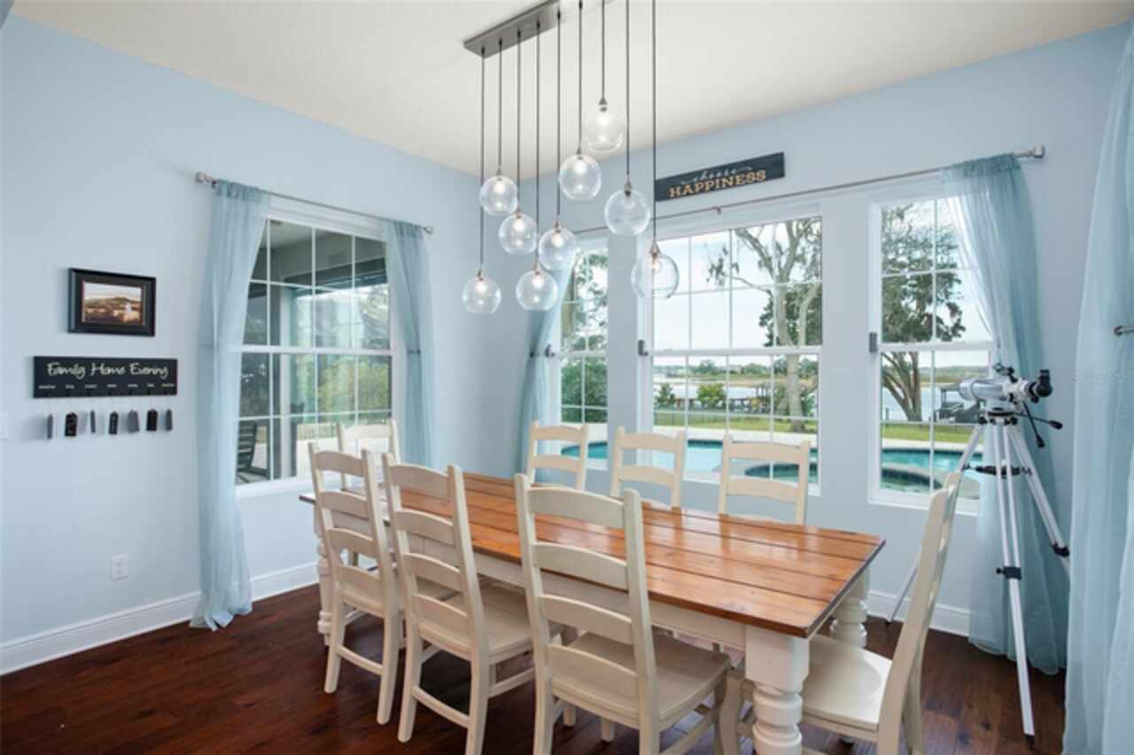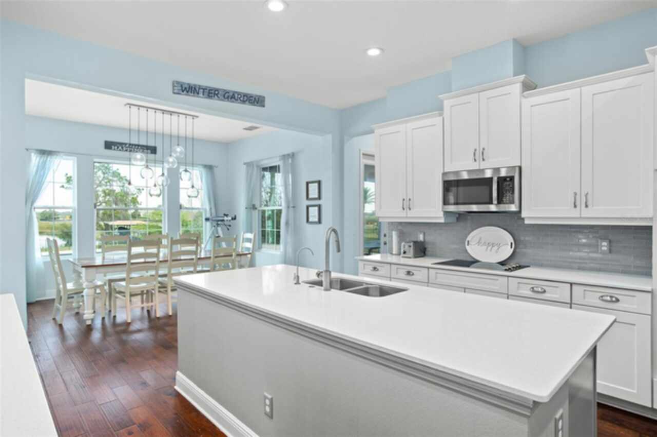 Experience breathtaking lakefront living in this exceptional estate home with a private dock in one of Winter Garden’s most sought-after gated communities: Hickory Hammock at Johns Lake. Perfectly positioned on the shores of Johns Lake, this spacious 5-bedroom, 4 full-bath, 2 half-bath residence offers the ideal combination of elegance, comfort, and outdoor adventure. Whether unwinding on the dock at sunset, setting out for a day of boating and fishing, or simply enjoying the serenity of the water from the private backyard, this home provides a rare opportunity to embrace the Florida lifestyle. Designed for both entertaining and everyday living, the thoughtfully crafted interior features an expansive open floor plan with abundant natural light. The chef-inspired kitchen boasts double islands, premium cabinetry, Silestone countertops, a stylish glass tile backsplash, and a reverse osmosis system, with an adjacent walk-in pantry for added convenience. The family room is designed for comfort, complete with built-in surround sound and seamless indoor-outdoor connectivity through triple sliding doors leading to a covered lanai with retractable screens. A first-floor guest suite includes a private bath and custom Murphy bed, offering flexible space for visitors or a home office, with its own lanai access. Upstairs, the game room with office nook provides additional living space, while the primary suite is a true retreat, featuring French doors opening to a screened balcony with stunning lake views. The luxurious primary bath includes dual vanities, upgraded cabinetry, a walk-in shower, and a garden tub, creating a spa-like atmosphere. Three additional bedrooms, including one with an en-suite bath and two sharing a Jack-and-Jill bathroom, complete the second level, along with a fully equipped laundry room. Outside, the 40’ x 20’ saltwater pool and expansive deck create the perfect setting for entertaining or quiet relaxation. The fully fenced backyard offers both privacy and space to enjoy the beautiful lakefront setting. As part of the prestigious Hickory Hammock community, residents have access to resort-style amenities, including a clubhouse, fitness center, tennis and volleyball courts, a fishing pier, playground, dog park, picnic areas, and scenic walking trails—plus, golf carts are welcome. Conveniently located near Winter Garden Village, historic downtown Winter Garden, top-rated hospitals, and major highways, this home also offers easy access to Disney, Universal, fine dining, luxury shopping, and entertainment.