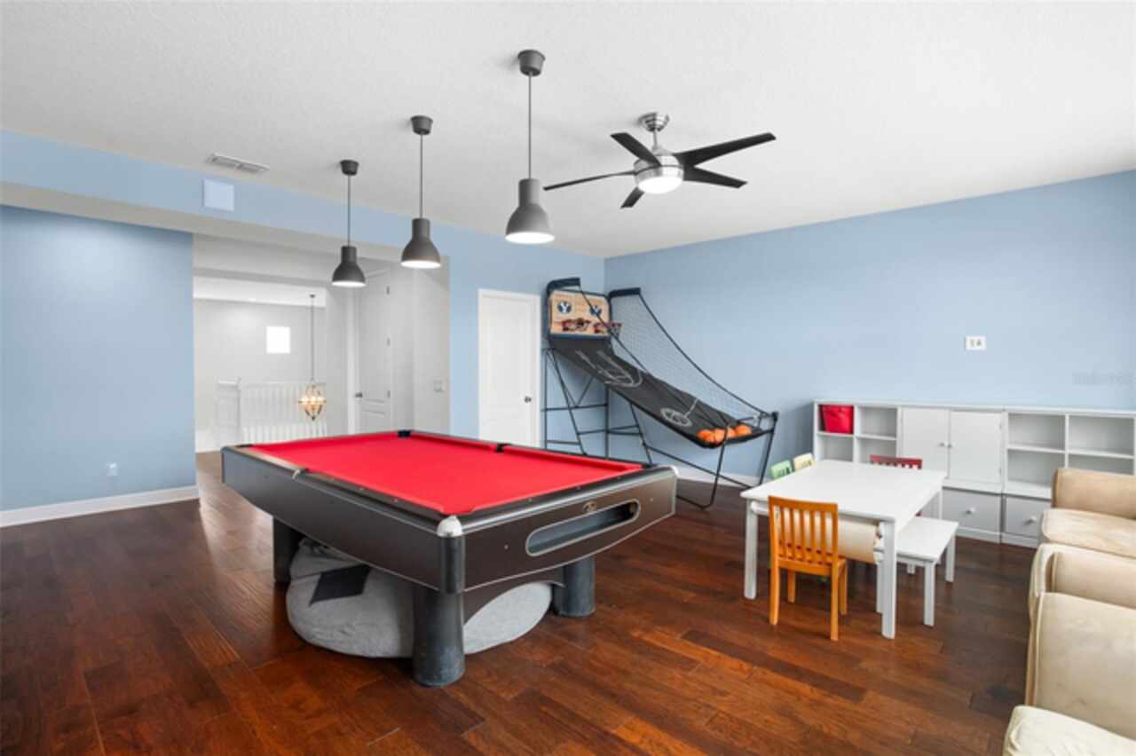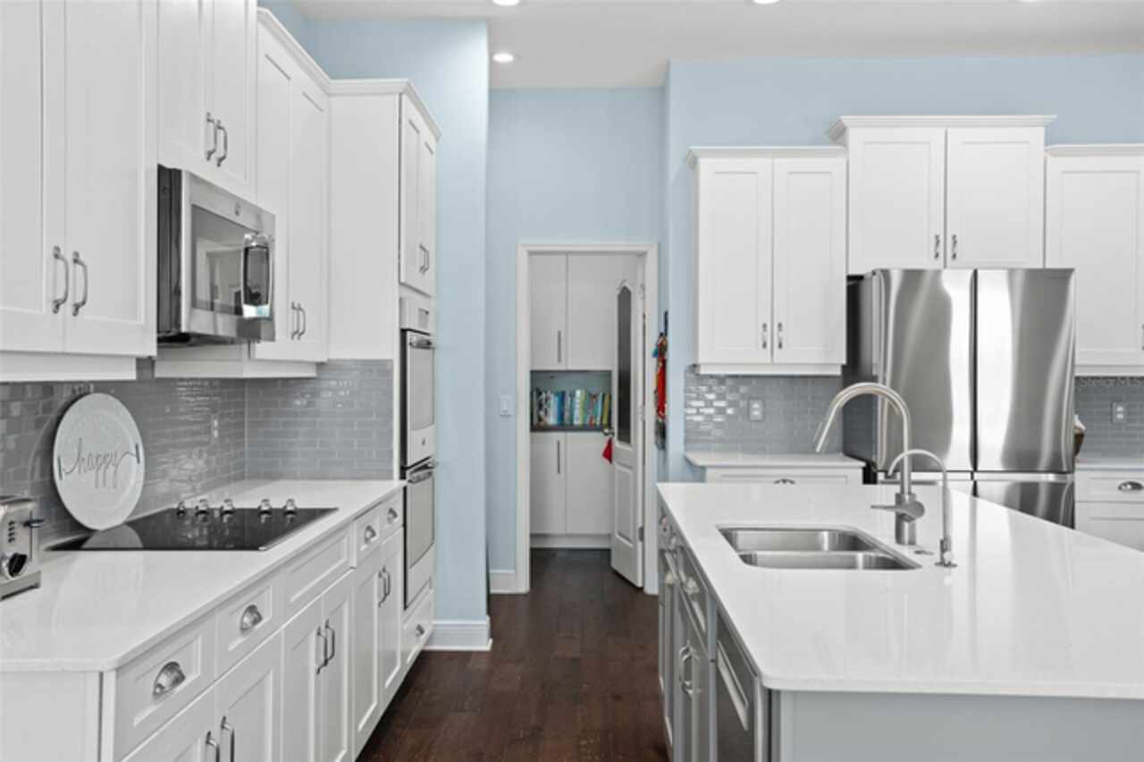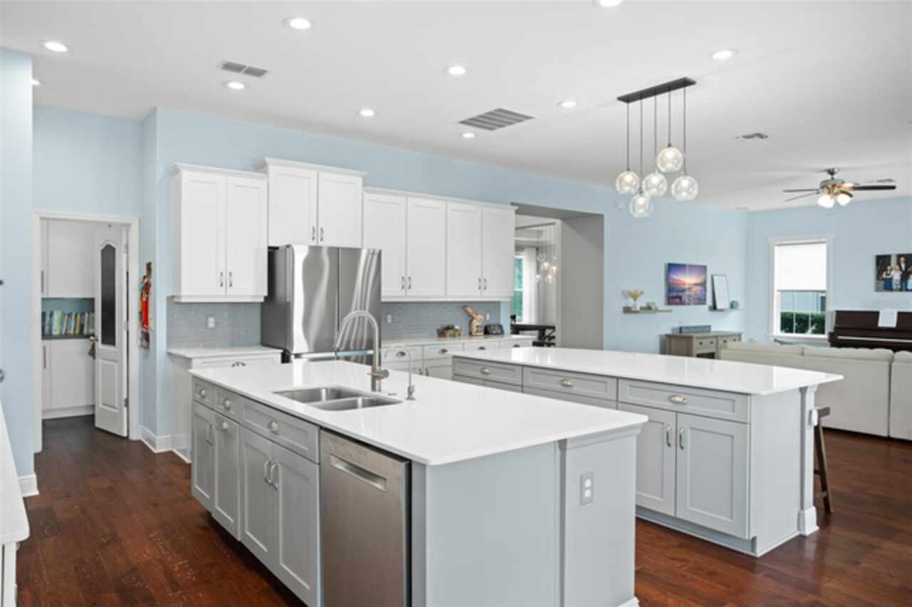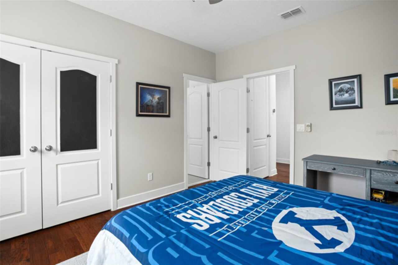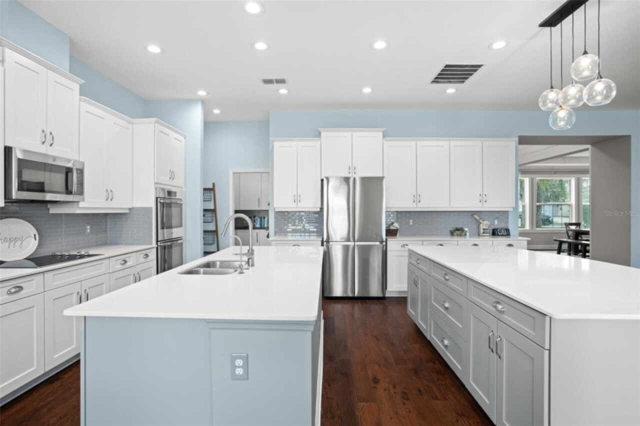 Experience breathtaking lakefront living in this exceptional estate home with a private dock in one of Winter Garden’s most sought-after gated communities: Hickory Hammock at Johns Lake. Perfectly positioned on the shores of Johns Lake, this spacious 5-bedroom, 4 full-bath, 2 half-bath residence offers the ideal combination of elegance, comfort, and outdoor adventure. Whether unwinding on the dock at sunset, setting out for a day of boating and fishing, or simply enjoying the serenity of the water from the private backyard, this home provides a rare opportunity to embrace the Florida lifestyle. Designed for both entertaining and everyday living, the thoughtfully crafted interior features an expansive open floor plan with abundant natural light. The chef-inspired kitchen boasts double islands, premium cabinetry, Silestone countertops, a stylish glass tile backsplash, and a reverse osmosis system, with an adjacent walk-in pantry for added convenience. The family room is designed for comfort, complete with built-in surround sound and seamless indoor-outdoor connectivity through triple sliding doors leading to a covered lanai with retractable screens. A first-floor guest suite includes a private bath and custom Murphy bed, offering flexible space for visitors or a home office, with its own lanai access. Upstairs, the game room with office nook provides additional living space, while the primary suite is a true retreat, featuring French doors opening to a screened balcony with stunning lake views. The luxurious primary bath includes dual vanities, upgraded cabinetry, a walk-in shower, and a garden tub, creating a spa-like atmosphere. Three additional bedrooms, including one with an en-suite bath and two sharing a Jack-and-Jill bathroom, complete the second level, along with a fully equipped laundry room. Outside, the 40’ x 20’ saltwater pool and expansive deck create the perfect setting for entertaining or quiet relaxation. The fully fenced backyard offers both privacy and space to enjoy the beautiful lakefront setting. As part of the prestigious Hickory Hammock community, residents have access to resort-style amenities, including a clubhouse, fitness center, tennis and volleyball courts, a fishing pier, playground, dog park, picnic areas, and scenic walking trails—plus, golf carts are welcome. Conveniently located near Winter Garden Village, historic downtown Winter Garden, top-rated hospitals, and major highways, this home also offers easy access to Disney, Universal, fine dining, luxury shopping, and entertainment.