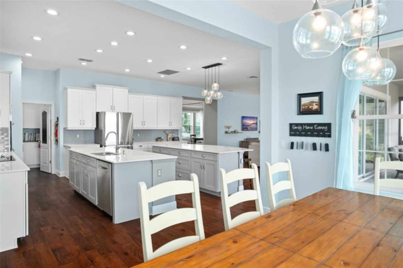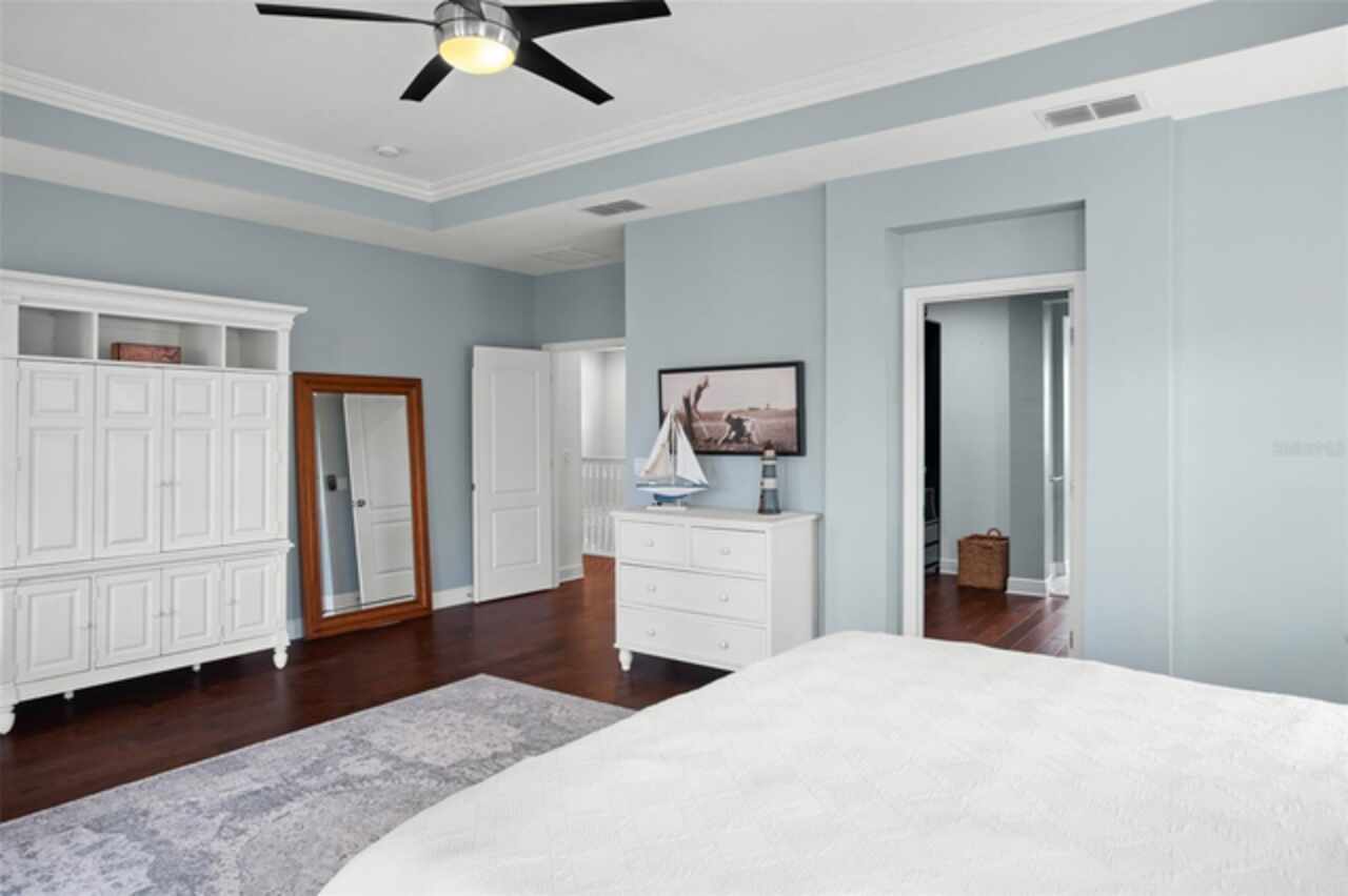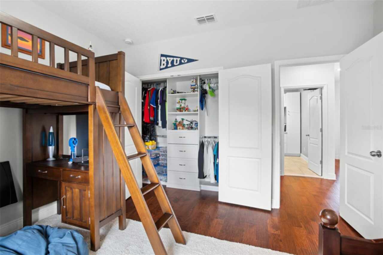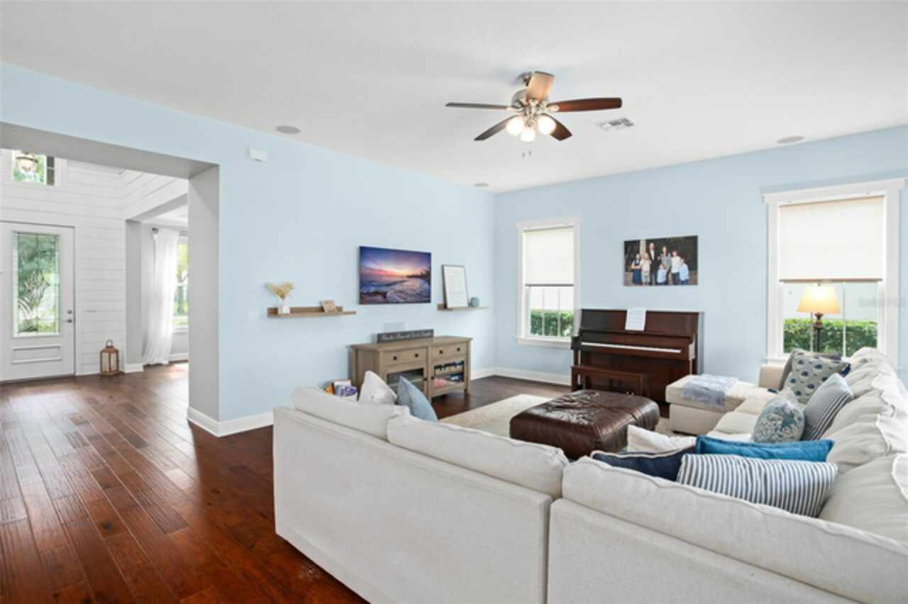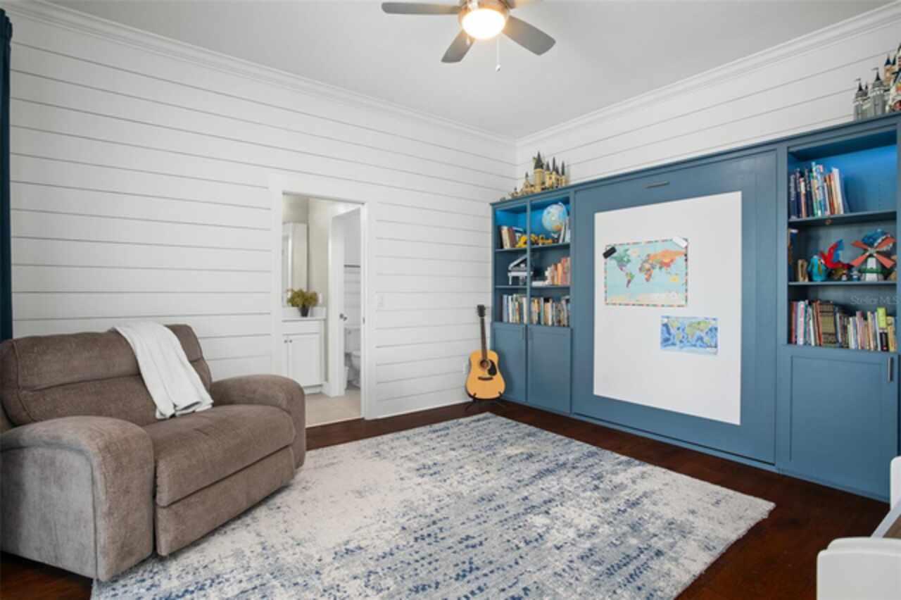 Experience breathtaking lakefront living in this exceptional estate home with a private dock in one of Winter Garden’s most sought-after gated communities: Hickory Hammock at Johns Lake. Perfectly positioned on the shores of Johns Lake, this spacious 5-bedroom, 4 full-bath, 2 half-bath residence offers the ideal combination of elegance, comfort, and outdoor adventure. Whether unwinding on the dock at sunset, setting out for a day of boating and fishing, or simply enjoying the serenity of the water from the private backyard, this home provides a rare opportunity to embrace the Florida lifestyle. Designed for both entertaining and everyday living, the thoughtfully crafted interior features an expansive open floor plan with abundant natural light. The chef-inspired kitchen boasts double islands, premium cabinetry, Silestone countertops, a stylish glass tile backsplash, and a reverse osmosis system, with an adjacent walk-in pantry for added convenience. The family room is designed for comfort, complete with built-in surround sound and seamless indoor-outdoor connectivity through triple sliding doors leading to a covered lanai with retractable screens. A first-floor guest suite includes a private bath and custom Murphy bed, offering flexible space for visitors or a home office, with its own lanai access. Upstairs, the game room with office nook provides additional living space, while the primary suite is a true retreat, featuring French doors opening to a screened balcony with stunning lake views. The luxurious primary bath includes dual vanities, upgraded cabinetry, a walk-in shower, and a garden tub, creating a spa-like atmosphere. Three additional bedrooms, including one with an en-suite bath and two sharing a Jack-and-Jill bathroom, complete the second level, along with a fully equipped laundry room. Outside, the 40’ x 20’ saltwater pool and expansive deck create the perfect setting for entertaining or quiet relaxation. The fully fenced backyard offers both privacy and space to enjoy the beautiful lakefront setting. As part of the prestigious Hickory Hammock community, residents have access to resort-style amenities, including a clubhouse, fitness center, tennis and volleyball courts, a fishing pier, playground, dog park, picnic areas, and scenic walking trails—plus, golf carts are welcome. Conveniently located near Winter Garden Village, historic downtown Winter Garden, top-rated hospitals, and major highways, this home also offers easy access to Disney, Universal, fine dining, luxury shopping, and entertainment.