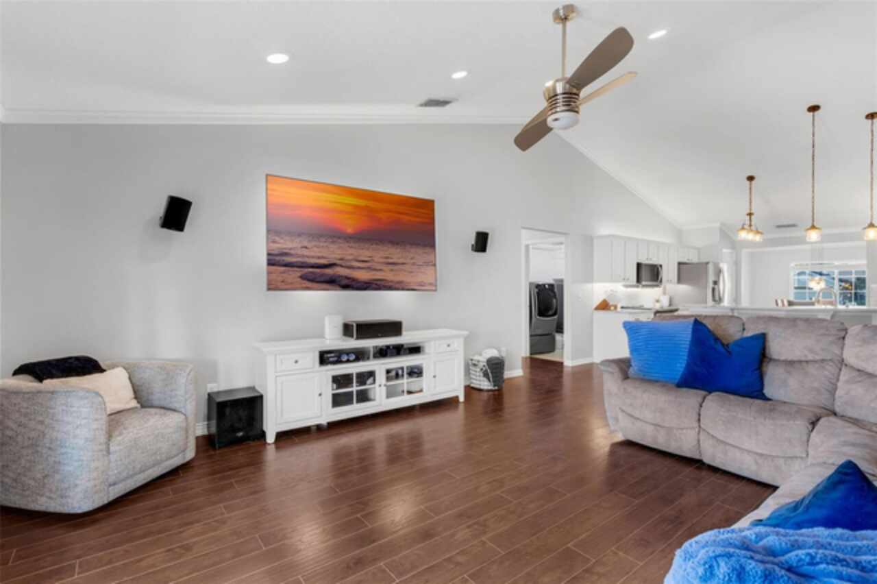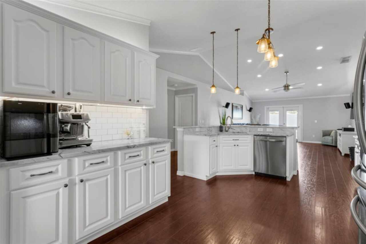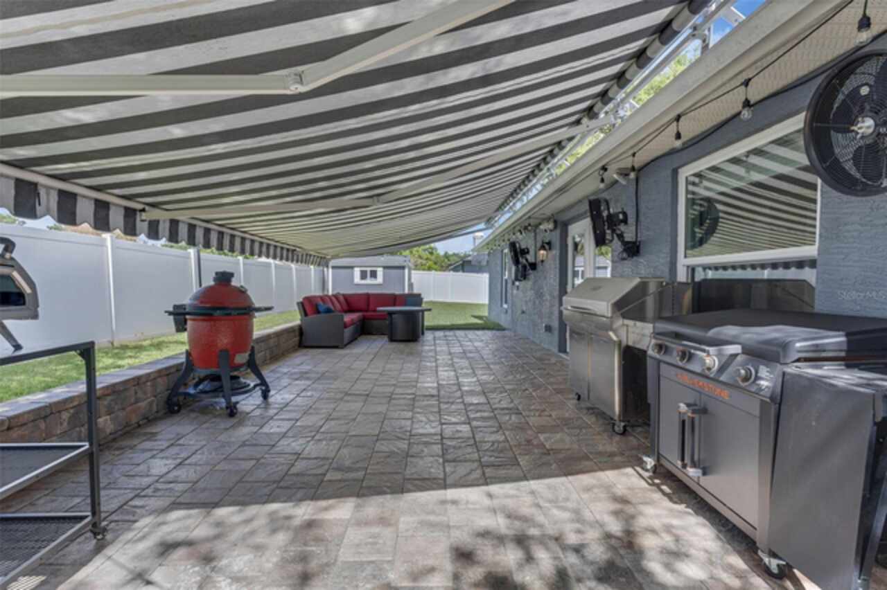 ***Up to $10, 000 towards buyers closing costs*** Nestled in a serene cul-de-sac in the heart of Winter Garden, Florida, this stunning 4-bedroom, 3-bathroom contemporary stucco home offers 2, 455 square feet of comfort and style. Blending elegance and functionality, this residence has been meticulously updated with high-end features, making it an ideal choice for discerning buyers seeking a move-in-ready home. Gorgeous Carrera marble countertops in kitchen and bathrooms, with stylish subway tile backsplash. Step inside to discover a bright and airy floor plan, enhanced by new windows installed in 2020, rated for hurricanes up to 185 MPH, the home features a whole-house water filtration system with UV light for clean, purified water throughout. New carpet in rarely used guest bedrooms. Master bedroom closet expanded to be walk through to His and Hers Full Bathrooms, you'll love this setup! The open-concept living area flows seamlessly, offering ample space for gatherings and everyday living, a beautifully updated kitchen, featuring refinished cabinets (2020) and stainless steel appliances, including a new induction cooktop stove, microwave, and dishwasher, all installed in 2020. There is also a brand new 55 Gallon hot water heater installed less than 2 years ago. The exterior is stucco complemented by a new roof installed in 2020, ensuring durability. The front of the home is adorned with permanent trim lights, controllable via an app to change colors and patterns. The fenced backyard provides privacy, professionally designed 32 x 15 paver patio with a sitting wall, fans with Aeromist misting system, Patio lights and a retractable awning creates a shaded outdoor oasis. A large 10 x 12 permitted site-built shed offers ample storage or workshop space and the irrigation system keeps the lush landscaping vibrant and low-maintenance. This home is designed for effortless living. Located in vibrant Winter Garden, in the highly desirable Tuscany neighborhood, this home offers easy access to charming downtown shops, restaurants, golf cart district and the scenic West Orange Trail. Prepare to be impressed!