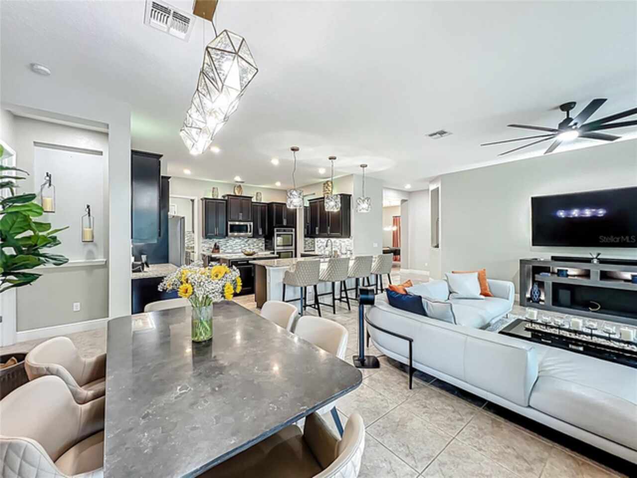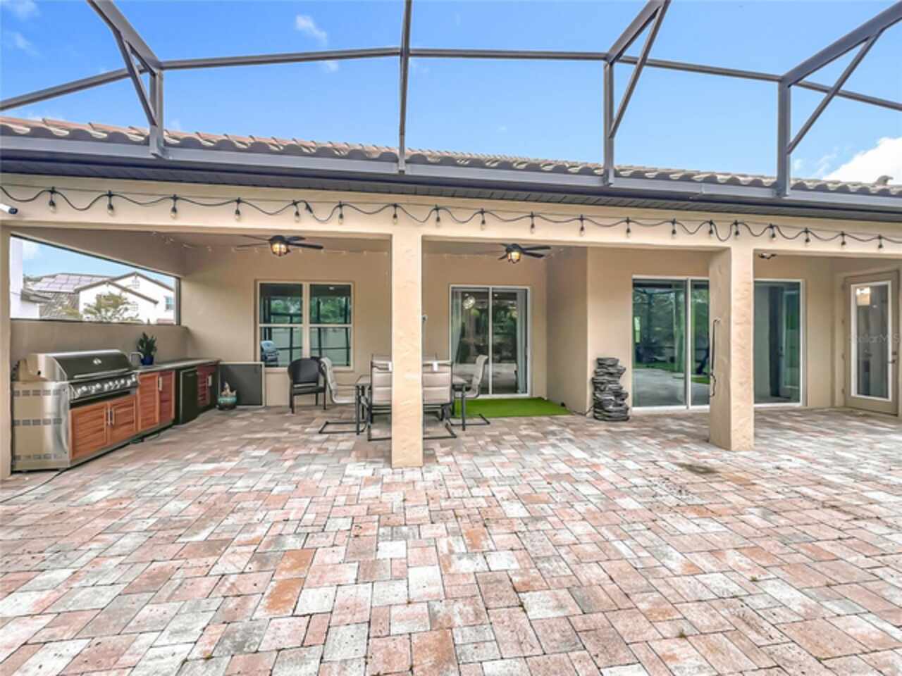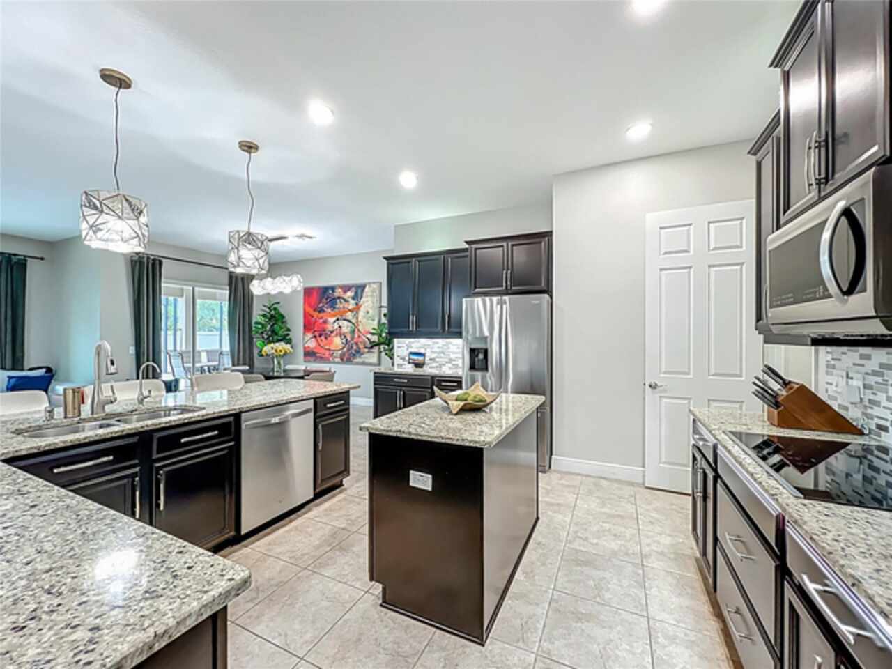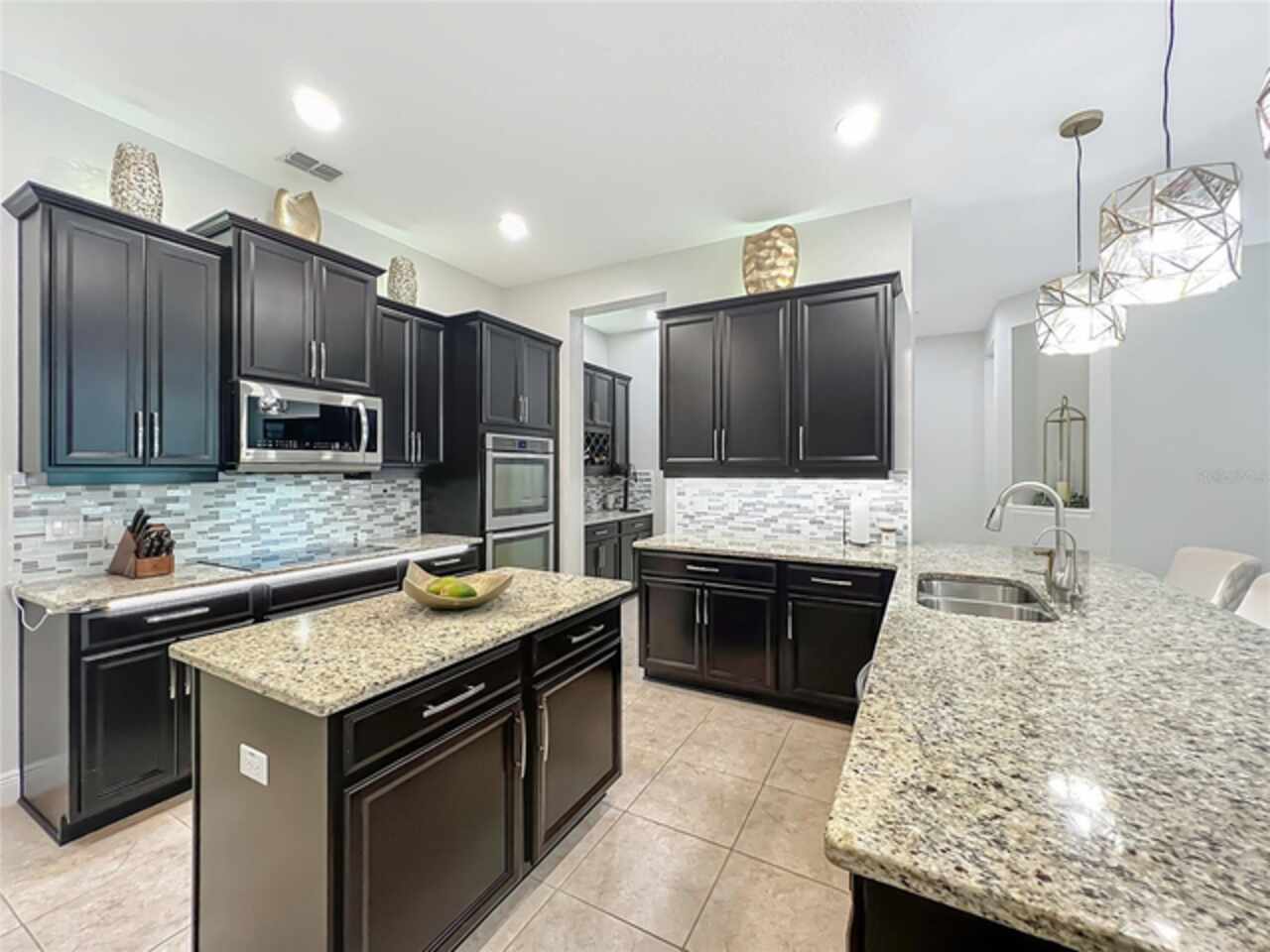 Welcome to Twinwaters—an elegant one-story residence just minutes from Winter Garden Village and historic Downtown Winter Garden. Thoughtfully upgraded and designed for effortless living, this 4-bedroom + private office/den home greets you with a double-door study off the foyer, a convenient guest bedroom and full bath up front, and an inviting formal living/dining space featuring tile flooring throughout the main living areas. At the heart of the home, the open kitchen, dining room and family room make entertaining a breeze. The chef’s kitchen boasts upgraded cabinetry, stainless appliances, a large electric cooktop with tiled backsplash and double oven and microwave, butler’s pantry with wine cabinets and more, walk-in pantry, and not only do you get 2 islands, one of them is an oversized island with generous seating. Under the sink reverse osmosis (RO) system included. Fresh neutral colors, high ceilings, and large-format light tile continue into in the main living area. The primary suite is tucked at the rear by the kitchen for maximum privacy. The spa-style bath offers separate granite vanities, soaking tub, walk-in shower, private water closet, and an expansive built-in walk-in closet. Extra-large closets are found throughout, with two additional bedrooms set on the opposite side of the home for a true split plan. Everyday convenience shines in the laundry room with cabinetry and utility sink and the 3-car garage with upper/overhead storage for added convenience. Set on an oversized lot, the outdoor living is exceptional: a screen-enclosed paver lanai with a full outdoor kitchen, —grill, sink and mini-fridge included—perfect for year-round gatherings. New additions: Top of the Line whole house Water Filtation system and goreous light fixtures in the dining and kitchen area. About a block behind the home you’ll find Twinwaters’ large community pool and playground. The neighborhood borders the shores of Johns Lake and is ideally situated near shopping, dining, attractions, and all major roadways. Twinwaters is a sought-after enclave with recent $1M+ closings—enjoy the luxury lifestyle near Johns Lake. Nature & water lovers: Scrub Point Preserve sits across Johns Lake—a ~93-acre protected peninsula managed by the Lake County Water Authority—typically accessed by boat or kayak and known for its rare/native species and occasional guided outings. A great perk for paddlers, birders, and outdoor enthusiasts who will love living this close to the water. Beautiful upgrades, fixtures, a smart private layout, and resort-style outdoor living—this is the one your looking for. Call for a private showing.
