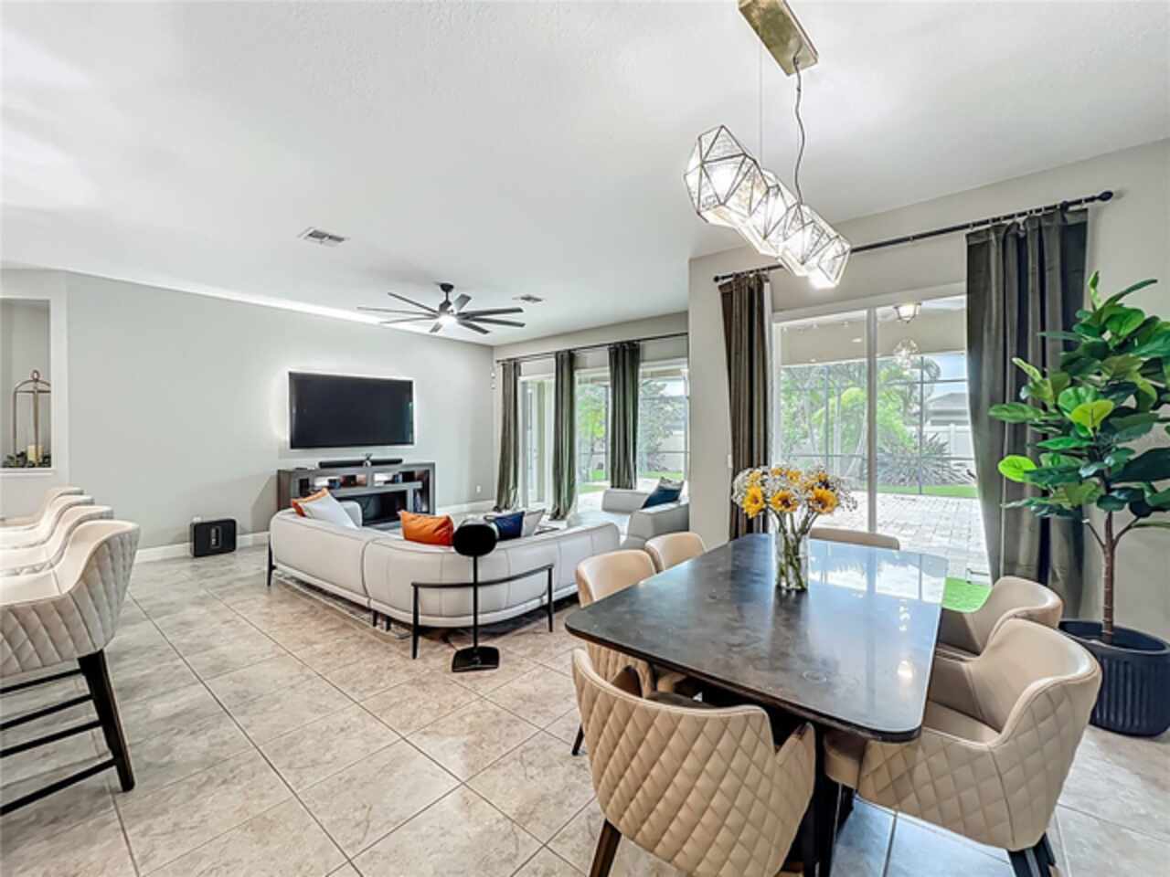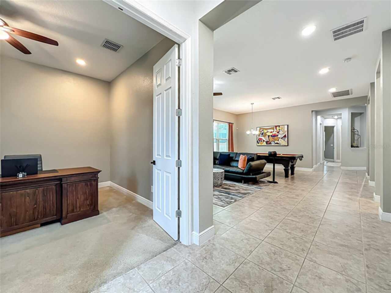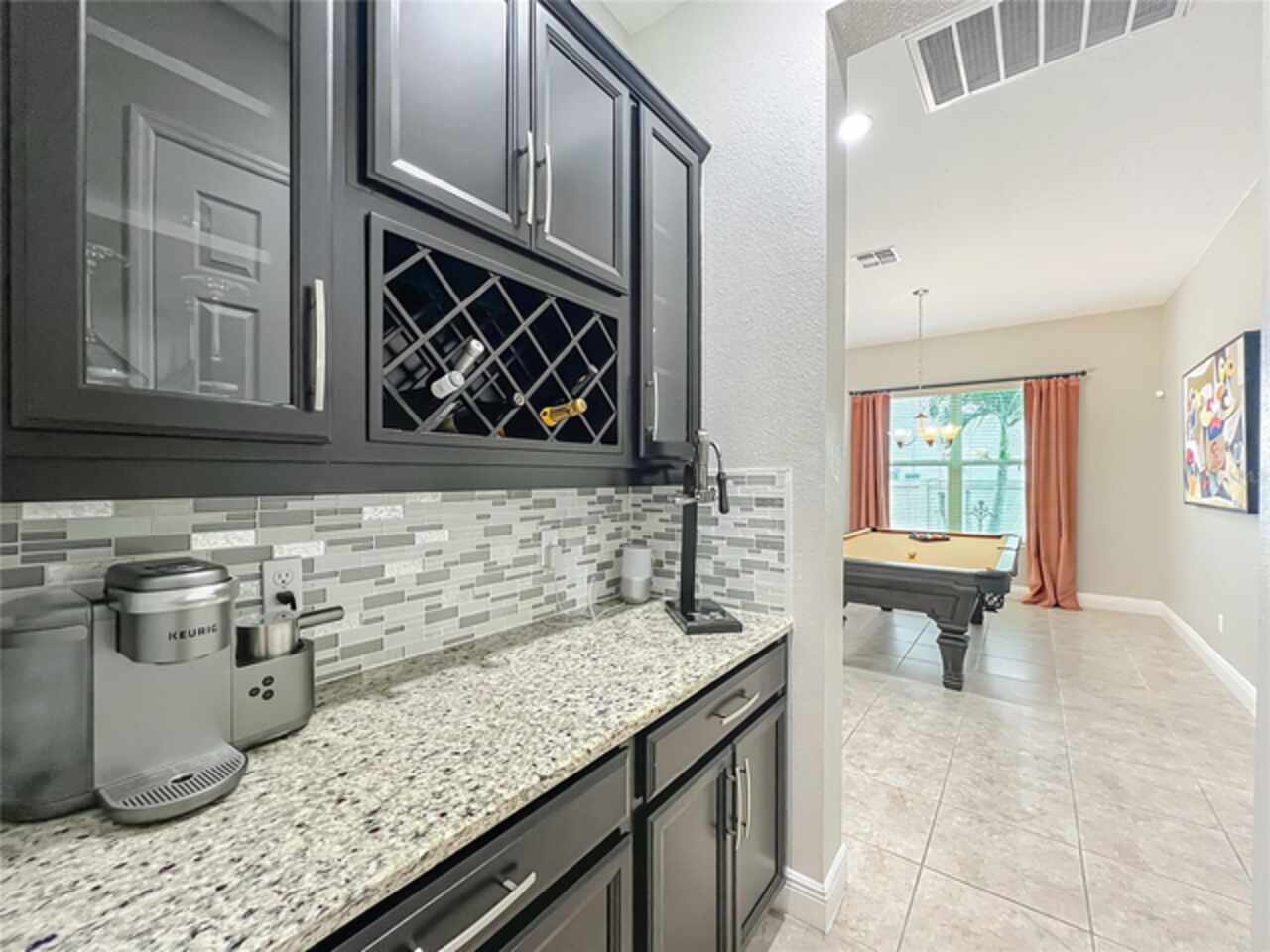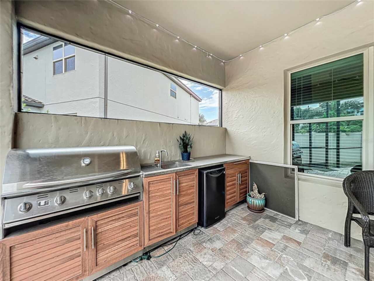 Welcome to Twinwaters—an elegant one-story residence just minutes from Winter Garden Village and historic Downtown Winter Garden. Thoughtfully upgraded and designed for effortless living, this 4-bedroom + private office/den home greets you with a double-door study off the foyer, a convenient guest bedroom and full bath up front, and an inviting formal living/dining space featuring tile flooring throughout the main living areas. At the heart of the home, the open kitchen, dining room and family room make entertaining a breeze. The chef’s kitchen boasts upgraded cabinetry, stainless appliances, a large electric cooktop with tiled backsplash and double oven and microwave, butler’s pantry with wine cabinets and more, walk-in pantry, and not only do you get 2 islands, one of them is an oversized island with generous seating. Under the sink reverse osmosis (RO) system included. Fresh neutral colors, high ceilings, and large-format light tile continue into in the main living area. The primary suite is tucked at the rear by the kitchen for maximum privacy. The spa-style bath offers separate granite vanities, soaking tub, walk-in shower, private water closet, and an expansive built-in walk-in closet. Extra-large closets are found throughout, with two additional bedrooms set on the opposite side of the home for a true split plan. Everyday convenience shines in the laundry room with cabinetry and utility sink and the 3-car garage with upper/overhead storage for added convenience. Set on an oversized lot, the outdoor living is exceptional: a screen-enclosed paver lanai with a full outdoor kitchen, —grill, sink and mini-fridge included—perfect for year-round gatherings. New additions: Top of the Line whole house Water Filtation system and goreous light fixtures in the dining and kitchen area. About a block behind the home you’ll find Twinwaters’ large community pool and playground. The neighborhood borders the shores of Johns Lake and is ideally situated near shopping, dining, attractions, and all major roadways. Twinwaters is a sought-after enclave with recent $1M+ closings—enjoy the luxury lifestyle near Johns Lake. Nature & water lovers: Scrub Point Preserve sits across Johns Lake—a ~93-acre protected peninsula managed by the Lake County Water Authority—typically accessed by boat or kayak and known for its rare/native species and occasional guided outings. A great perk for paddlers, birders, and outdoor enthusiasts who will love living this close to the water. Beautiful upgrades, fixtures, a smart private layout, and resort-style outdoor living—this is the one your looking for. Call for a private showing.