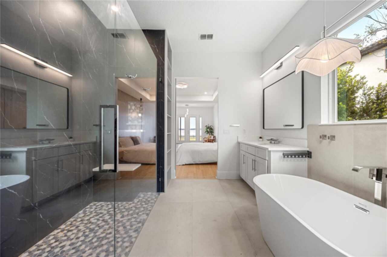 This amazing 7-bedroom, 6.5-bathroom home has been revamped to mix modern style with timeless elegance. Located in a prime spot with exclusive private access to the peaceful motorized Johns Lake, this place offers a rare blend of tranquility and privacy. Step inside to find a perfect mix of style and comfort, with custom features built to suit any lifestyle. The main level features a spacious primary suite that feels like your own private retreat, and bathroom has been updated to bring you a spa-like vibe with classy finishes. The lower-level primary suite impresses with a huge walk-in closet, a comfy sitting area with French doors opening to the outdoors. Practical touches include not one, but two laundry rooms, plus cozy built-in entertainment spaces with an electric fireplace to create a warm, inviting atmosphere. Upstairs, an awesome entertaining area awaits with a stylish built-in wet bar complete with granite countertops, a beverage fridge, and custom cabinetry. An impressive home theater with a top-of-the-line surround sound system, a projector, and a 120-inch screen is perfect for everything from lively parties to relaxed family movie nights. This move-in-ready Winter Garden home is more than just a place to live—it’s a lifestyle. You’ll be just minutes away from world-class Orlando attractions like Walt Disney World, downtown Winter Garden, top-notch golf courses, and a variety of shops and restaurants. Plus, with easy access to the Florida Turnpike and I-4, you’ll enjoy breathtaking views and unbeatable convenience every day. Home is zoned for the following public schools: Hamlin Elementary School, Hamlin Middle School, West Orange High School. There are a number of other schools in the area such as Windermere Preparatory and Montverde Academy.