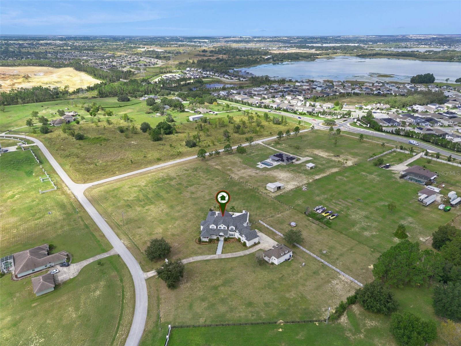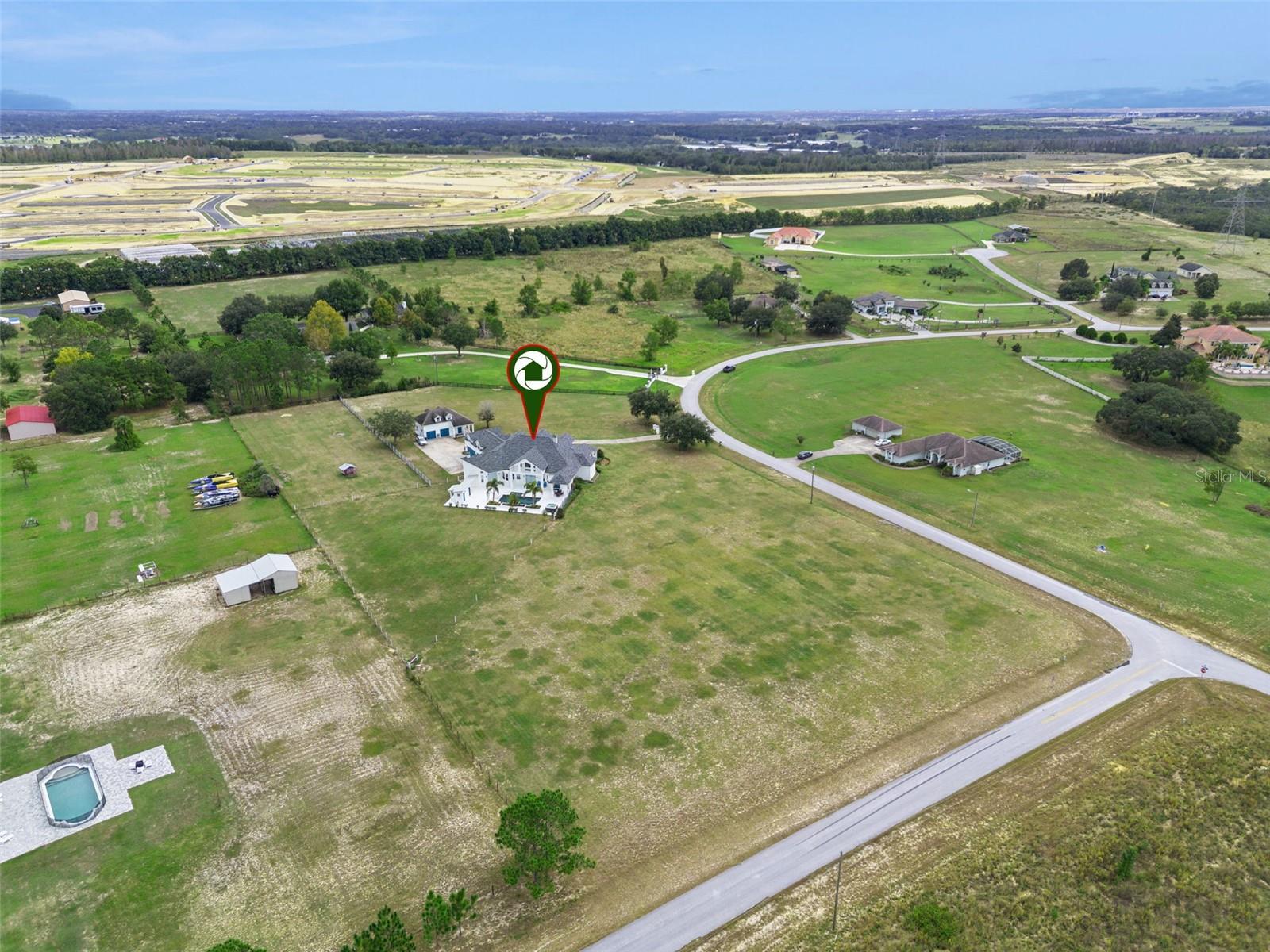 Discover Winter Garden’s best-kept secret in Avalon Estates, a peaceful, horse-friendly enclave where timeless country charm meets modern luxury. This custom-built residence offers an impressive 6, 400 sq. ft. under air and nearly 10, 000 sq. ft. under roof, set on 4.6 picturesque acres surrounded by nature and serenity. From the moment you arrive, the inviting curb appeal and sprawling front porch set the tone for what awaits inside. Step through the double entry doors into a grand living space filled with soaring ceilings, abundant natural light, and an airy, open feel that defines Florida living at its finest. The modern farmhouse kitchen is a dream for entertaining, featuring two expansive islands, generous counter space, and seamless flow into the family room, where a wood-burning fireplace adds warmth and charm. French doors open to the pool area, complete with two oversized covered lanais, creating an ideal setting for relaxing or hosting guests. The downstairs primary suite is both spacious and inviting, featuring a private fireplace, large walk-in closet, and a magazine-worthy en suite bath. A private office sits just off the primary suite, offering a quiet retreat for work or study. Upstairs, you’ll find a large bonus room with kitchenette, three additional bedrooms, and two full bathrooms—perfect for family or guests. Don’t miss the panoramic views through the large windows—on clear nights, you can watch Disney fireworks sparkle in the distance and even catch NASA rocket launches from the east coast. Built with poured concrete tilt-wall construction, this home is as strong and resilient as it is beautiful. The laundry room doubles as a safe room, featuring metal doors, bullet-resistant glass, and reinforced concrete walls and ceiling. Additional highlights include a new roof (2025), an attached three-car garage, plus a detached 2.5-car garage with studio and full bath—ideal for guest quarters, an office, or hobby space. Located just minutes from shopping, dining, and major highways (Florida Turnpike, 429, and 408), this estate is 11 miles from Disney World, 12 miles from Universal Studios, and 23 miles from Orlando International Airport. With its combination of space, craftsmanship, and location, this property also offers excellent potential as a luxury short-term rental. Experience the tranquility and grandeur of Avalon Estates—schedule your private tour today and start creating lifelong memories in your new home.