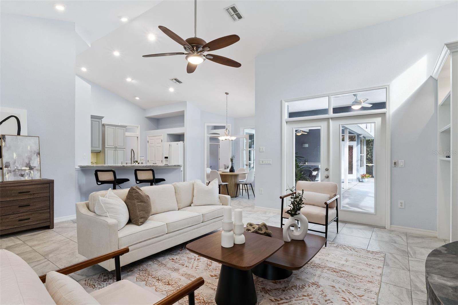 Welcome to this beautifully updated residence on one of the largest lots in the highly sought-after Willows at Lake Rhea in Windermere. Set on a 0.71-acre cul-de-sac lot surrounded by lush landscaping, the home offers exceptional privacy and a tranquil setting. Custom built by renowned local builder Richard Watson, known for his craftsmanship, thoughtful design, and quality construction, this single-story home features 4 bedrooms, 3 full bathrooms, a formal dining room, formal living room, and a custom pool. As you step inside, you’ll immediately notice the high ceilings, beautiful Acacia wood floors, and abundant natural light. The open floor plan provides sweeping views of the pool and gardens. The formal living room features a triple sliding door leading to the pool for easy indoor/outdoor entertaining, while the formal dining room—with a double tray ceiling, crown molding, and bay window—connects effortlessly to the kitchen and family room. The kitchen and family room showcase vaulted ceilings and newer porcelain tile, and feature French doors leading to the outdoors. The kitchen includes newer soft-close cabinetry, granite countertops, generous storage, under-cabinet lighting, and a stylish backsplash. The kitchen nook offers pool views through surrounding windows, ideal for casual dining. The large family room is anchored by an entertainment wall with built-in shelving and a wood-burning fireplace. The oversized owner’s suite offers direct pool access and a spa-like bathroom with a free-standing soaking tub, quartz dual vanities, a zero-entry shower, and dual custom closets. A secondary bedroom with French doors and a bay window works well as an office, playroom, or den. Another updated bathroom with travertine wainscoting, a seamless glass shower, and modern vanity doubles as a convenient pool bath. On the opposite wing, two generously sized bedrooms with built-in shelving and desk nooks share a Jack-and-Jill bathroom with a large quartz-topped vanity. Outdoors, enjoy the spacious custom pebble-finish pool and ample deck space for lounging and entertaining. The lanai features a convenient sink and cabinet area, a coffered ceiling, and plenty of seating within the screened patio. The oversized yard provides room for gardening, recreation, and relaxation. The laundry room includes a utility sink and storage cabinets. An expansive driveway offers generous parking space, and the side-entry garage provides additional storage. The Willows at Lake Rhea is zoned for top-rated schools—Windermere Elementary, Bridgewater Middle, and Windermere High—and offers a tennis/pickleball court, basketball, playground, and park. The location provides access to the town library, new shopping plaza, Farmer’s Market, Food Truck nights, and holiday events. Residents also have access to the town’s tennis courts and a boat launch into the Butler Chain of Lakes for a small annual fee. Additionally, you'll have easy access to the 429, 408, and Florida’s Turnpike. Conveniently located near major attractions like Disney World and Universal Studios, the Winter Garden Village shopping center, and the shopping and dining of Dr. Phillips. Recent improvements include: AC (2025), Water Heater (2024), new irrigation pump(2025), new pool pump(2025), and septic drainfield (2018). With its updates, location, and exceptional lot, this home is an outstanding opportunity. Call today to schedule a private tour!