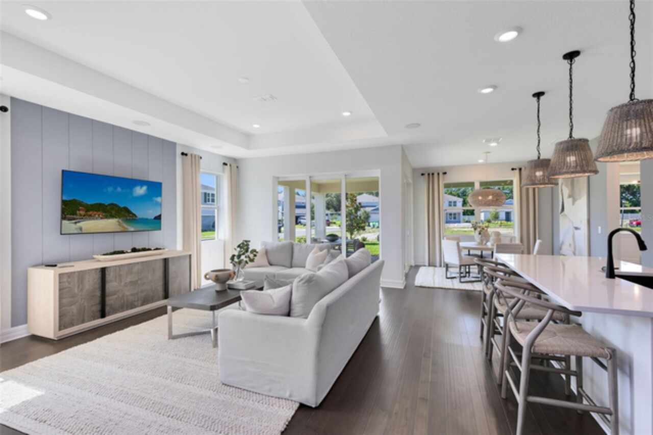 Under Construction. Welcome to Winter Grove in the charming city of Winter Garden. Located 1 mile from Winter Garden Village and 3 miles from historic downtown Winter Garden. This intimate gated new community features single-family homes on large homesites without a CDD. Residents enjoy all the proximity to shopping, dining, and entertainment this area is known for. Explore Our Two Models! The beautifully designed 4 bedroom with enclosed flex room, 3 bathroom, 2 car garage Coral Grand home offers the perfect blend of luxury, comfort, and functionality. As you step inside, you are greeted by a grand foyer that opens to the second floor, creating an inviting and open atmosphere. To your right, a spacious secondary bedroom and full bath provide ideal accommodations for guests. Adjacent, an enclosed flex room offers endless possibilities – whether it’s a private office, hobby room, or a cozy reading nook. Travel deeper into the heart of the home, and you’ll find an expansive open concept layout that seamlessly connects the gathering room, kitchen, and cafe. Large windows throughout the main living areas flood the space with natural light, creating a warm and welcoming ambiance. The chef’s dream kitchen is a showstopper, complete with a built-in natural gas cooktop, stainless steel KitchenAid appliances (including refrigerator), and soft-close Winstead White cabinetry. The quartz countertops, decorative tile backsplash, granite single bowl sink, upgraded faucet, under cabinet lighting, and pendant pre-wiring elevate the space, making it perfect for both cooking and entertaining. Step outside to enjoy the extended covered lanai, complete with a pocket sliding glass door that create a seamless transition between indoor and outdoor living. The owner's suite, located conveniently on the first floor, provides a private retreat with ample space, and is complemented by a luxurious en-suite bathroom with a spa-like glass enclosed shower, free-standing bathtub, a quartz-topped dual vanity, a private water closet, and an expansive walk-in closet. The laundry room is also thoughtfully located on the first floor, complete with a Whirlpool washer and dryer, adding to the home’s convenience and ease of living. Upstairs, you’ll find two additional bedrooms, a full bathroom, and a spacious loft, offering plenty of room for everyone. Beautiful Shaw Wood-Look Luxury Vinyl Plank floors span the first floor living spaces and staircase, while plush, stain-resistant Shaw carpet adds comfort to the bedrooms and loft and tile adds durability to the bathrooms and laundry room. Throughout the home, you’ll notice meticulously chosen designer selections, including 8-foot first floor interior doors, Sherwin Williams City Loft Interior Wall Paint, matte black hardware and plumbing fixtures, 2” faux wood blinds, and Wrought Iron Basket Balusters with Oak Handrail – all adding to the home’s modern appeal. For those who appreciate the convenience of technology, this home comes equipped with a smart thermostat, smart doorbell, and LED downlights, ensuring your home is as connected as it is beautiful. Experience the luxury of modern living with timeless design – schedule a tour today and see all that this exceptional home has to offer!