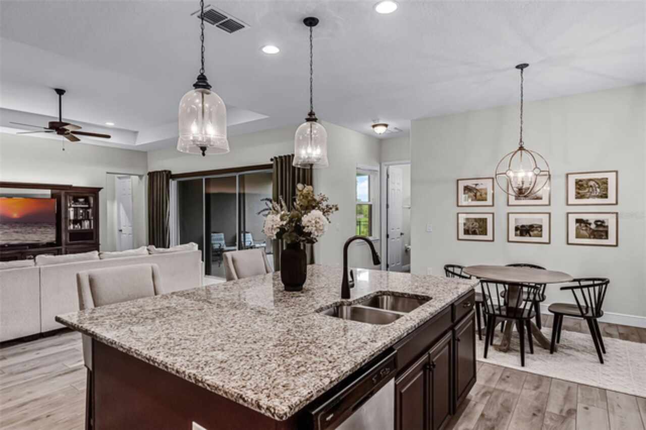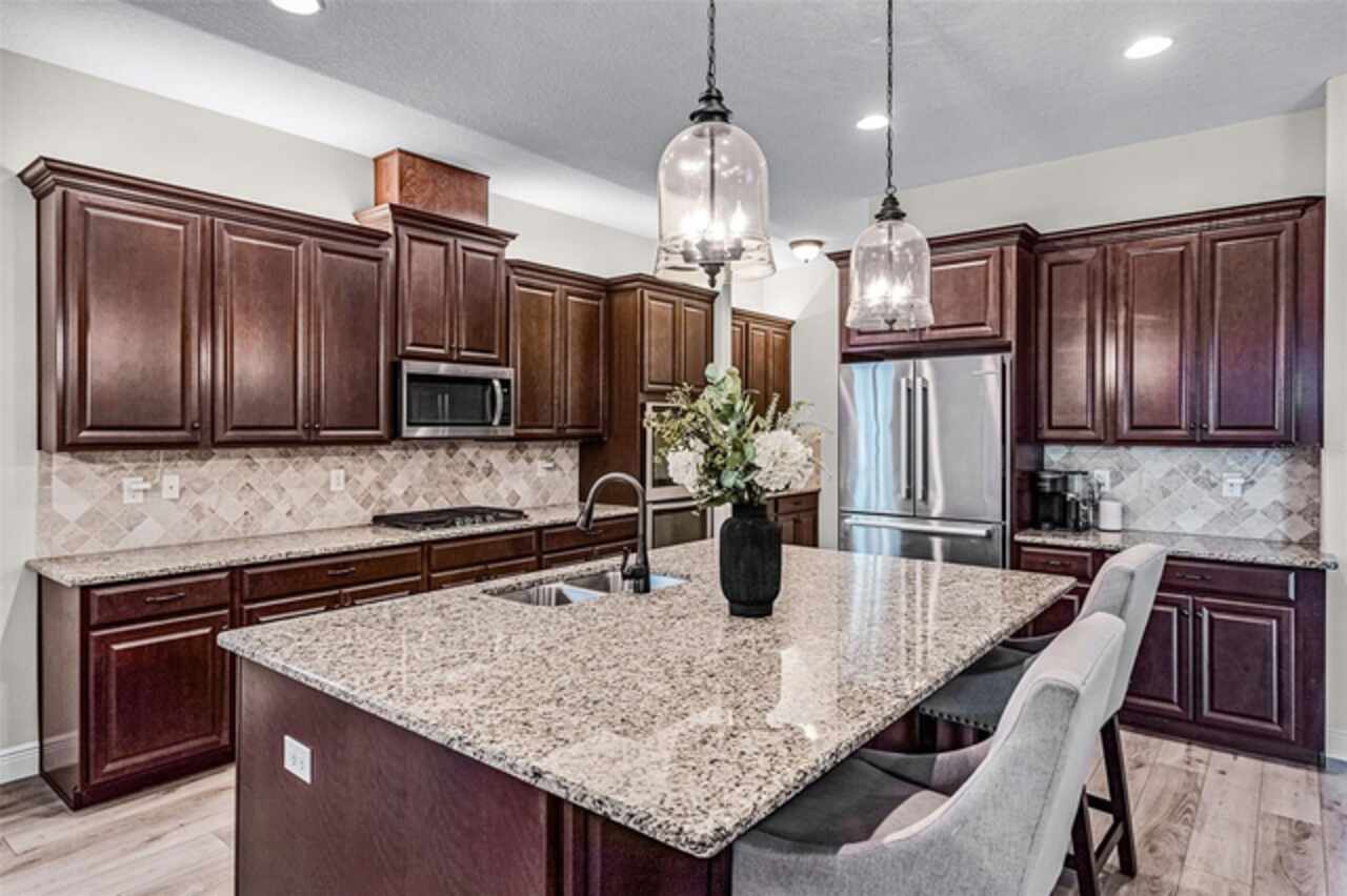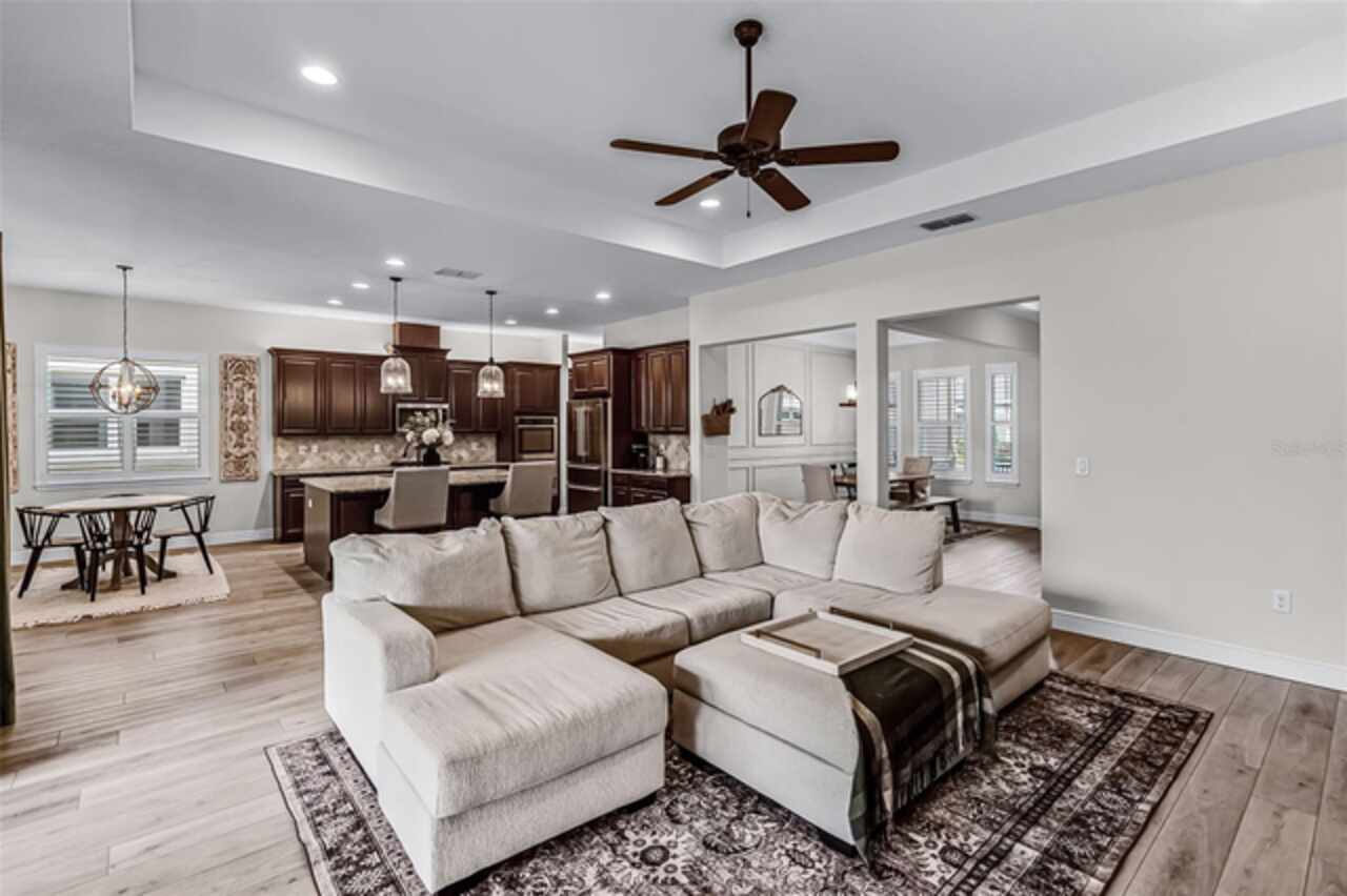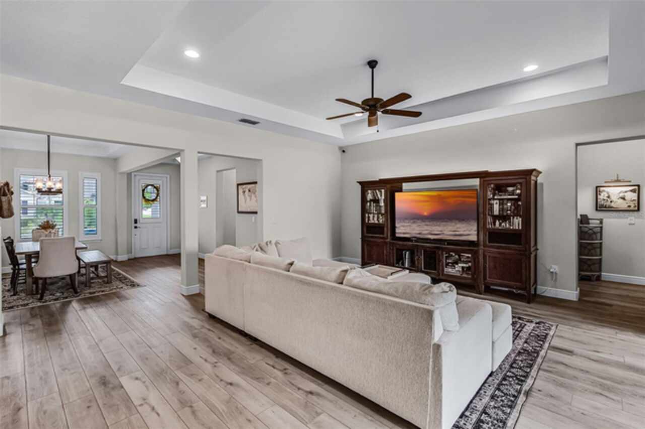 Your Winter Garden dream home awaits! This 4 bedroom, 3 bathroom property offers 2, 600 sq ft of thoughtfully designed living space on a spacious corner lot, blending elegance with everyday comfort. From the moment you arrive, the brick paver driveway, 3-car garage, and inviting covered front patio create a welcoming first impression. Inside, the foyer opens to a formal dining room where tray ceilings, panel molding, and a stunning light fixture set the stage for intimate family dinners or festive holiday gatherings. The heart of the home is the open living room, kitchen, and dinette, where recessed lighting and soaring tray ceilings create a bright, airy atmosphere perfect for both quiet evenings in and lively entertainment with your loved ones. The chef’s kitchen ensures you never miss a moment with your loved ones, as it overlooks the living and dinette areas. With a large island, breakfast bar, crown-molded cabinetry, stainless steel appliances, and expansive counters, this kitchen makes cooking as enjoyable as sharing meals together. Every bedroom is designed as a retreat with ample storage and natural light, while the primary suite elevates daily living with a spacious walk-in closet and a spa-like en suite bath. Start your mornings at the dual vanity or dedicated makeup space for added convenience, and unwind at night in the soaking tub or the separate walk-in shower built for relaxation. The outdoor living is just as exceptional! Step onto the large covered patio for al fresco dining, host summer barbecues, or let little ones and four legged friends play freely in the expansive fenced backyard. Beyond your doorstep, the lifestyle continues with unbeatable convenience. Major highways nearby make commuting simple, while Disney World and Universal Studios are just 25 minutes away for endless adventure. In less than 10 minutes, you can stroll through charming downtown Winter Garden, where boutique shops, weekly farmers markets, live entertainment, and community events bring neighbors together. With excellent schools, thriving local culture, and access to the very best of Central Florida, this home offers not just a place to live, but a lifestyle to be cherished. Don't miss your chance to call this stunning property your new home, schedule a private showing TODAY!!