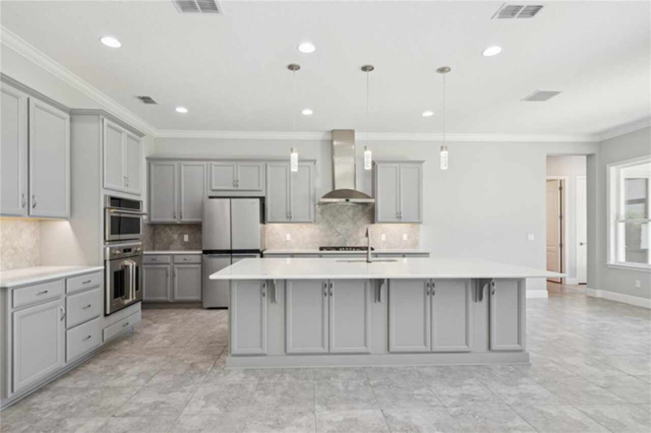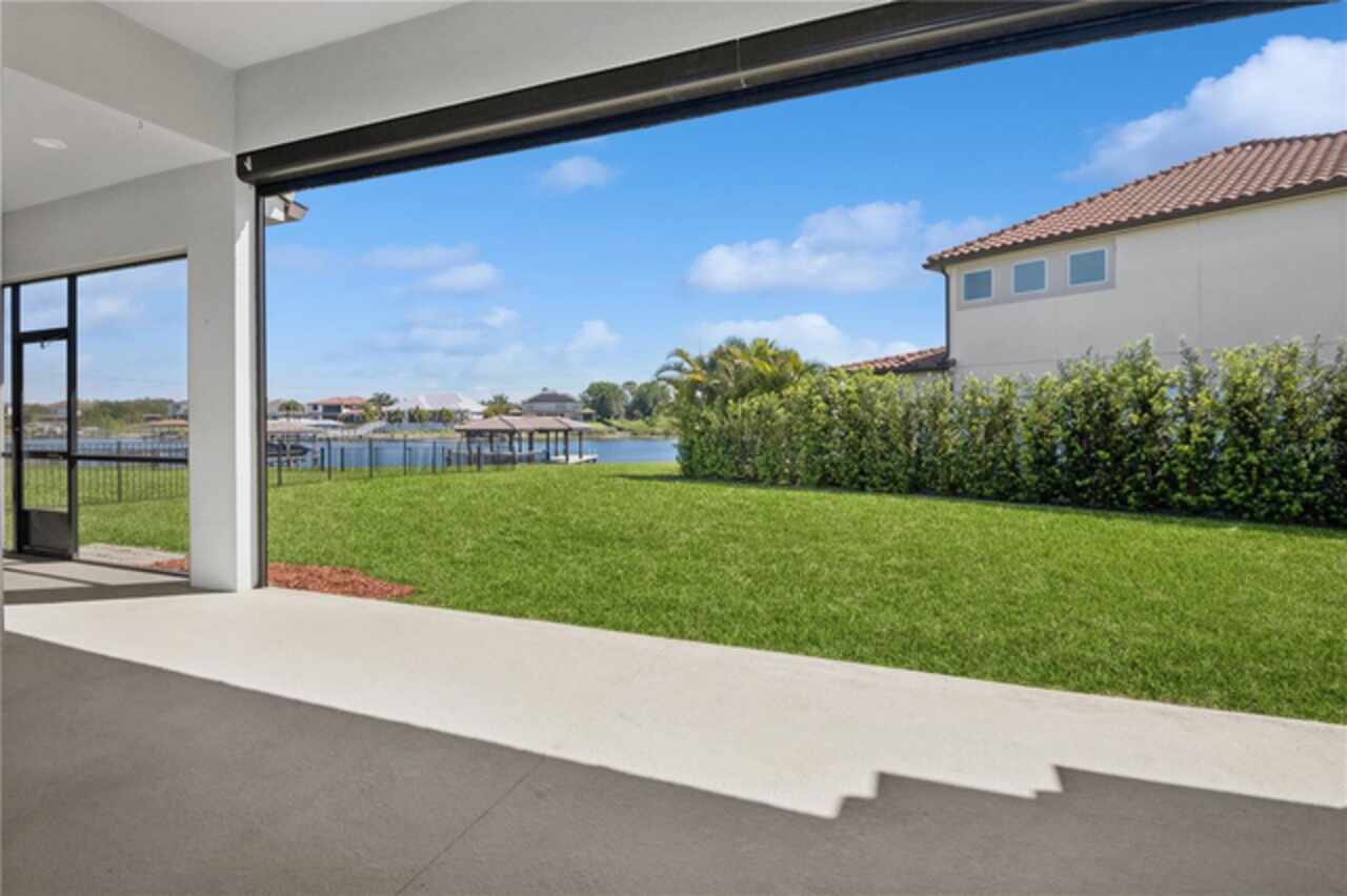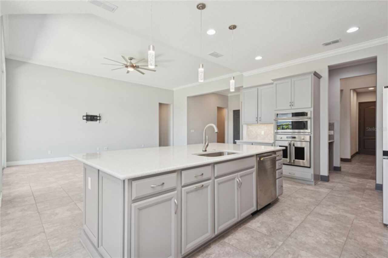 Stunning LAKEFRONT home on Lake Hancock! You'll love this SINGLE LEVEL home that has had only ONE OWNER. The owners paid attention to every detail on this home, from the EXTRA WIDE for comfort, to the DUAL WATER HEATERS in the home which ensure hot water is at the ready for everyone. You'll enter the home through a gorgeous brick pavered enclosed courtyard. Inside you'll find a formal dining area, a massive living area with high ceilings, and a stunning kitchen. When the owners first moved into this home, I took a brief video of this kitchen and it went viral with OVER 24 MILLION views--that's how gorgeous and loved this kitchen in. From QUARTZ counters to the French door oven and convection/microwave, counter depth fridge, and GAS cooktop, and the HUGE ISLAND, you'll fall in love with it too. The rooms are all spacious, and the primary suite was cleverly designed with closet spaces that also privately connect to the laundry room, another detail adding to the comfort of this home. You'll step outside through a triple slider door, onto your screened porch ready for your summer kitchen installation. Here's there's a retractable screen to keep any bugs out while you're enjoying your LAKE FRONTAGE. Would you like to build your own private boat dock? You can build a 12 1/2 ft wide dock and enjoy the lake life. You can fit it easily, since the home has garages for 3 cars. You'll find a double garage and a separate single garage. Just to add to this, you're in a great community with lots of amenities like community pool and clubhouse, community boat ramp, recreational facilities and more. View it today and enjoy the 3D interactive walkthrough online.