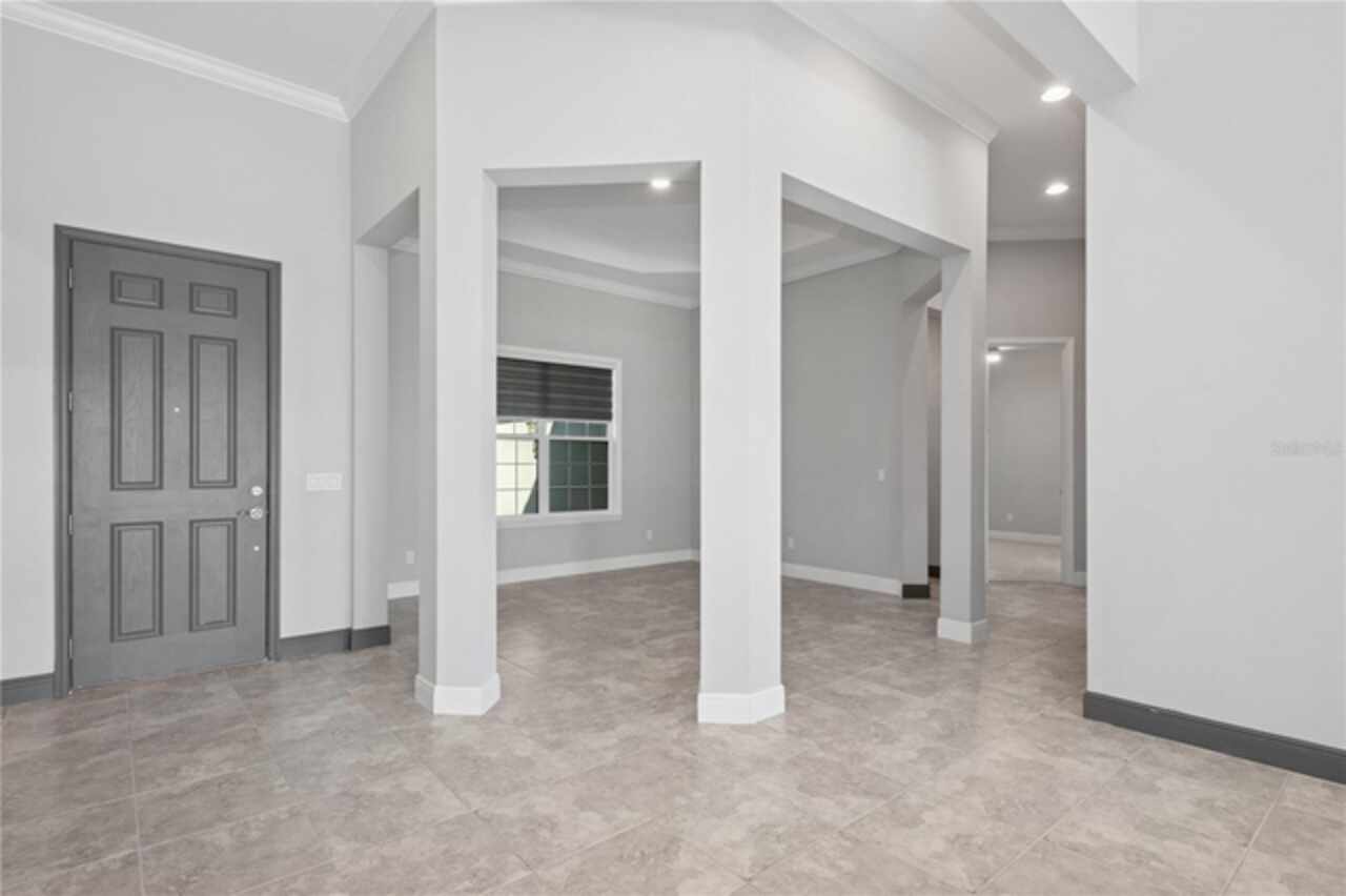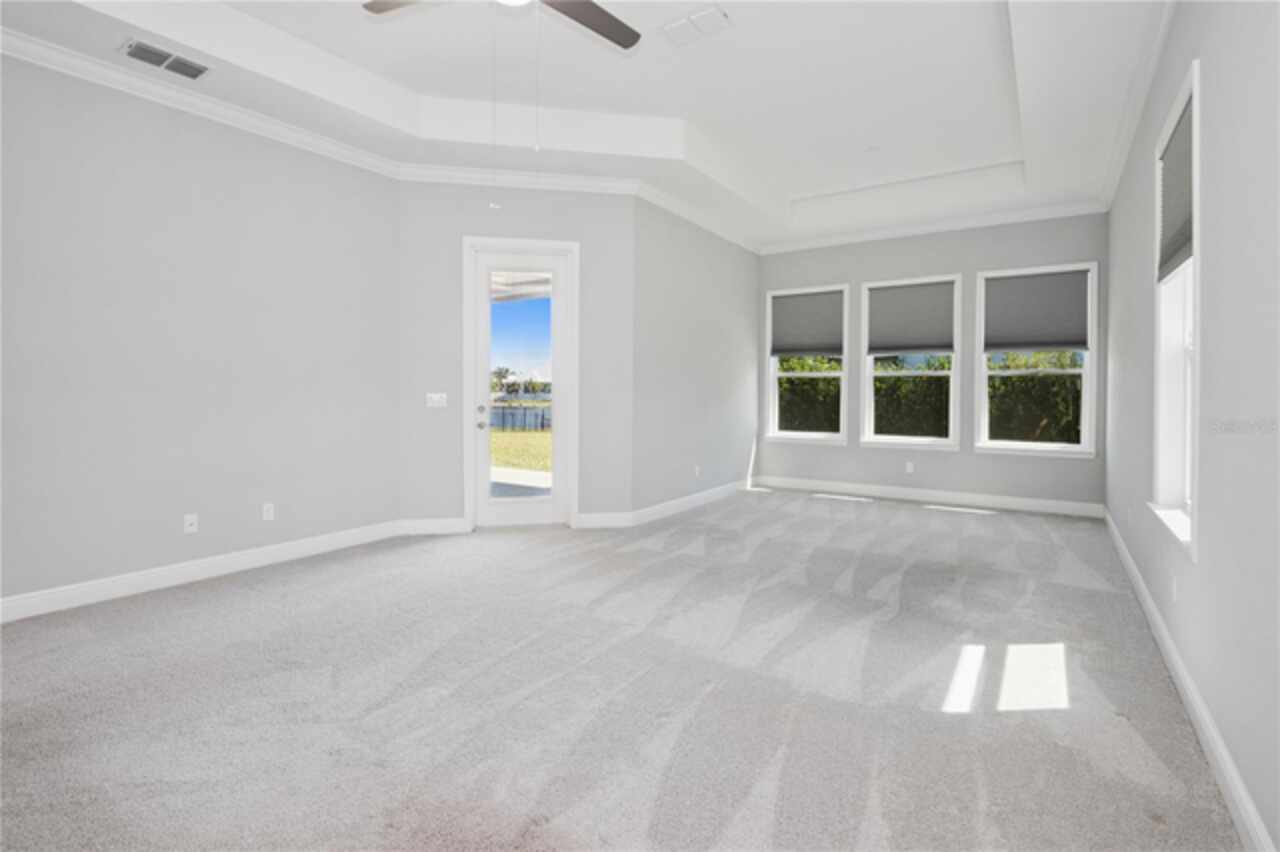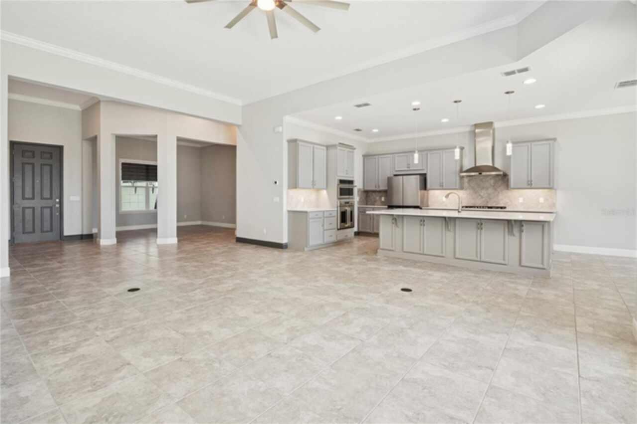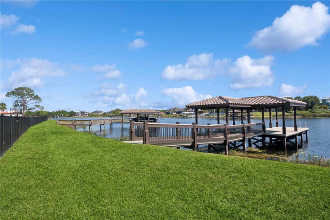 Stunning LAKEFRONT home on Lake Hancock! You'll love this SINGLE LEVEL home that has had only ONE OWNER. The owners paid attention to every detail on this home, from the EXTRA WIDE for comfort, to the DUAL WATER HEATERS in the home which ensure hot water is at the ready for everyone. You'll enter the home through a gorgeous brick pavered enclosed courtyard. Inside you'll find a formal dining area, a massive living area with high ceilings, and a stunning kitchen. When the owners first moved into this home, I took a brief video of this kitchen and it went viral with OVER 24 MILLION views--that's how gorgeous and loved this kitchen in. From QUARTZ counters to the French door oven and convection/microwave, counter depth fridge, and GAS cooktop, and the HUGE ISLAND, you'll fall in love with it too. The rooms are all spacious, and the primary suite was cleverly designed with closet spaces that also privately connect to the laundry room, another detail adding to the comfort of this home. You'll step outside through a triple slider door, onto your screened porch ready for your summer kitchen installation. Here's there's a retractable screen to keep any bugs out while you're enjoying your LAKE FRONTAGE. Would you like to build your own private boat dock? You can build a 12 1/2 ft wide dock and enjoy the lake life. You can fit it easily, since the home has garages for 3 cars. You'll find a double garage and a separate single garage. Just to add to this, you're in a great community with lots of amenities like community pool and clubhouse, community boat ramp, recreational facilities and more. View it today and enjoy the 3D interactive walkthrough online.