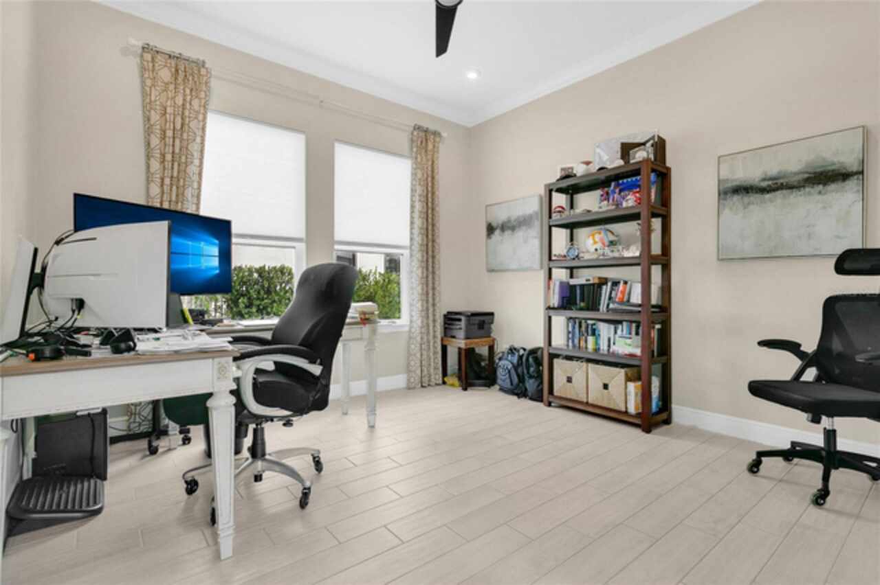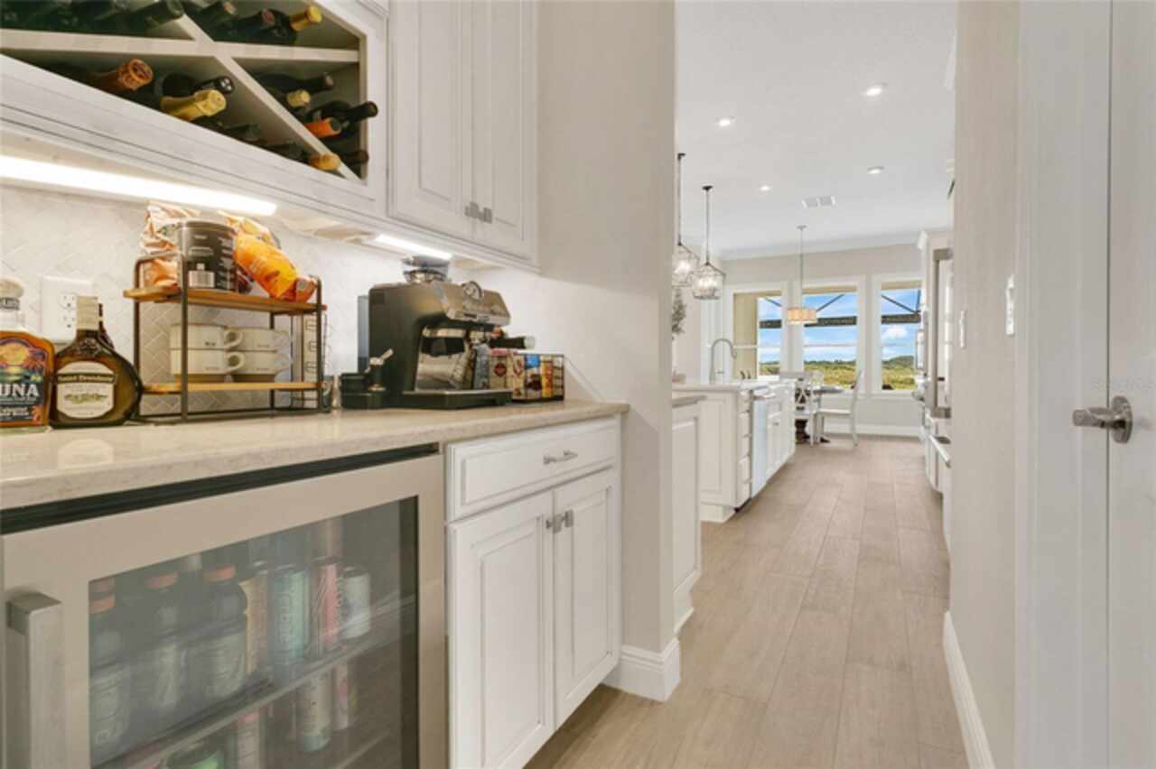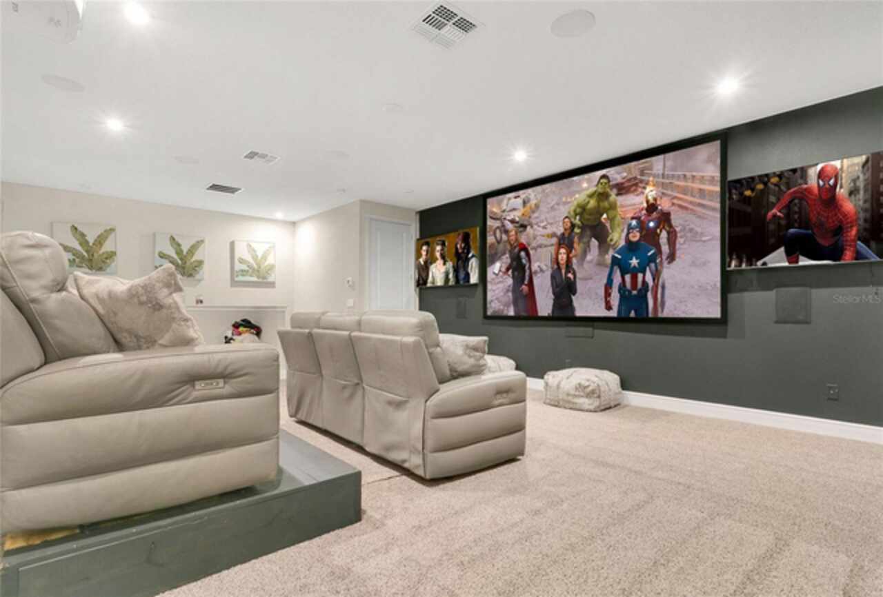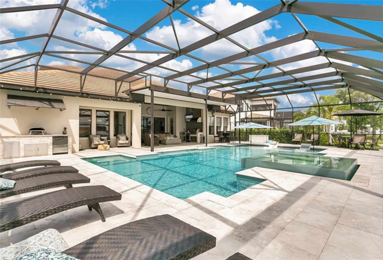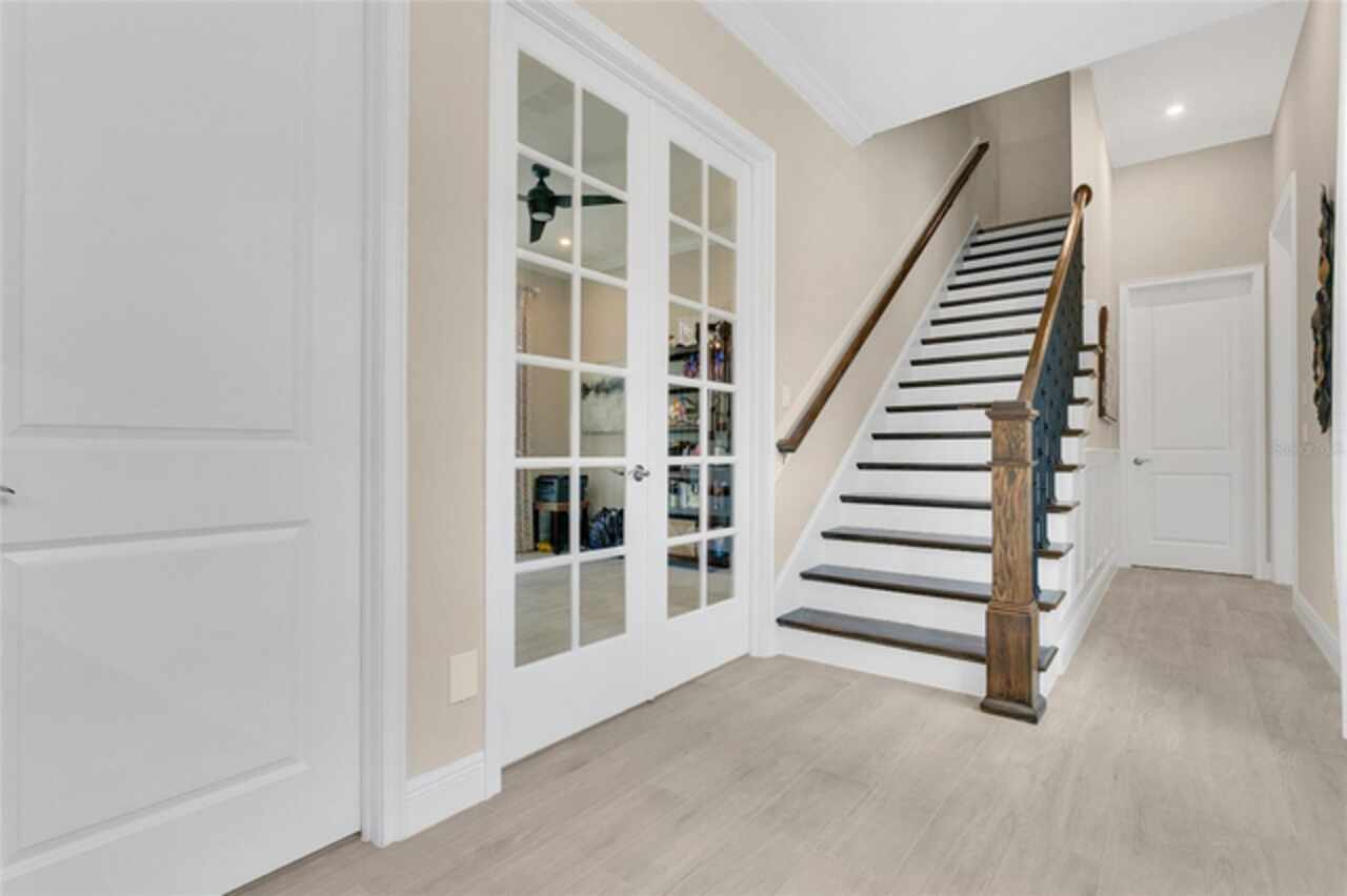 Under contract-accepting backup offers. This home truly has it all. Nestled in The Overlook at Hamlin—one of the most vibrant and sought-after lakefront communities—this custom Taylor Morrison residence combines luxury, energy efficiency, and everyday convenience. Ideally located just minutes from Disney with easy access to Hwy 429, the home offers both lifestyle and location. Set on the scenic shores of Lake Hancock with nightly Disney Firework Displays, the thoughtfully designed floor plan features all main living spaces on the first floor, plus an upstairs media room or optional fifth bedroom with private bath. The primary suite is a tranquil retreat with stunning lake views and a spa-inspired bath. High ceilings with crown molding and wood beams, abundant natural light, and a stacked stone fireplace create a warm, inviting atmosphere. Gorgeous tile floors flow throughout. The chef’s kitchen impresses with a natural gas cooktop, quartz island, French door oven, and walk-in butler’s pantry. Step outside to your private lakefront oasis—a screened lanai with resort-style saltwater pool and spa, sun shelf with umbrellas, and a summer kitchen plus pizza oven station, perfect for entertaining. Just beyond, a floating dock offers direct lake access. Enjoy low utility costs thanks to a fully paid-off whole-house solar system and a tankless gas water heater—average electric bills are just $78/month. Additional features include a gated front courtyard for added privacy and security, and access to Overlook’s resort-style amenities, including a fitness center, community pool and splash pad, parks, and a private boat ramp for residents. Furnishings may be available.