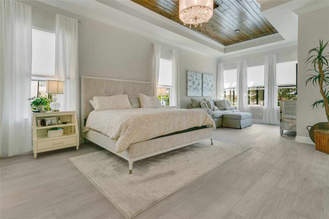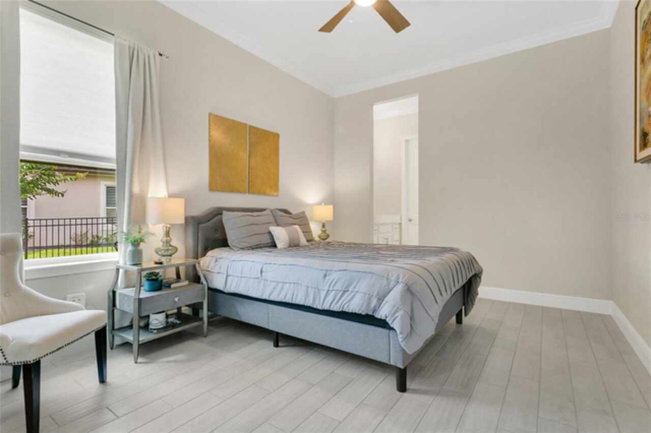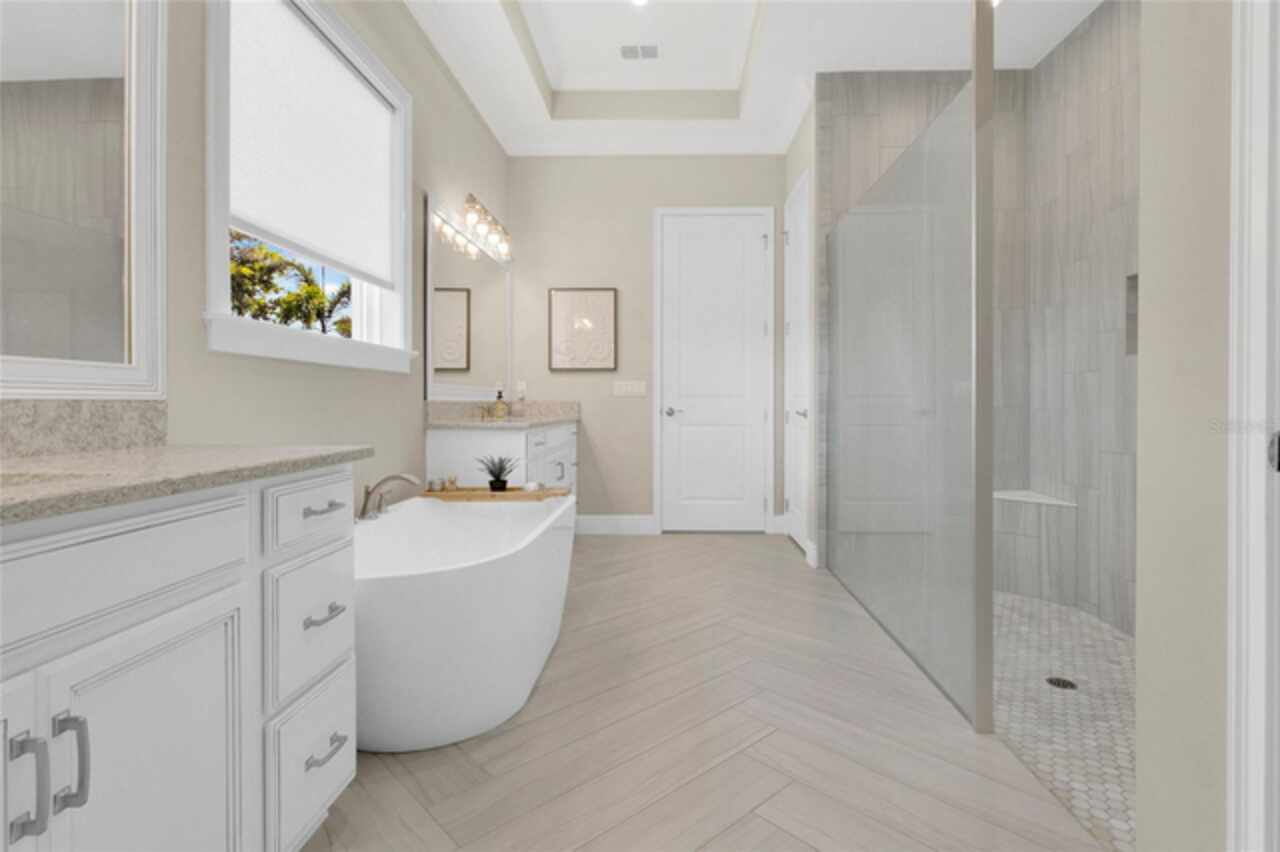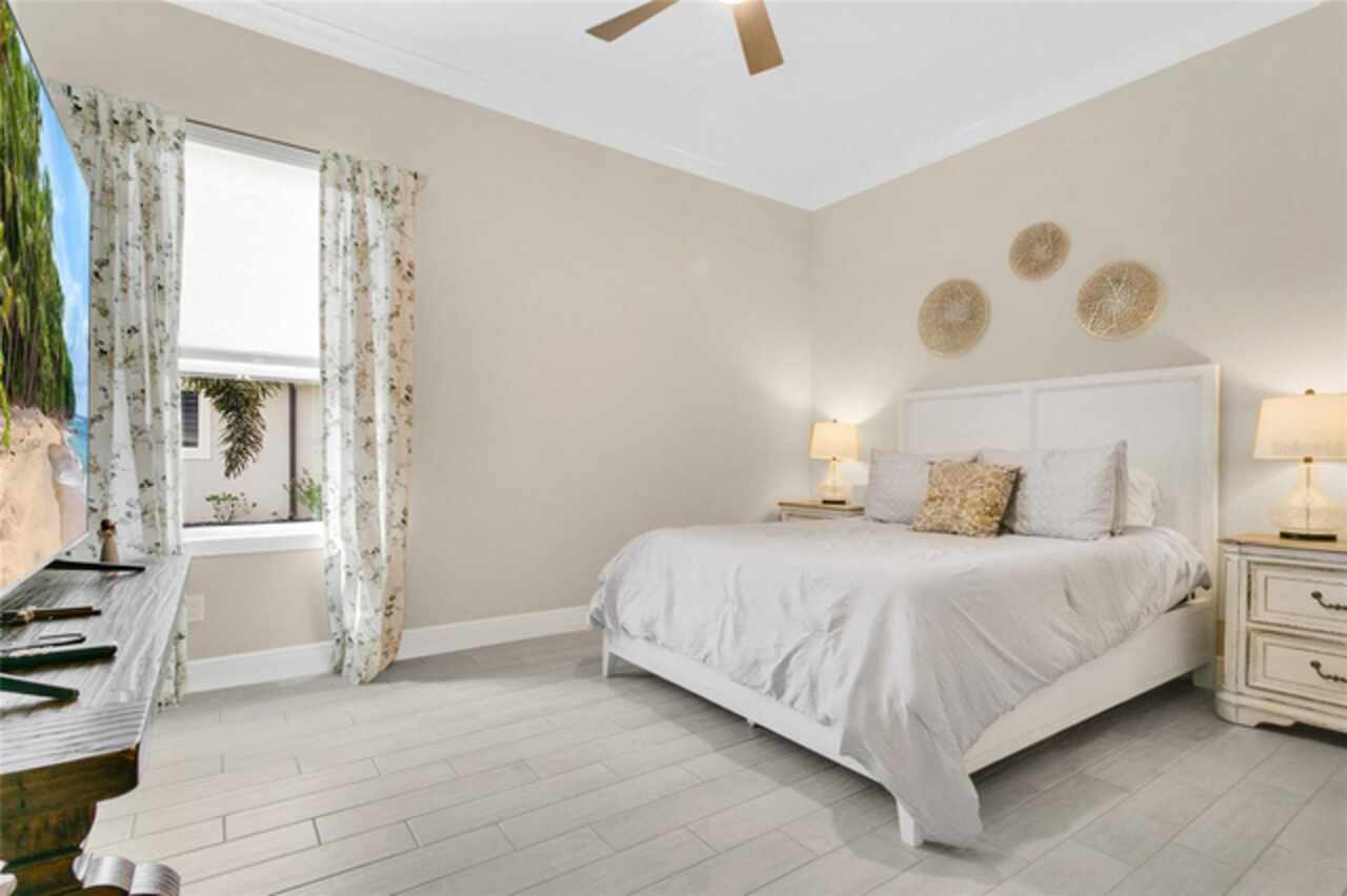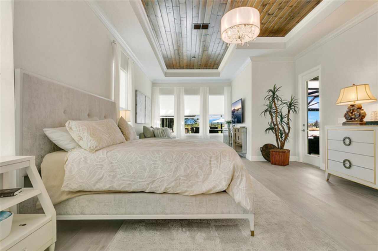 Under contract-accepting backup offers. This home truly has it all. Nestled in The Overlook at Hamlin—one of the most vibrant and sought-after lakefront communities—this custom Taylor Morrison residence combines luxury, energy efficiency, and everyday convenience. Ideally located just minutes from Disney with easy access to Hwy 429, the home offers both lifestyle and location. Set on the scenic shores of Lake Hancock with nightly Disney Firework Displays, the thoughtfully designed floor plan features all main living spaces on the first floor, plus an upstairs media room or optional fifth bedroom with private bath. The primary suite is a tranquil retreat with stunning lake views and a spa-inspired bath. High ceilings with crown molding and wood beams, abundant natural light, and a stacked stone fireplace create a warm, inviting atmosphere. Gorgeous tile floors flow throughout. The chef’s kitchen impresses with a natural gas cooktop, quartz island, French door oven, and walk-in butler’s pantry. Step outside to your private lakefront oasis—a screened lanai with resort-style saltwater pool and spa, sun shelf with umbrellas, and a summer kitchen plus pizza oven station, perfect for entertaining. Just beyond, a floating dock offers direct lake access. Enjoy low utility costs thanks to a fully paid-off whole-house solar system and a tankless gas water heater—average electric bills are just $78/month. Additional features include a gated front courtyard for added privacy and security, and access to Overlook’s resort-style amenities, including a fitness center, community pool and splash pad, parks, and a private boat ramp for residents. Furnishings may be available.