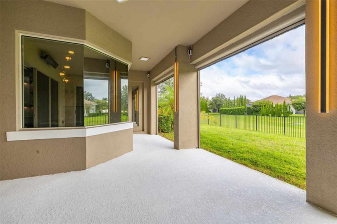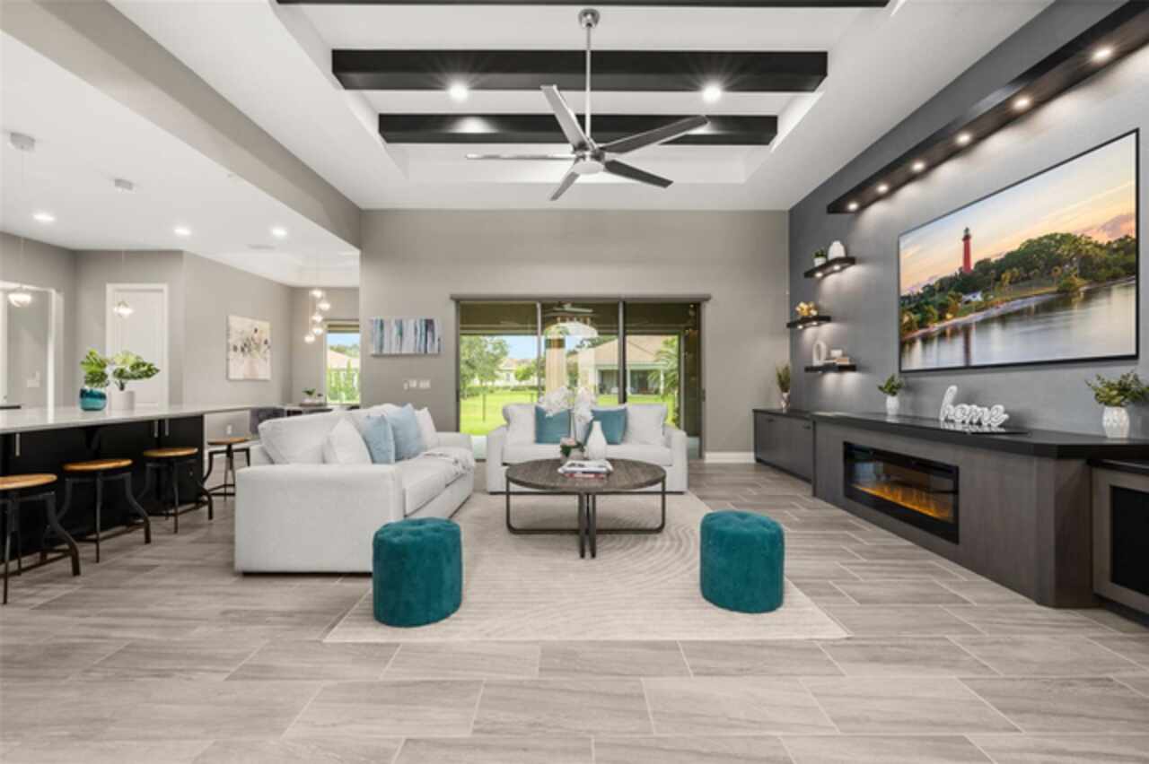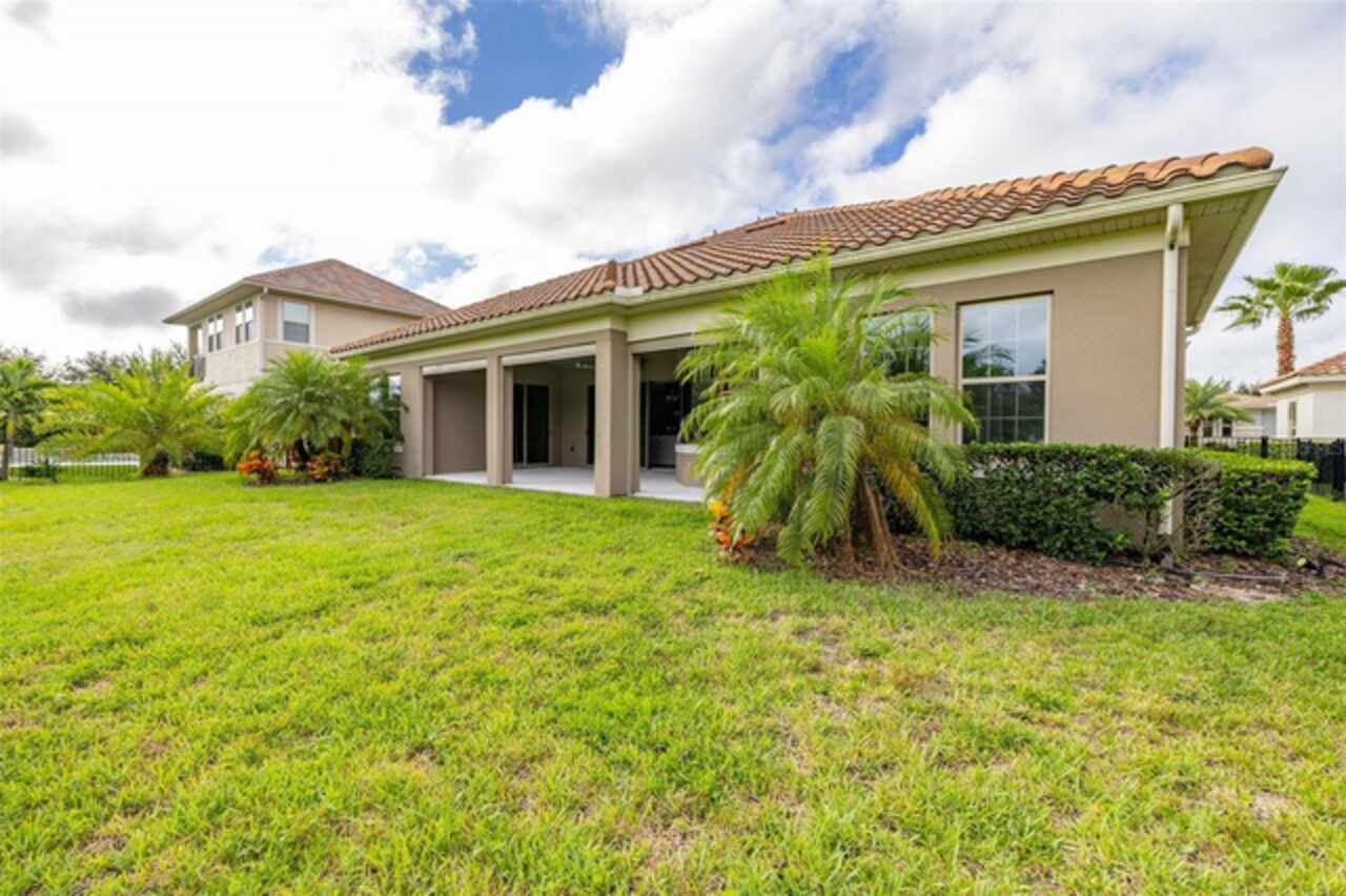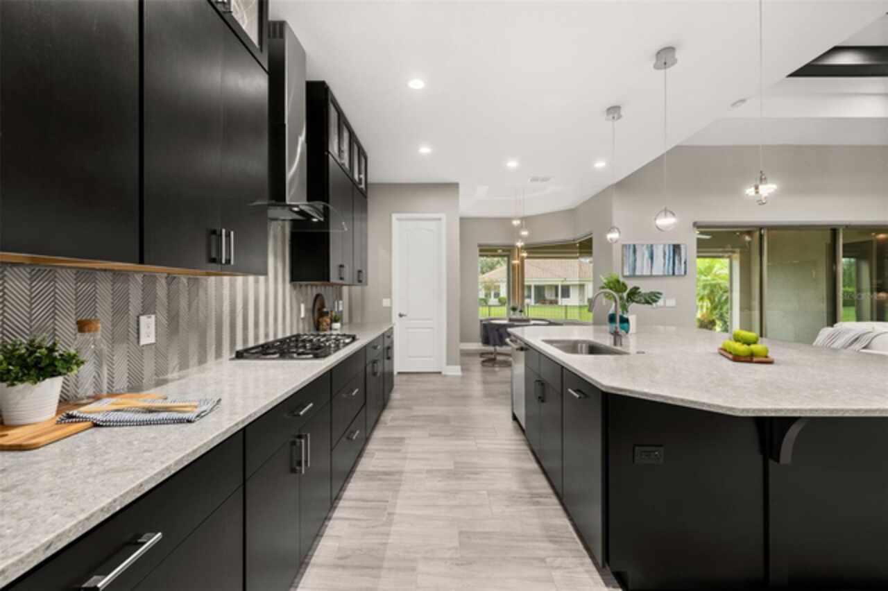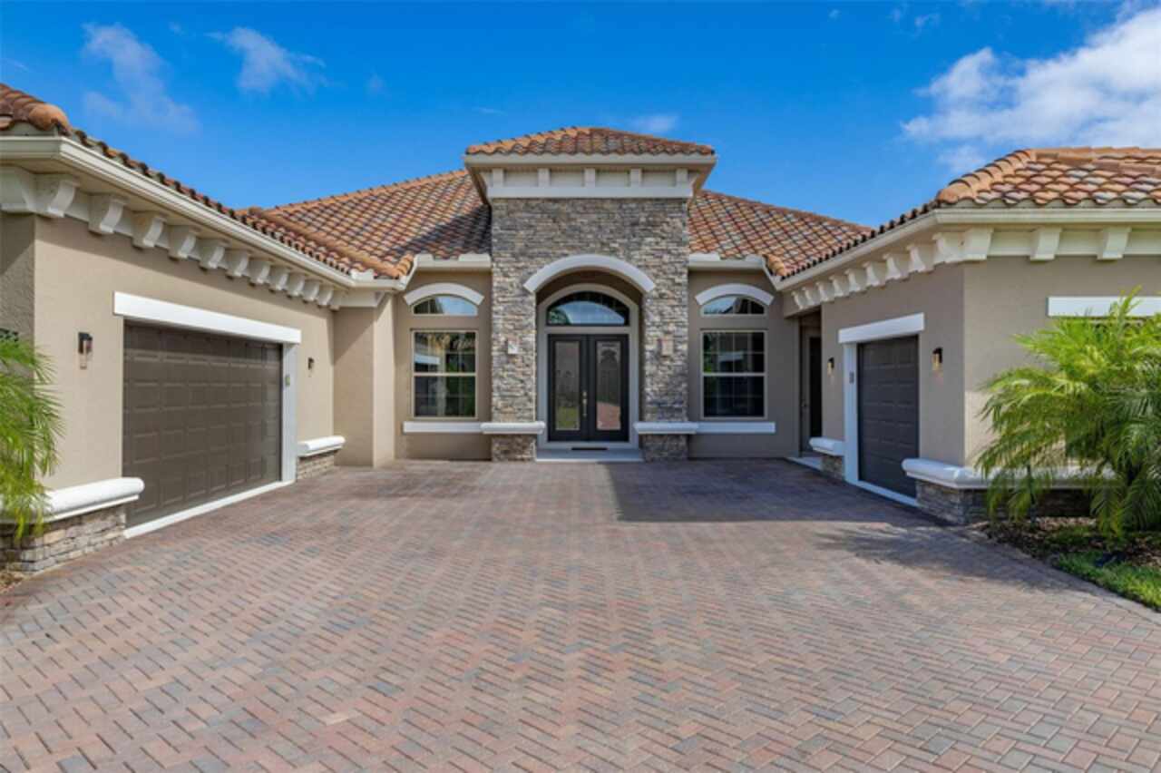 Under contract-accepting backup offers. Welcome to a truly exquisite single-story residence in the coveted and exclusive gated waterfront community of the Isles of Lake Hancock. Step inside to an opulent foyer that opens into a grand, light-filled living space with 14-foot double tray ceilings, engineered hardwood and luxury tile flooring, and expansive windows fitted with remote-controlled blinds. The open layout flows seamlessly through the formal dining room, dedicated office, and spacious living area. The chef’s kitchen is a standout centerpiece, thoughtfully designed with custom cabinetry, premium Monogram stainless steel appliances and an oversized pantry for additional storage. The private primary suite is positioned away from the secondary bedrooms and offers a peaceful retreat with an oversized spa-style bath, a luxurious walk-in shower, and a custom-designed closet. An extended den acts as the perfect reading nook or morning lounge, leading directly to your covered lanai and fenced backyard. Entertain in style with a high-end electric screen enclosure, outdoor heating unit, and custom entertainment cabinetry. The property also features dual garages—a two-car and a single-car—finished with sleek smoke grey epoxy flooring, providing flexible space for parking, a home gym, or elevated storage. The garage is equally impressive, showcasing smoke grey epoxy flooring, car lift capability, and a dedicated space prepped for an in-home golf simulator—perfect for golf enthusiasts. Beyond the home, residents enjoy direct access to two man-made lakes in a nationally recognized water-skiing community, known for hosting world-class tournaments annually. The location also offers close proximity to Walt Disney World, upscale golf courses, premier shopping and dining, and features a community playground, making it ideal for both recreation and family-friendly living. This artistically curated home is more than just a residence, it’s a statement in luxury, design, and lifestyle. Don’t miss your opportunity to own a rare gem in the exclusive community of the Isles of Lake Hancock.