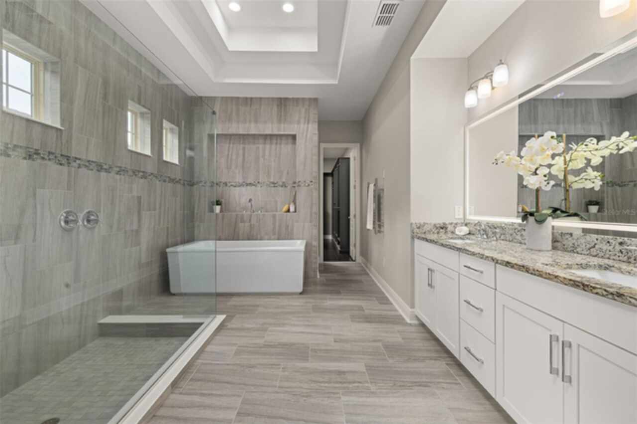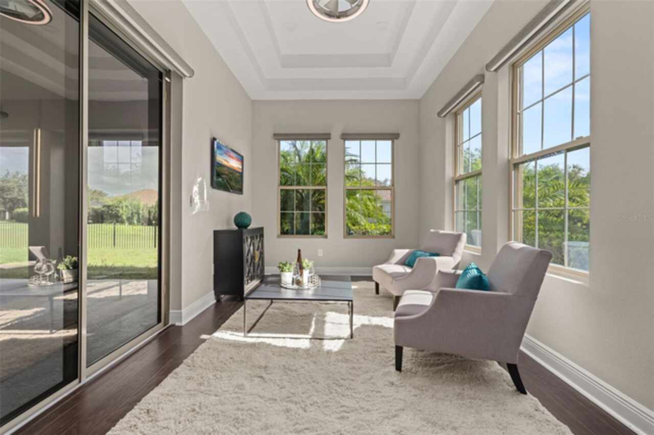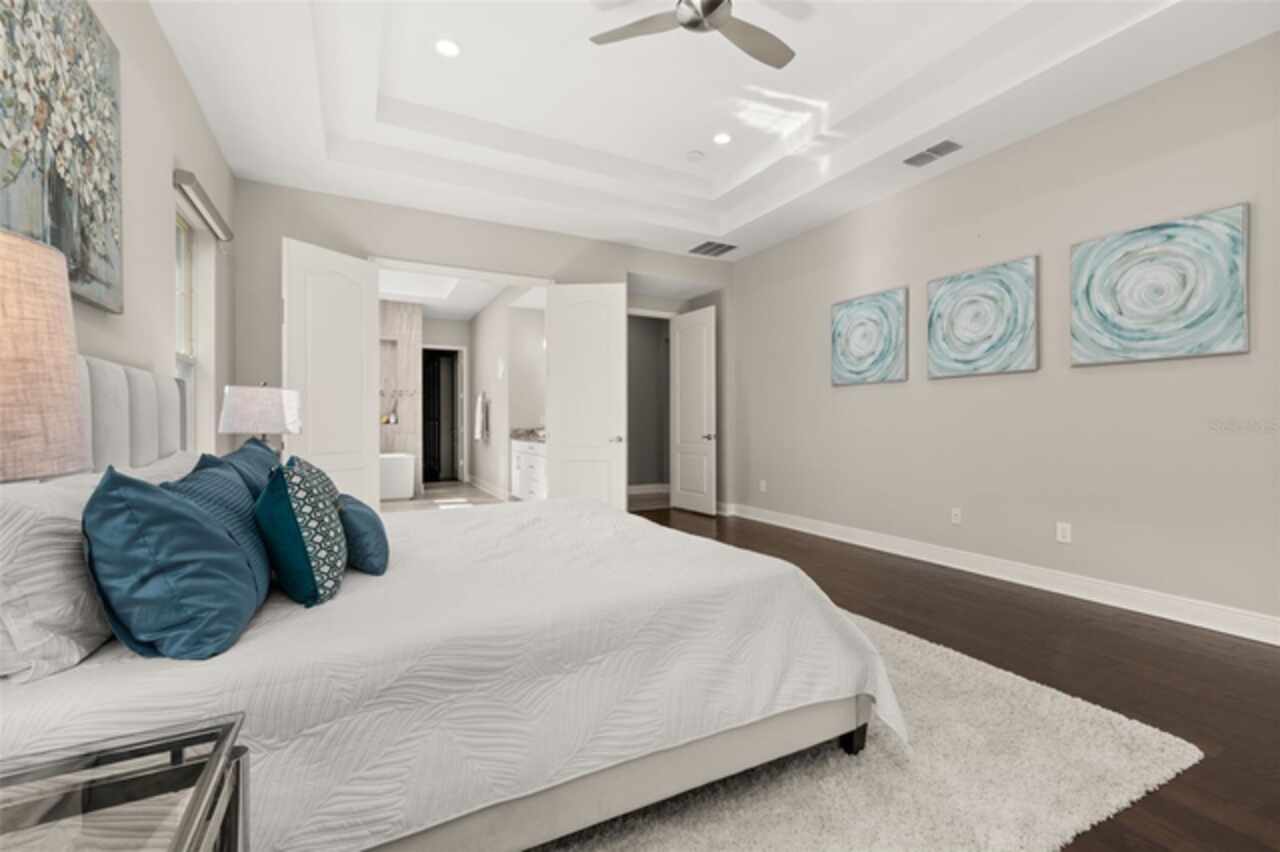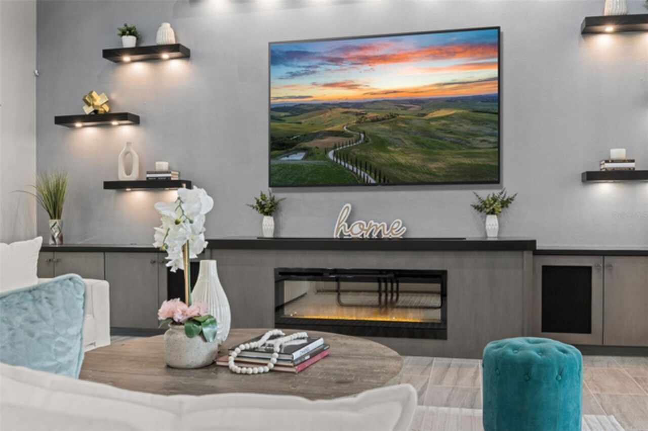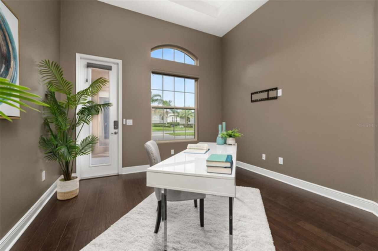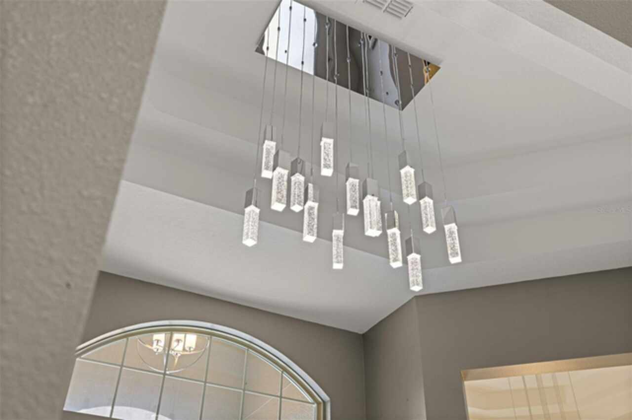 Under contract-accepting backup offers. Welcome to a truly exquisite single-story residence in the coveted and exclusive gated waterfront community of the Isles of Lake Hancock. Step inside to an opulent foyer that opens into a grand, light-filled living space with 14-foot double tray ceilings, engineered hardwood and luxury tile flooring, and expansive windows fitted with remote-controlled blinds. The open layout flows seamlessly through the formal dining room, dedicated office, and spacious living area. The chef’s kitchen is a standout centerpiece, thoughtfully designed with custom cabinetry, premium Monogram stainless steel appliances and an oversized pantry for additional storage. The private primary suite is positioned away from the secondary bedrooms and offers a peaceful retreat with an oversized spa-style bath, a luxurious walk-in shower, and a custom-designed closet. An extended den acts as the perfect reading nook or morning lounge, leading directly to your covered lanai and fenced backyard. Entertain in style with a high-end electric screen enclosure, outdoor heating unit, and custom entertainment cabinetry. The property also features dual garages—a two-car and a single-car—finished with sleek smoke grey epoxy flooring, providing flexible space for parking, a home gym, or elevated storage. The garage is equally impressive, showcasing smoke grey epoxy flooring, car lift capability, and a dedicated space prepped for an in-home golf simulator—perfect for golf enthusiasts. Beyond the home, residents enjoy direct access to two man-made lakes in a nationally recognized water-skiing community, known for hosting world-class tournaments annually. The location also offers close proximity to Walt Disney World, upscale golf courses, premier shopping and dining, and features a community playground, making it ideal for both recreation and family-friendly living. This artistically curated home is more than just a residence, it’s a statement in luxury, design, and lifestyle. Don’t miss your opportunity to own a rare gem in the exclusive community of the Isles of Lake Hancock.