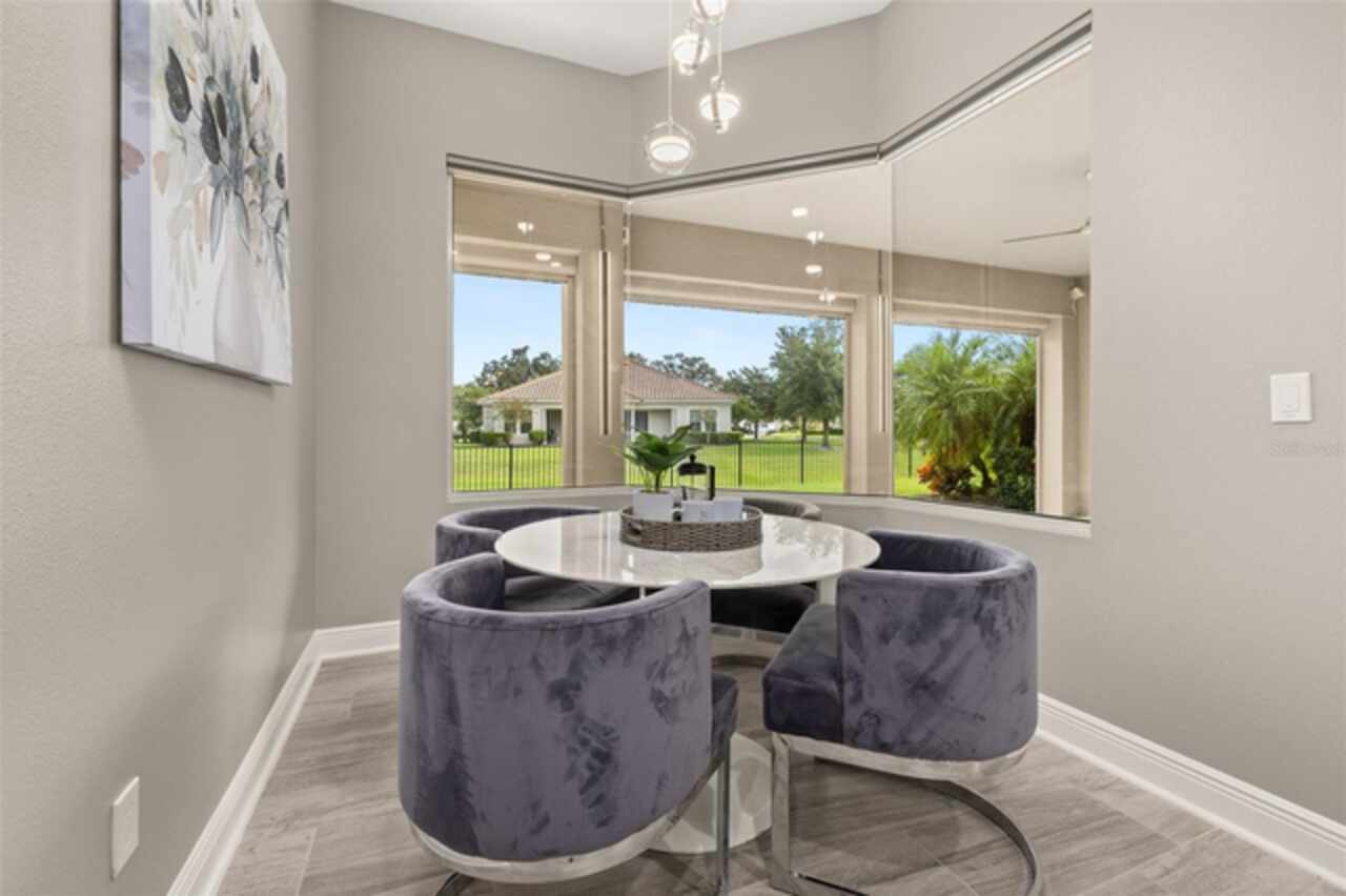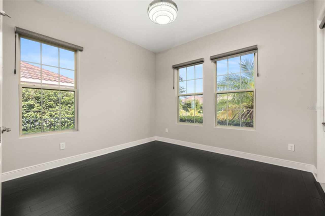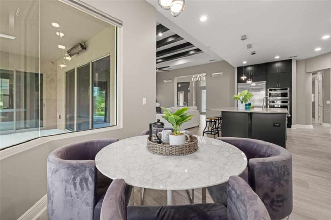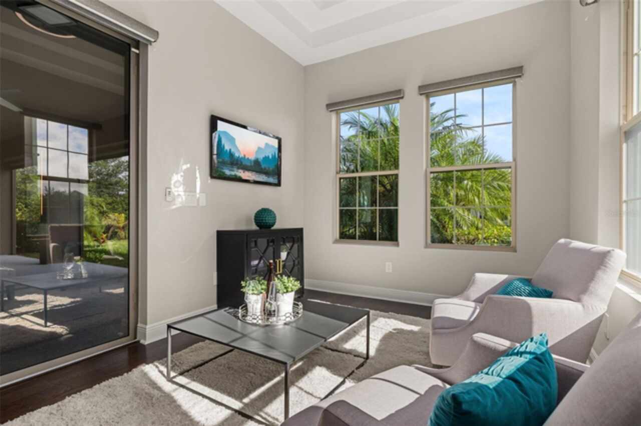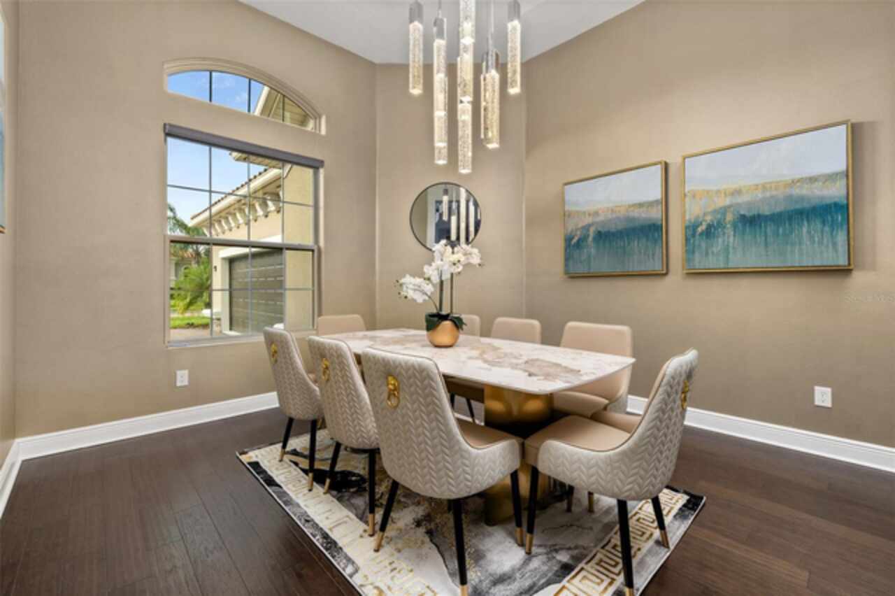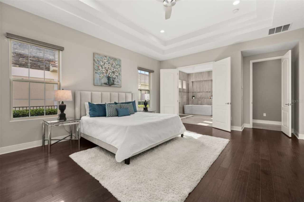 Under contract-accepting backup offers. Welcome to a truly exquisite single-story residence in the coveted and exclusive gated waterfront community of the Isles of Lake Hancock. Step inside to an opulent foyer that opens into a grand, light-filled living space with 14-foot double tray ceilings, engineered hardwood and luxury tile flooring, and expansive windows fitted with remote-controlled blinds. The open layout flows seamlessly through the formal dining room, dedicated office, and spacious living area. The chef’s kitchen is a standout centerpiece, thoughtfully designed with custom cabinetry, premium Monogram stainless steel appliances and an oversized pantry for additional storage. The private primary suite is positioned away from the secondary bedrooms and offers a peaceful retreat with an oversized spa-style bath, a luxurious walk-in shower, and a custom-designed closet. An extended den acts as the perfect reading nook or morning lounge, leading directly to your covered lanai and fenced backyard. Entertain in style with a high-end electric screen enclosure, outdoor heating unit, and custom entertainment cabinetry. The property also features dual garages—a two-car and a single-car—finished with sleek smoke grey epoxy flooring, providing flexible space for parking, a home gym, or elevated storage. The garage is equally impressive, showcasing smoke grey epoxy flooring, car lift capability, and a dedicated space prepped for an in-home golf simulator—perfect for golf enthusiasts. Beyond the home, residents enjoy direct access to two man-made lakes in a nationally recognized water-skiing community, known for hosting world-class tournaments annually. The location also offers close proximity to Walt Disney World, upscale golf courses, premier shopping and dining, and features a community playground, making it ideal for both recreation and family-friendly living. This artistically curated home is more than just a residence, it’s a statement in luxury, design, and lifestyle. Don’t miss your opportunity to own a rare gem in the exclusive community of the Isles of Lake Hancock.