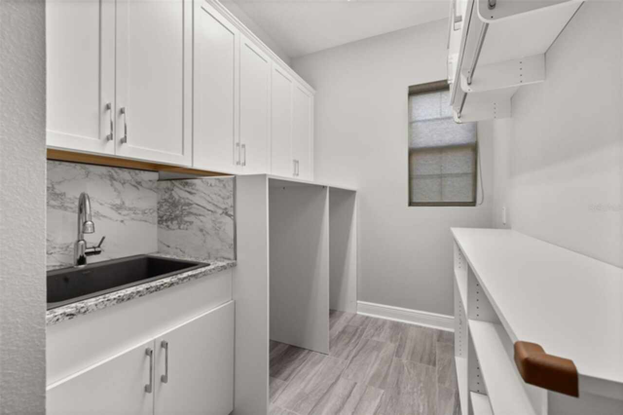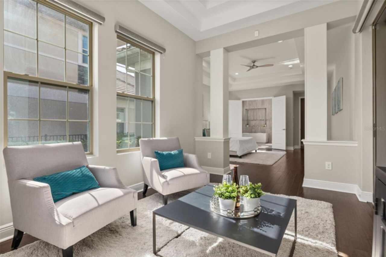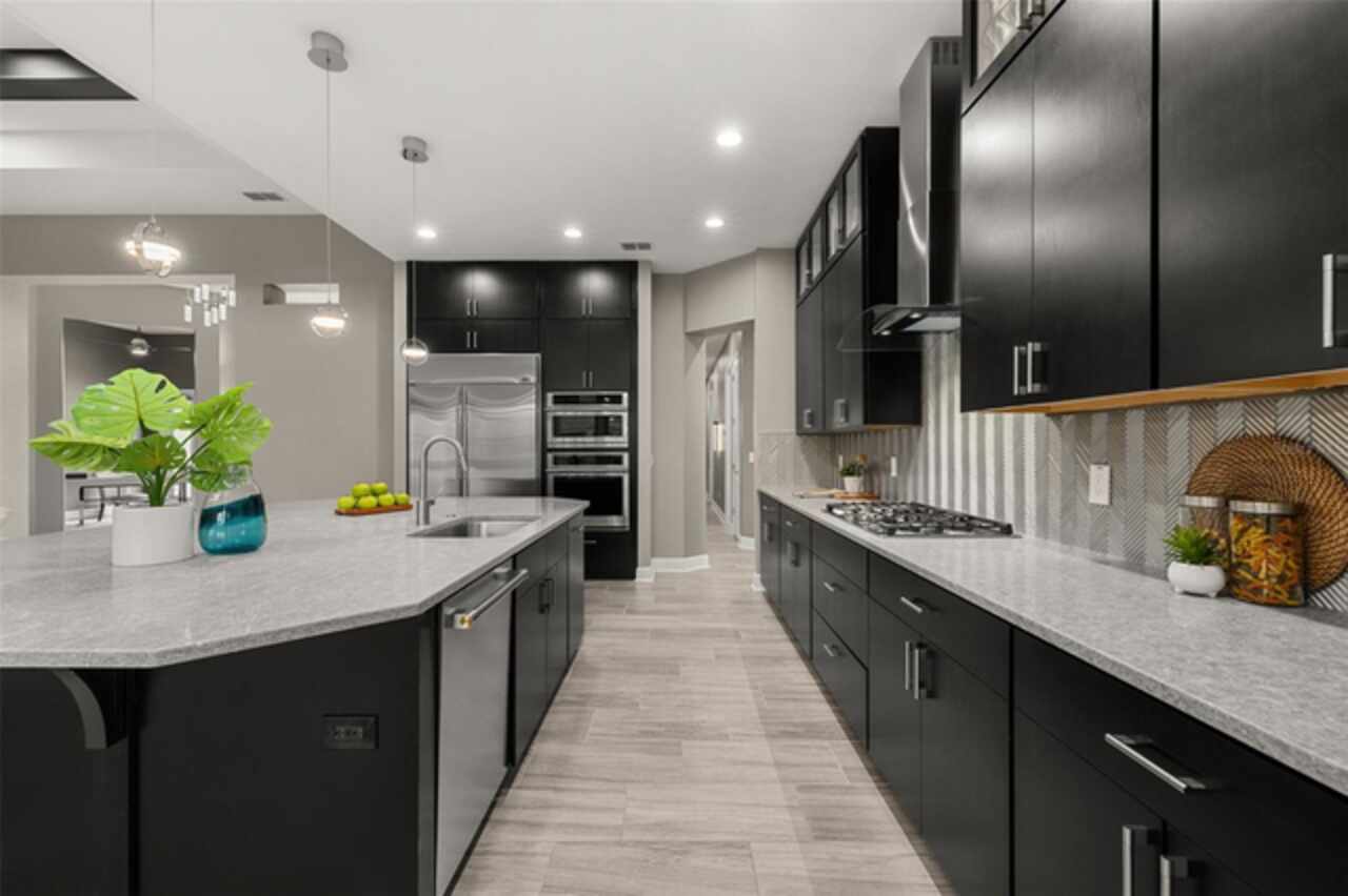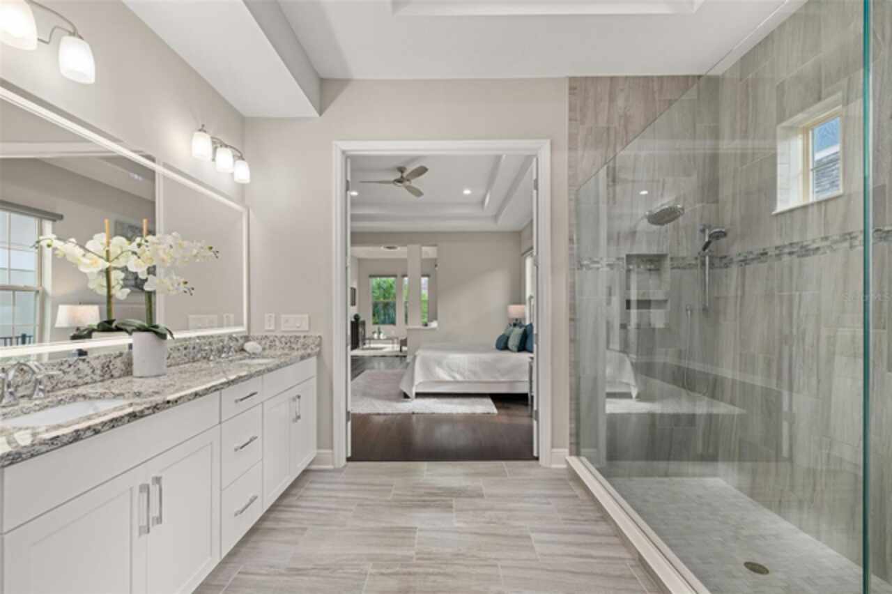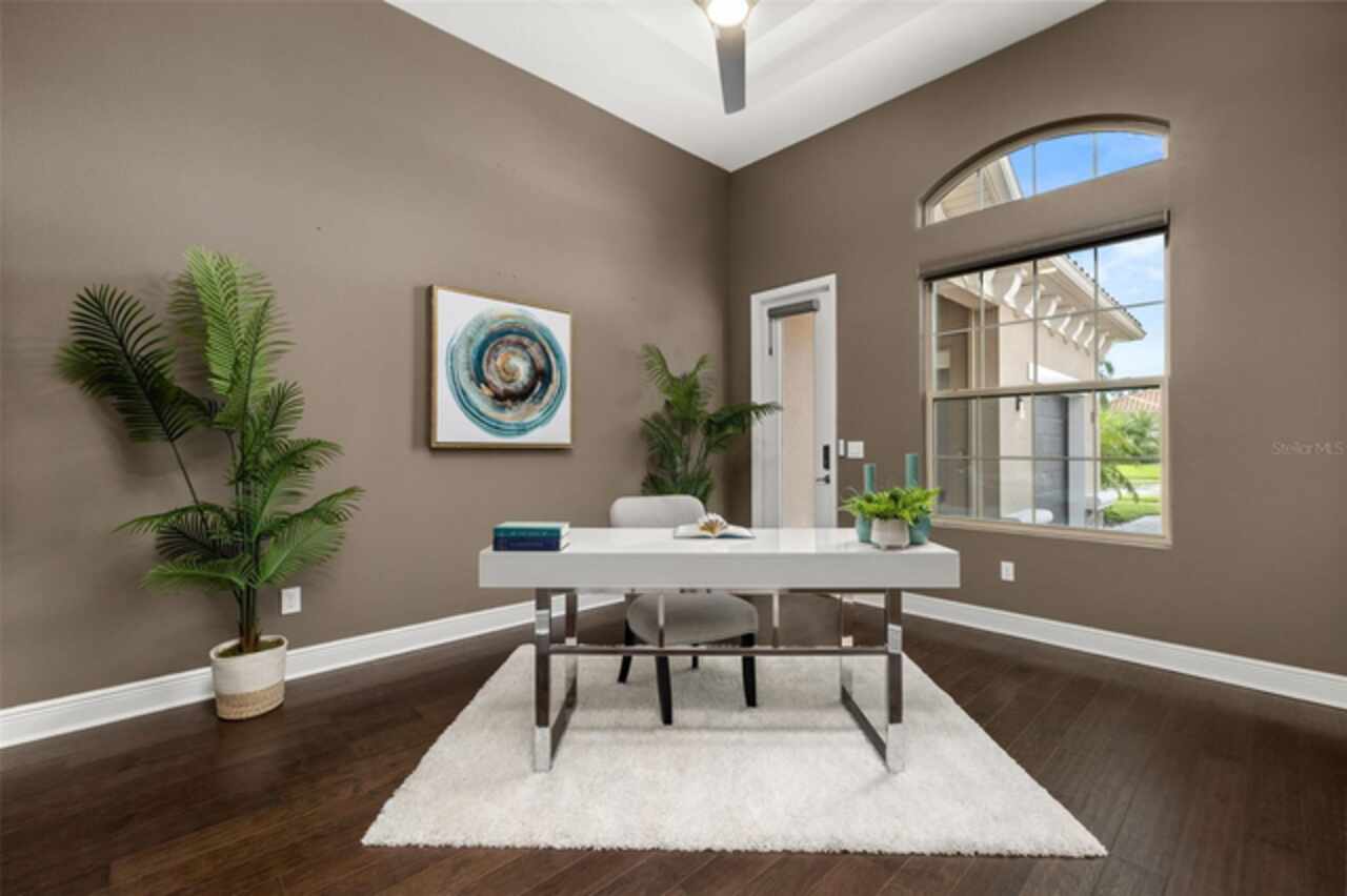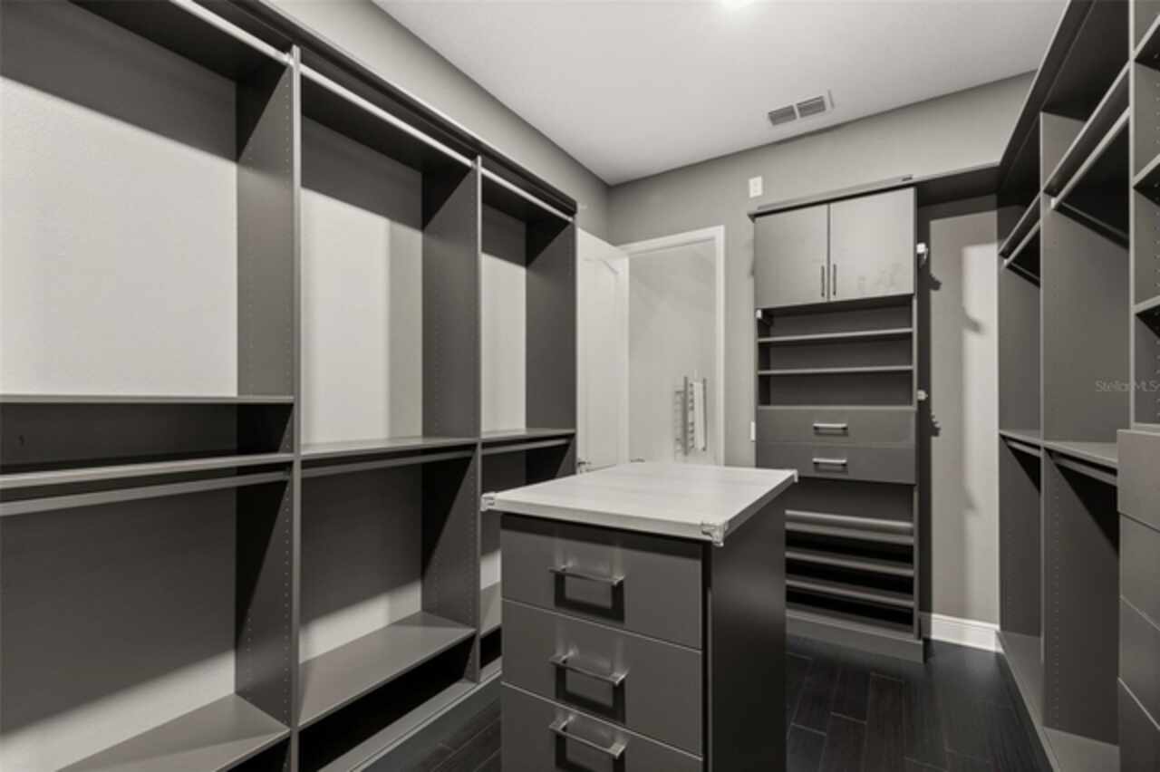 Under contract-accepting backup offers. Welcome to a truly exquisite single-story residence in the coveted and exclusive gated waterfront community of the Isles of Lake Hancock. Step inside to an opulent foyer that opens into a grand, light-filled living space with 14-foot double tray ceilings, engineered hardwood and luxury tile flooring, and expansive windows fitted with remote-controlled blinds. The open layout flows seamlessly through the formal dining room, dedicated office, and spacious living area. The chef’s kitchen is a standout centerpiece, thoughtfully designed with custom cabinetry, premium Monogram stainless steel appliances and an oversized pantry for additional storage. The private primary suite is positioned away from the secondary bedrooms and offers a peaceful retreat with an oversized spa-style bath, a luxurious walk-in shower, and a custom-designed closet. An extended den acts as the perfect reading nook or morning lounge, leading directly to your covered lanai and fenced backyard. Entertain in style with a high-end electric screen enclosure, outdoor heating unit, and custom entertainment cabinetry. The property also features dual garages—a two-car and a single-car—finished with sleek smoke grey epoxy flooring, providing flexible space for parking, a home gym, or elevated storage. The garage is equally impressive, showcasing smoke grey epoxy flooring, car lift capability, and a dedicated space prepped for an in-home golf simulator—perfect for golf enthusiasts. Beyond the home, residents enjoy direct access to two man-made lakes in a nationally recognized water-skiing community, known for hosting world-class tournaments annually. The location also offers close proximity to Walt Disney World, upscale golf courses, premier shopping and dining, and features a community playground, making it ideal for both recreation and family-friendly living. This artistically curated home is more than just a residence, it’s a statement in luxury, design, and lifestyle. Don’t miss your opportunity to own a rare gem in the exclusive community of the Isles of Lake Hancock.