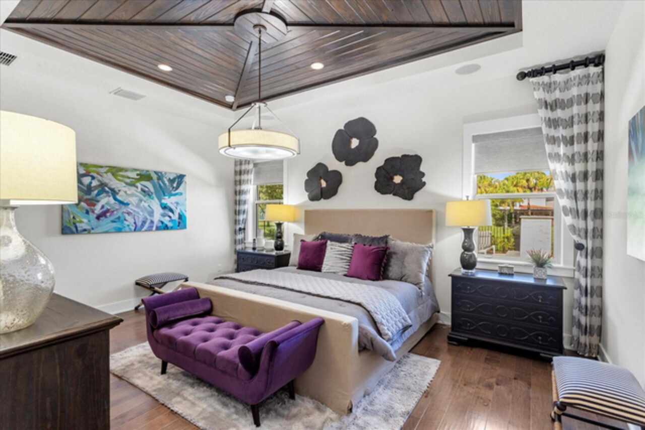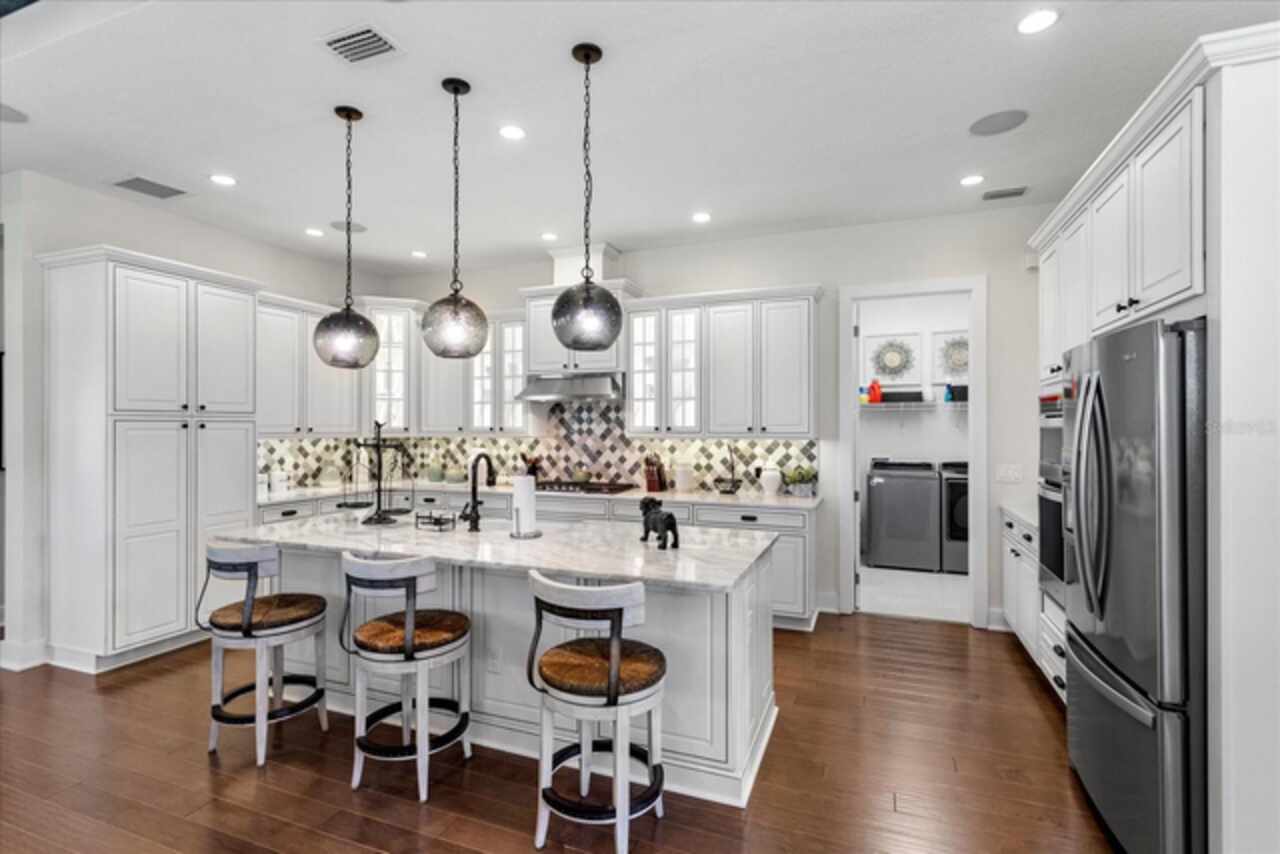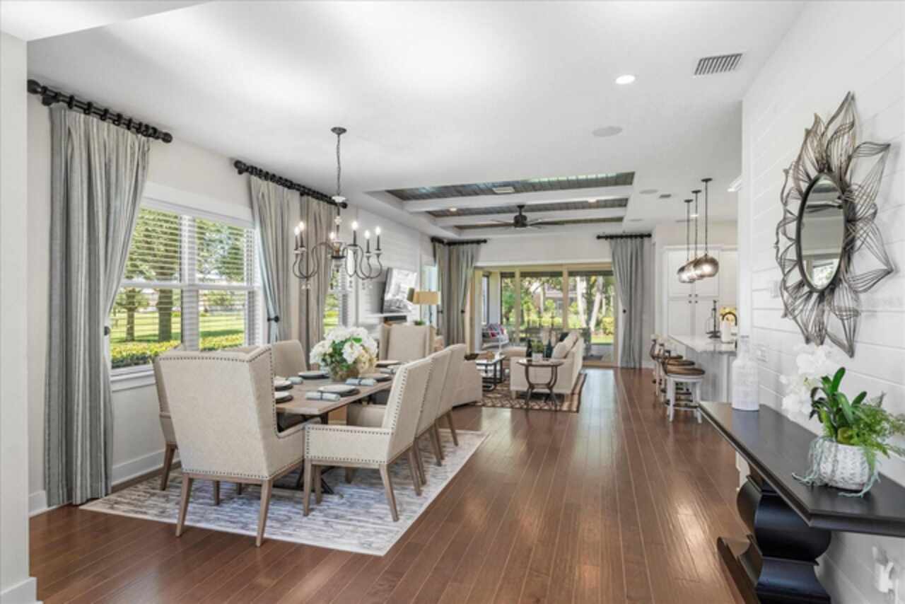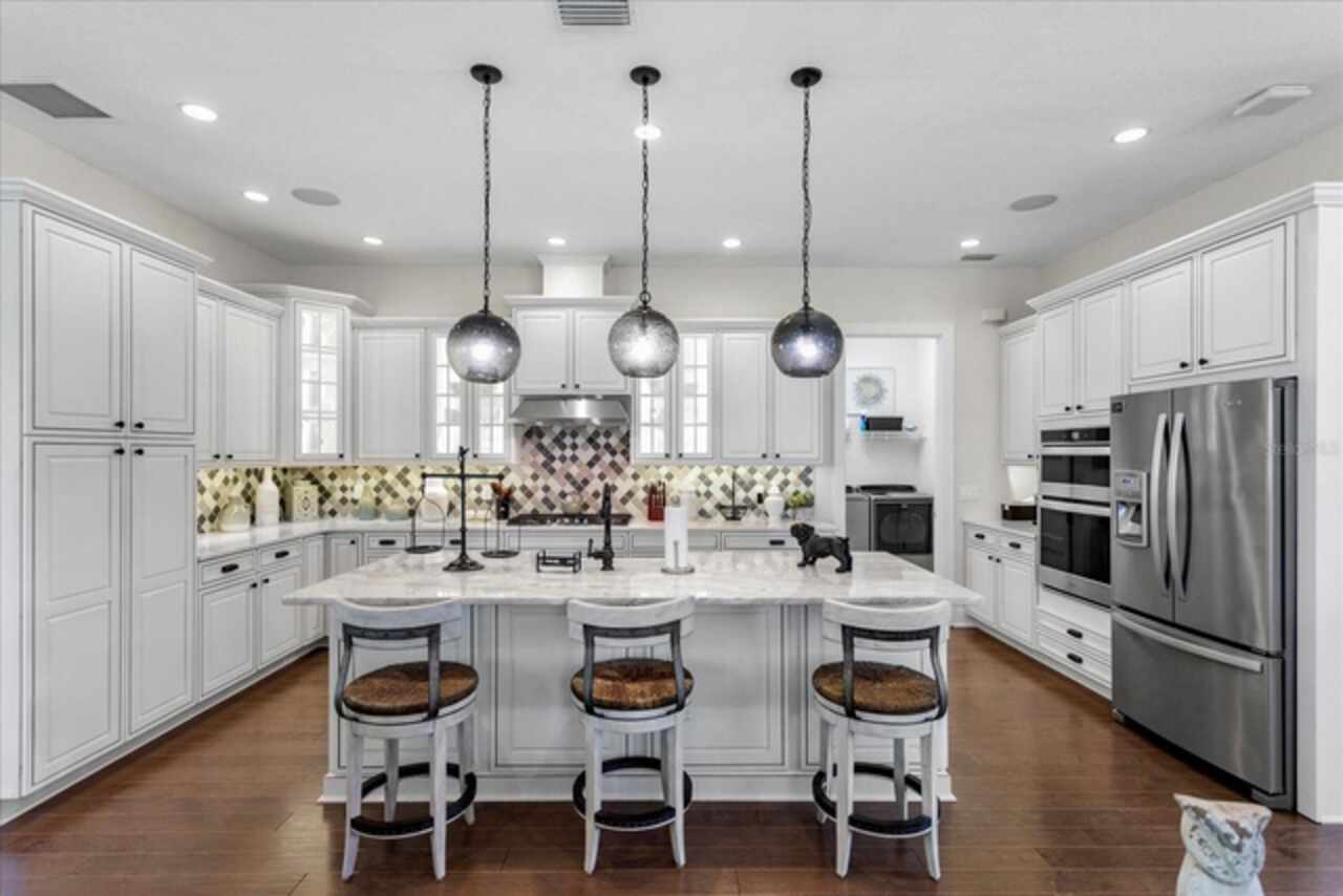 Under contract-accepting backup offers. INCREDIBLE UPDATE! REDUCED PRICE AND NOW INCLUDES ALL MODEL HOME FURNITURE, DECOR, APPLIANCES, KITCHENWARE! Stunning Model Home on one of the best Executive lots in Lakeshore Preserve! Discover this immaculate model home—lightly used as a second residence—nestled in one of the area’s most sought-after neighborhoods. All of the upscale furniture, decor, artwork and kitchenware create an easy turnkey move. Boasting every builder upgrade, this property delivers resort-style living both inside and out. You are greeted with a dramatic 2-story foyer, beautiful engineered wood flooring, accent walls with shiplap, and custom ceiling treatments throughout the living areas. The spacious, open-concept has 10' ceilings and oversized windows flooding the space with natural light. A chef's dream, this gourmet kitchen features an oversized center island, stainless steel appliances, quartz countertops, lighted custom cabinetry with glass fronts, attractive backsplash, upgraded light fixtures, and a deep farmers sink. The luxurious primary suite with a spa-inspired bathroom has dual vanities, oversized frameless glass shower, and private water closet. Off the kitchen is the laundry room and the washer and dryer are included. Take the gorgeous wood stairs to the second level to the bonus room which would be perfect for a second living area, office or play room. It also has great windows and the wood floors. Two of the secondary bedrooms share a hall bath with double sinks and a glass-enclosed tub. The 4th bedroom has an en-suite bath and walk-in closet. Moving outdoors, you have an entertaining oasis complete with an expanded, screened brick paver patio, summer kitchen, professionally-installed putting green for year-round practice right at home. A second patio has a large seating area with a cozy outdoor stone fireplace—perfect for cool evening gatherings. The views from the fenced back yard include green space behind the lot, a large community park beside the house and Lakeshore's Reflection Park across the street. Energy-efficient features include low-e windows and natural gas for cooktop, dryer and tankless water heater. All of Lakeshore has the attractive tile roofing. Lakeshore's other amenities include a beautiful clubhouse with fitness center and neighborhood activities room, resort-style pool with fountains and zero-entry shallow area, playgrounds, dog park, sand volleyball court and more. The HOA fees include all ground maintenance, 1 gig internet and cable service. Seize the opportunity to own this one-of-a-kind model home, where meticulous care and high-end upgrades create an unparalleled living experience. Schedule your private tour today!