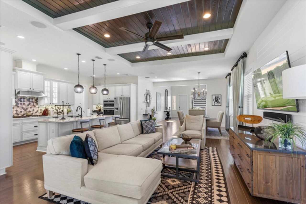 Ceiling Fans(s), Coffered Ceiling(s), High Ceilings, In Wall Pest System, Kitchen/Family Room Combo, Living Room/Dining Room Combo, Open Floorplan, Primary Bedroom Main Floor, Smart Home, Stone Counters, Walk-In Closet(s), Window Treatments