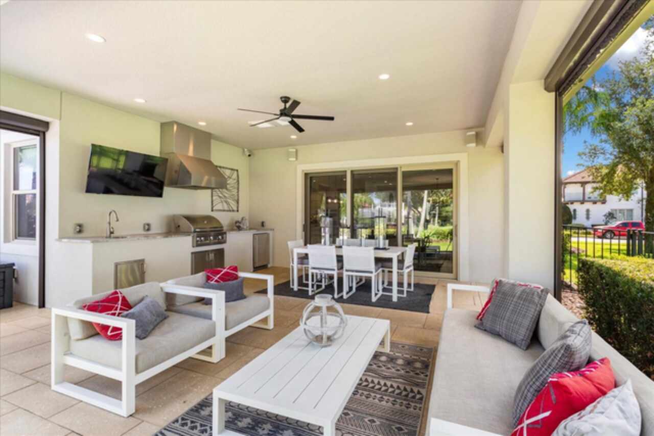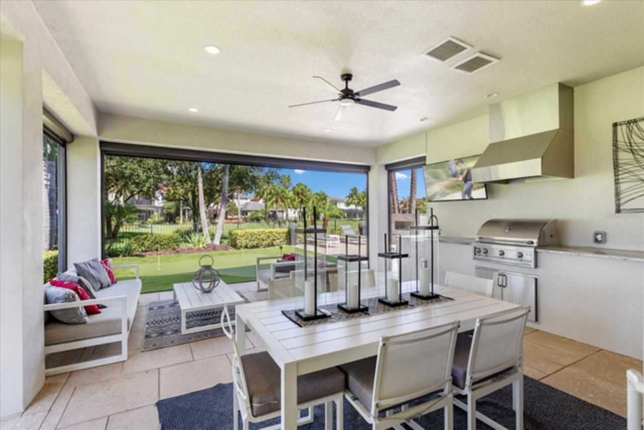 Lighting, Outdoor Kitchen, Rain Gutters, Sidewalk, Sliding Doors