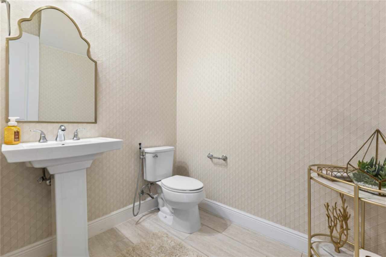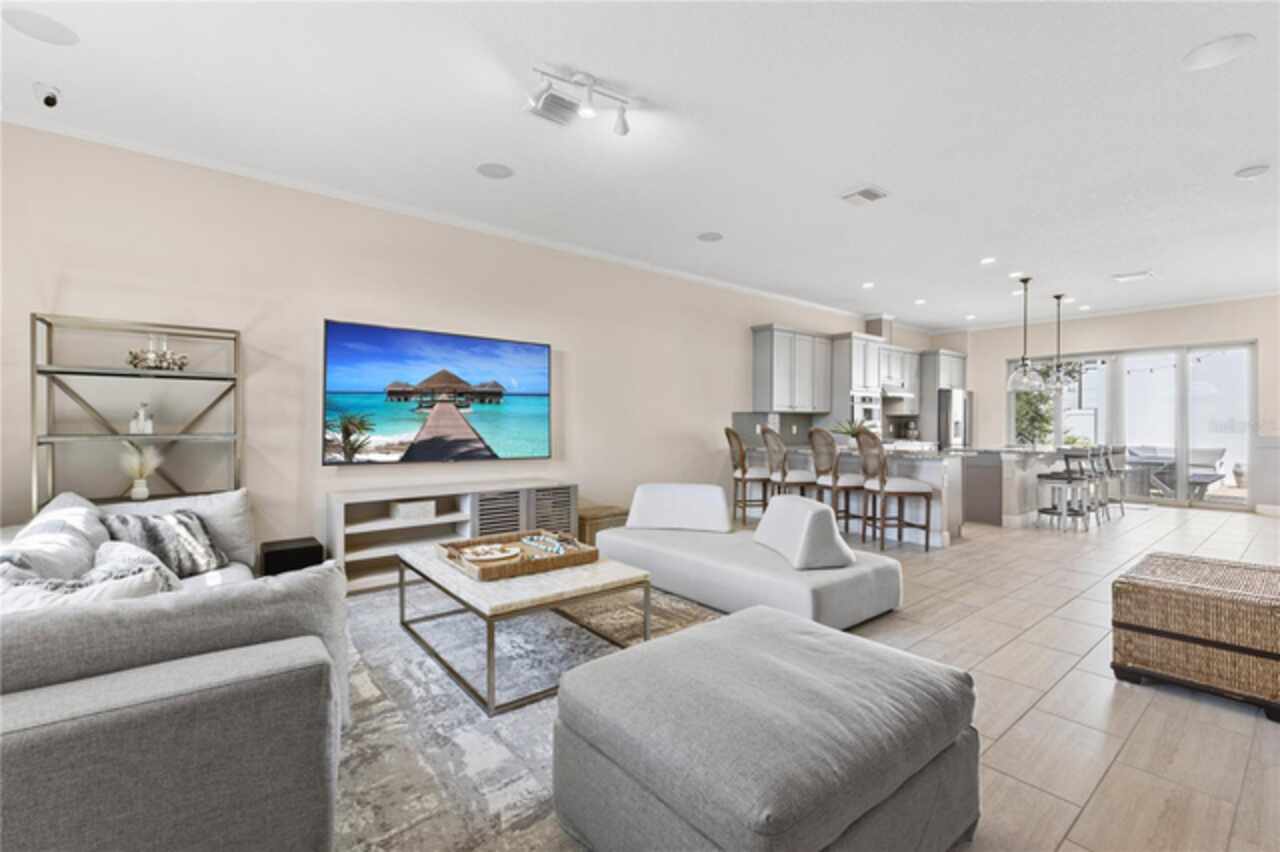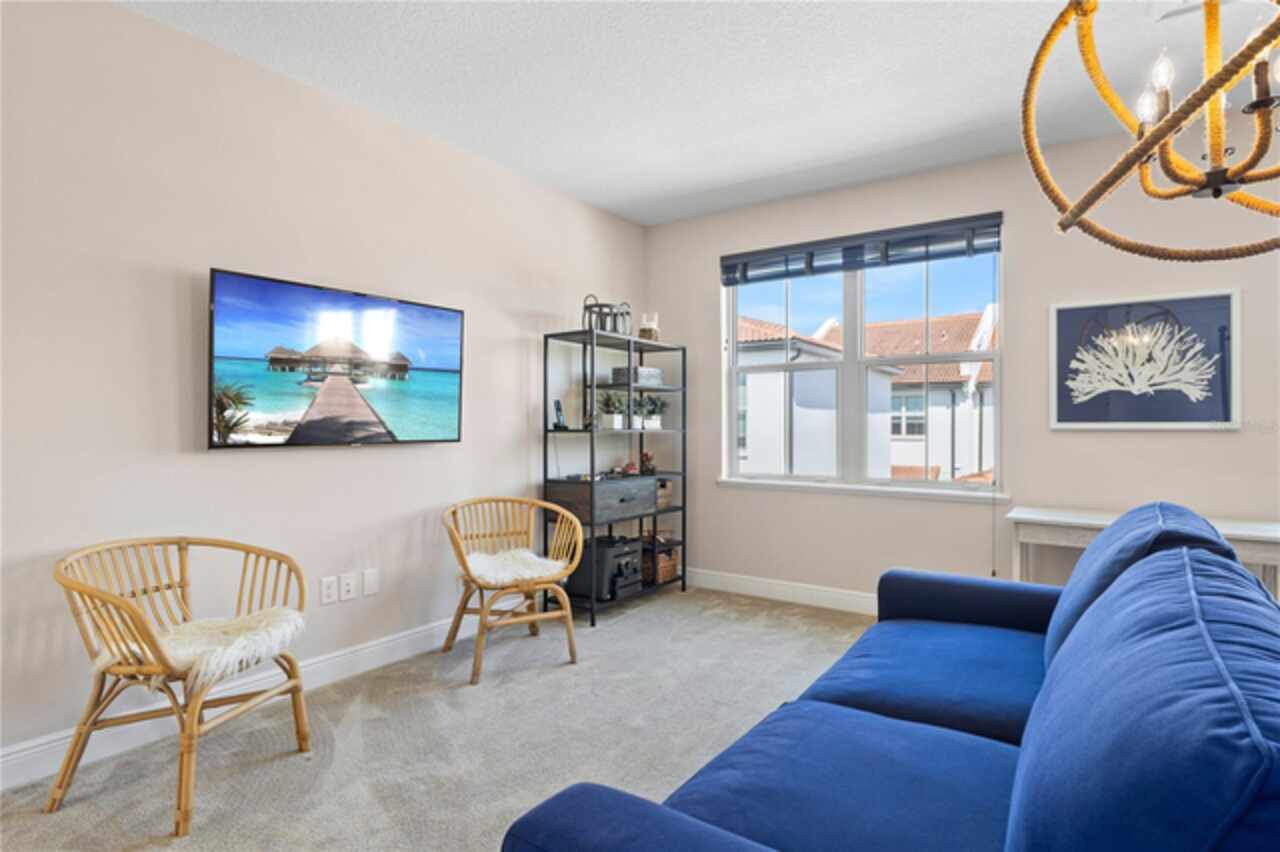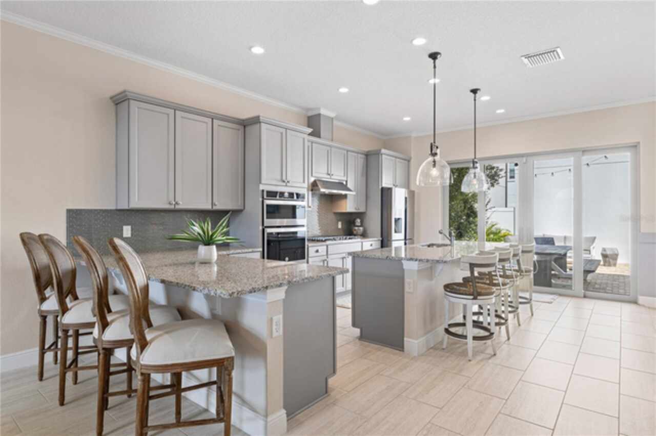 Welcome to this elegant and beautiful townhome, designed by an architect. This property is being offered for the first time since its original purchase in 2018. It has an open concept, full of upgrades and details. Wall papers bring a cozy atmosphere and elevate harmony. This home has ceiling speakers, security camera and ring door bell. As you walk in you feel the modern layout with a charming patio to enjoy family, friends and Florida weather. Main level with kitchen, 1/2 bath, living and dining area. At the living area you can enjoy the natural light, lovely crown-molding, blinds for privacy and Wine Refrigerator. Dining area with wall paper and Borserie. An extra graceful environment with wall paper at the 1/2 bath . Sophisticated gourmet kitchen with granite, backsplash, gray color cabinets, double sink and double kitchen island for extra seating. Sliding doors bring extra natural light and take you to back patio, blending space, nature and elegant paver to appreciate life. The upgraded stairs add a refined touch to the second floor with a cozy carpet. A spacious hall with nice double door closet for linens. Second floor Master Bedroom with wall paper at main wall, shade and walk in closet. Master Bathroom with 2 sinks, niche, shower inclosure, shower tiles upgraded to ceiling, private commode, and handheld private bided. Second floor tasteful 2 bedrooms, with wall paper, brand new custom closets, blinds and curtains. Second floor full bathroom with niche, shower enclosure, creme color stylish cabinet, 2 sinks and handheld toilet bidet. Laundry room with granite, cabinet and laundry sink. The surprise is the additional bonus apartment on top of garage with mini kitchen, full bathroom, wall paper at the main wall, blinds and walk in closet. To wrap this masterpiece listing, a 2 car garage with epoxy. This home was a vacation home for sellers, as they never lived, and only used for a few days during the year. Schedule a tour as you will fall in love!