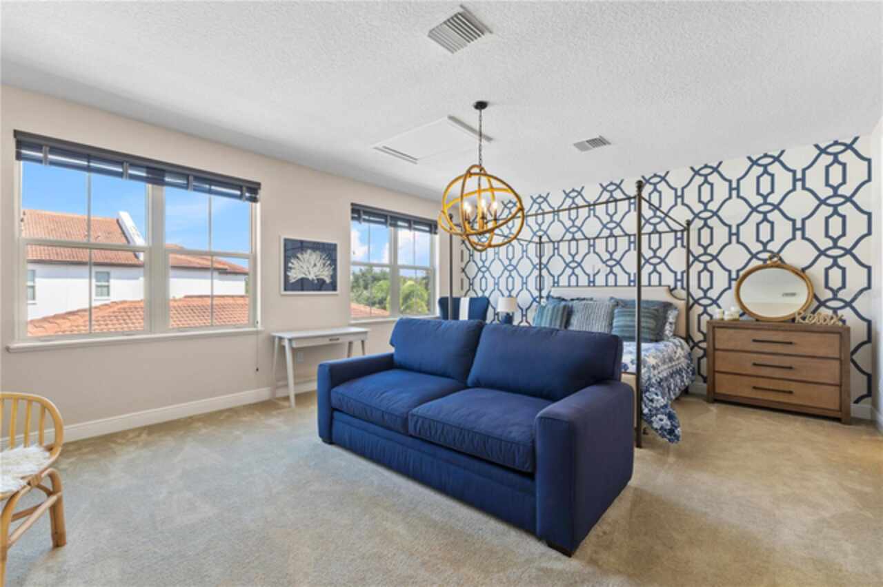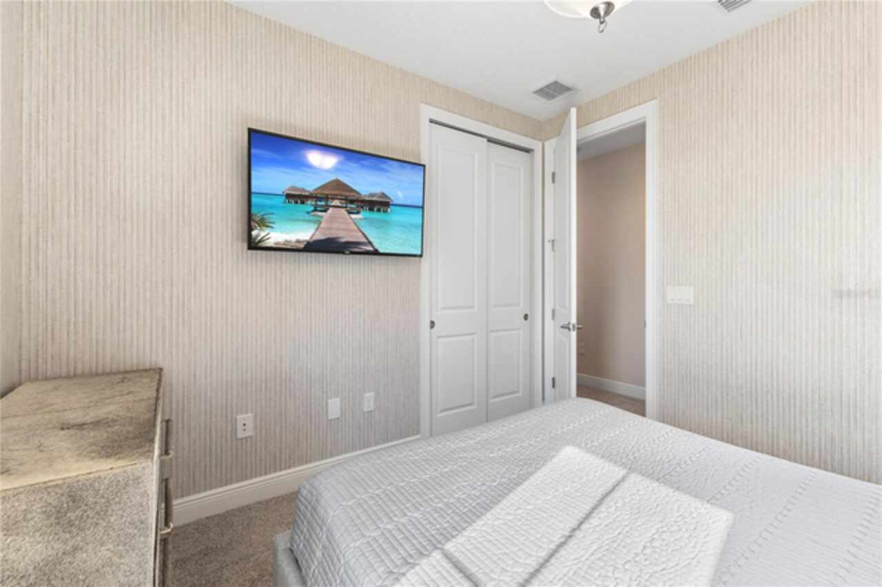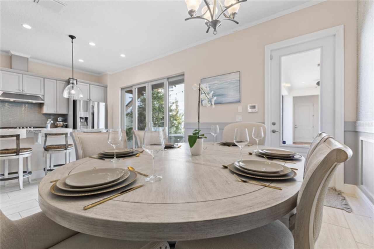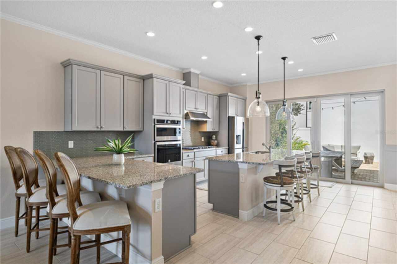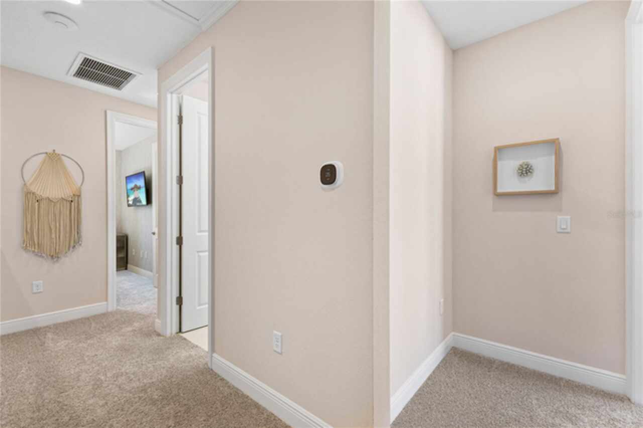 Welcome to this elegant and beautiful townhome, designed by an architect. This property is being offered for the first time since its original purchase in 2018. It has an open concept, full of upgrades and details. Wall papers bring a cozy atmosphere and elevate harmony. This home has ceiling speakers, security camera and ring door bell. As you walk in you feel the modern layout with a charming patio to enjoy family, friends and Florida weather. Main level with kitchen, 1/2 bath, living and dining area. At the living area you can enjoy the natural light, lovely crown-molding, blinds for privacy and Wine Refrigerator. Dining area with wall paper and Borserie. An extra graceful environment with wall paper at the 1/2 bath . Sophisticated gourmet kitchen with granite, backsplash, gray color cabinets, double sink and double kitchen island for extra seating. Sliding doors bring extra natural light and take you to back patio, blending space, nature and elegant paver to appreciate life. The upgraded stairs add a refined touch to the second floor with a cozy carpet. A spacious hall with nice double door closet for linens. Second floor Master Bedroom with wall paper at main wall, shade and walk in closet. Master Bathroom with 2 sinks, niche, shower inclosure, shower tiles upgraded to ceiling, private commode, and handheld private bided. Second floor tasteful 2 bedrooms, with wall paper, brand new custom closets, blinds and curtains. Second floor full bathroom with niche, shower enclosure, creme color stylish cabinet, 2 sinks and handheld toilet bidet. Laundry room with granite, cabinet and laundry sink. The surprise is the additional bonus apartment on top of garage with mini kitchen, full bathroom, wall paper at the main wall, blinds and walk in closet. To wrap this masterpiece listing, a 2 car garage with epoxy. This home was a vacation home for sellers, as they never lived, and only used for a few days during the year. Schedule a tour as you will fall in love!