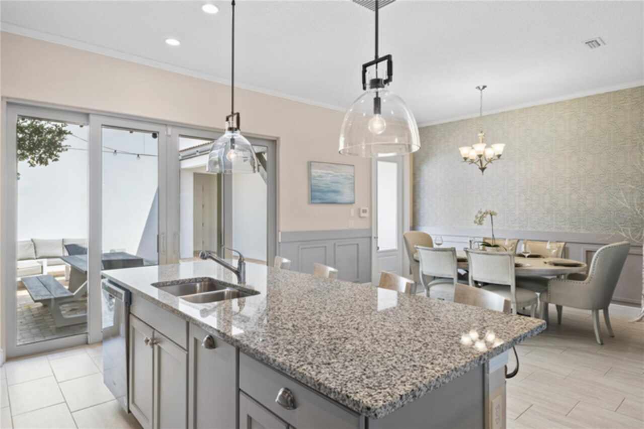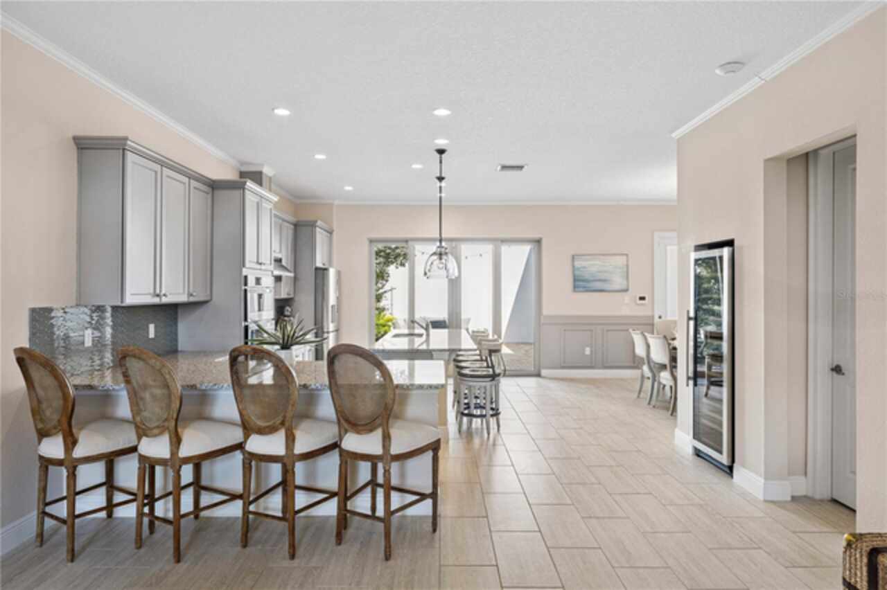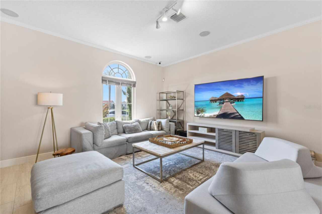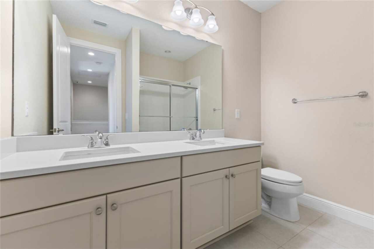 Welcome to this elegant and beautiful townhome, designed by an architect. This property is being offered for the first time since its original purchase in 2018. It has an open concept, full of upgrades and details. Wall papers bring a cozy atmosphere and elevate harmony. This home has ceiling speakers, security camera and ring door bell. As you walk in you feel the modern layout with a charming patio to enjoy family, friends and Florida weather. Main level with kitchen, 1/2 bath, living and dining area. At the living area you can enjoy the natural light, lovely crown-molding, blinds for privacy and Wine Refrigerator. Dining area with wall paper and Borserie. An extra graceful environment with wall paper at the 1/2 bath . Sophisticated gourmet kitchen with granite, backsplash, gray color cabinets, double sink and double kitchen island for extra seating. Sliding doors bring extra natural light and take you to back patio, blending space, nature and elegant paver to appreciate life. The upgraded stairs add a refined touch to the second floor with a cozy carpet. A spacious hall with nice double door closet for linens. Second floor Master Bedroom with wall paper at main wall, shade and walk in closet. Master Bathroom with 2 sinks, niche, shower inclosure, shower tiles upgraded to ceiling, private commode, and handheld private bided. Second floor tasteful 2 bedrooms, with wall paper, brand new custom closets, blinds and curtains. Second floor full bathroom with niche, shower enclosure, creme color stylish cabinet, 2 sinks and handheld toilet bidet. Laundry room with granite, cabinet and laundry sink. The surprise is the additional bonus apartment on top of garage with mini kitchen, full bathroom, wall paper at the main wall, blinds and walk in closet. To wrap this masterpiece listing, a 2 car garage with epoxy. This home was a vacation home for sellers, as they never lived, and only used for a few days during the year. Schedule a tour as you will fall in love!