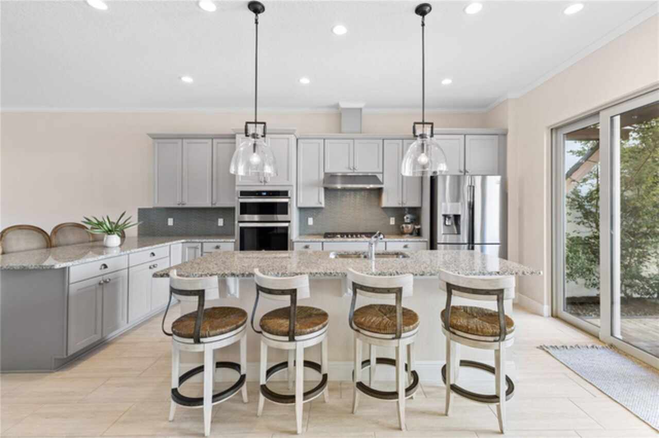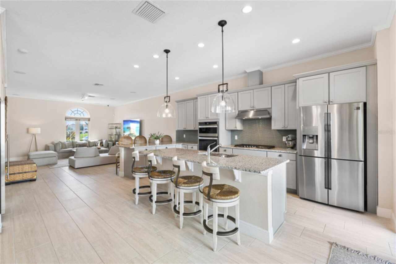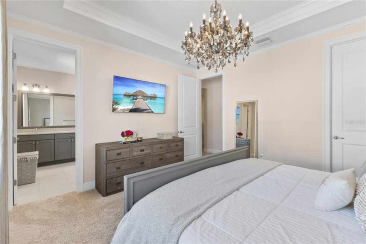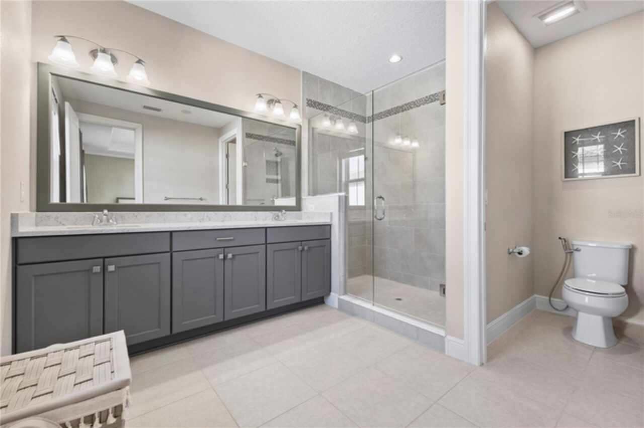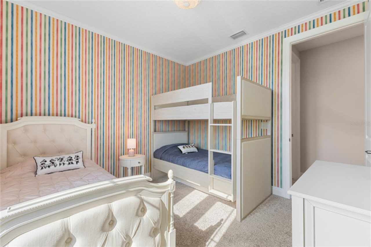 Welcome to this elegant and beautiful townhome, designed by an architect. This property is being offered for the first time since its original purchase in 2018. It has an open concept, full of upgrades and details. Wall papers bring a cozy atmosphere and elevate harmony. This home has ceiling speakers, security camera and ring door bell. As you walk in you feel the modern layout with a charming patio to enjoy family, friends and Florida weather. Main level with kitchen, 1/2 bath, living and dining area. At the living area you can enjoy the natural light, lovely crown-molding, blinds for privacy and Wine Refrigerator. Dining area with wall paper and Borserie. An extra graceful environment with wall paper at the 1/2 bath . Sophisticated gourmet kitchen with granite, backsplash, gray color cabinets, double sink and double kitchen island for extra seating. Sliding doors bring extra natural light and take you to back patio, blending space, nature and elegant paver to appreciate life. The upgraded stairs add a refined touch to the second floor with a cozy carpet. A spacious hall with nice double door closet for linens. Second floor Master Bedroom with wall paper at main wall, shade and walk in closet. Master Bathroom with 2 sinks, niche, shower inclosure, shower tiles upgraded to ceiling, private commode, and handheld private bided. Second floor tasteful 2 bedrooms, with wall paper, brand new custom closets, blinds and curtains. Second floor full bathroom with niche, shower enclosure, creme color stylish cabinet, 2 sinks and handheld toilet bidet. Laundry room with granite, cabinet and laundry sink. The surprise is the additional bonus apartment on top of garage with mini kitchen, full bathroom, wall paper at the main wall, blinds and walk in closet. To wrap this masterpiece listing, a 2 car garage with epoxy. This home was a vacation home for sellers, as they never lived, and only used for a few days during the year. Schedule a tour as you will fall in love!