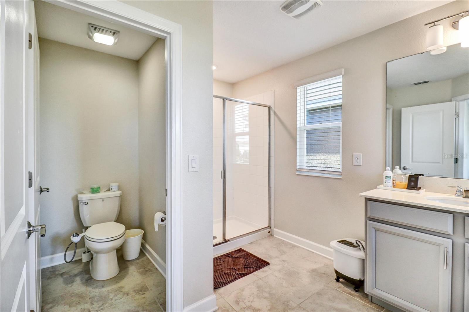 WINTER GARDEN STOREY GROVE, SOLAR ENERGY, DOUBLE MASTER SUITES – DISNEY FIREWORK VIEW – The walkway between the main house and rear garage is FULLY SCREENED. Only minutes walking distance to the Elementary school or Middle school. Beautiful newer 2-story solar-powered home located on a desirable corner lot in the popular community near Disney. Two master suites, one downstairs and one upstairs, each feature a walk-in closet. The open-concept main floor includes a bright kitchen, dining area, and living room. Upstairs offers a huge loft plus two additional bedrooms and a full bath. The screened backyard with a paver patio is perfect for relaxing or entertaining. Whole-house water softener system installed. Community amenities include a pool, dog park, playground, and fitness center. Make this beautiful home the place where you and your loved ones create lasting memories.