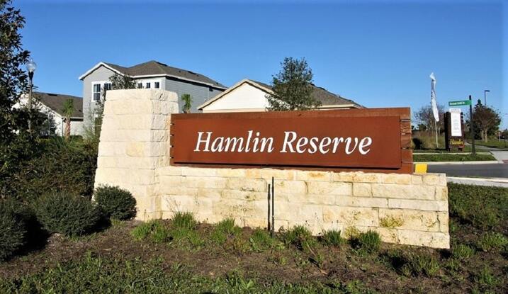• Hamlin Reserve is a fast-growing master-planned community in Winter Garden, FL featuring a blend of residential, commercial, and natural spaces, including lakefront views and amenities such as parks and walking trails.