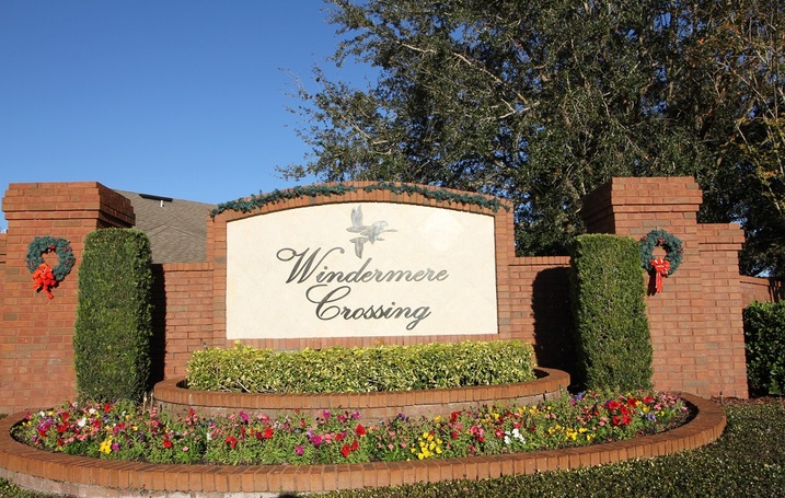 Windermere Crossing in Winter Garden FL is a gated community. Windermere Crossing is in two separate locations each with their own gated entrances. The larger portion of the neighborhood has its main entrance on Windermere Road across from Lake Whitney elementary School. The smaller section of this community is on Stoneybrook West Parkway.
